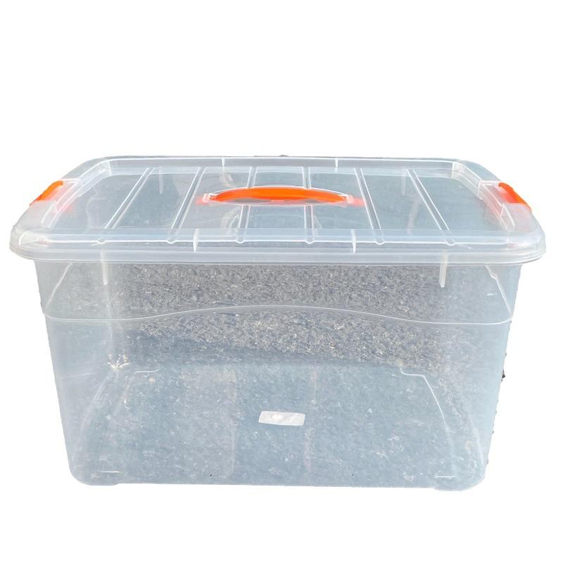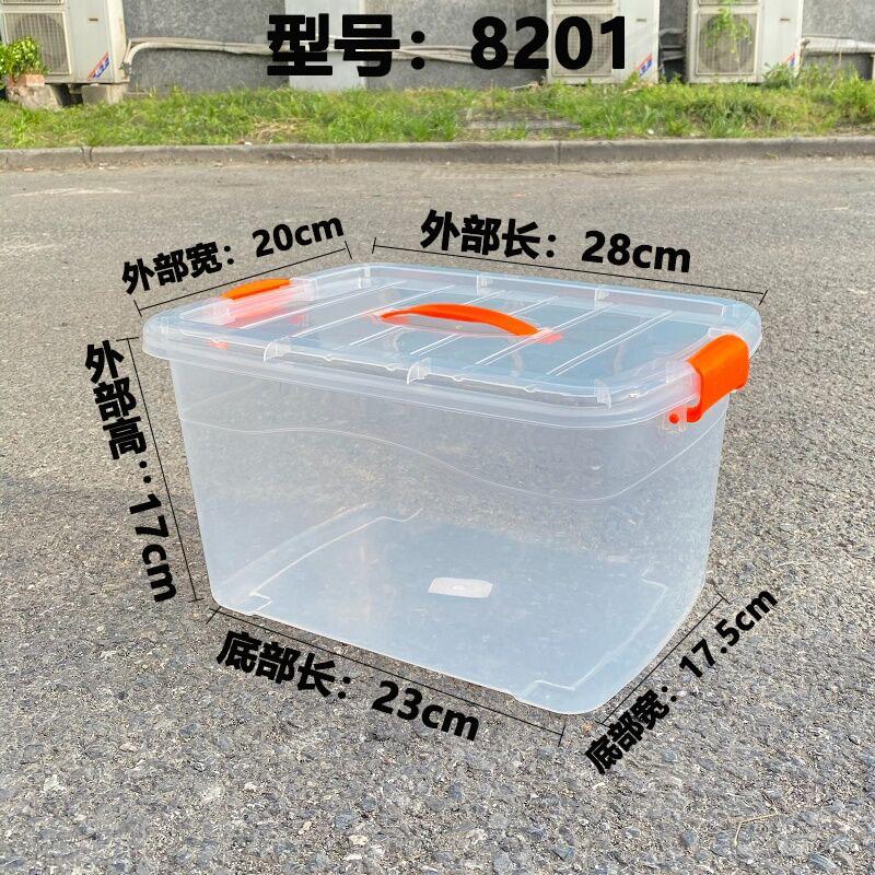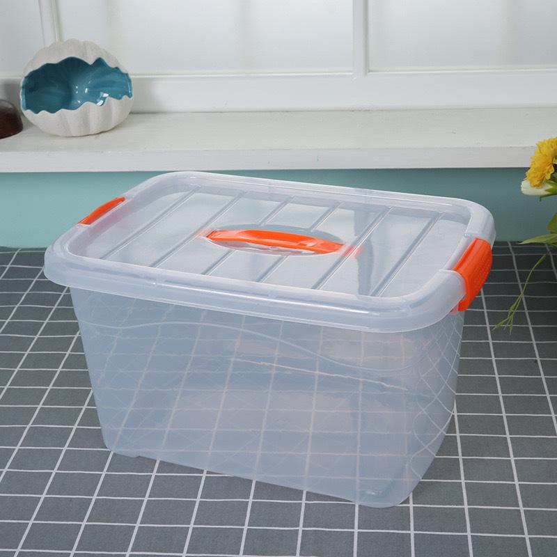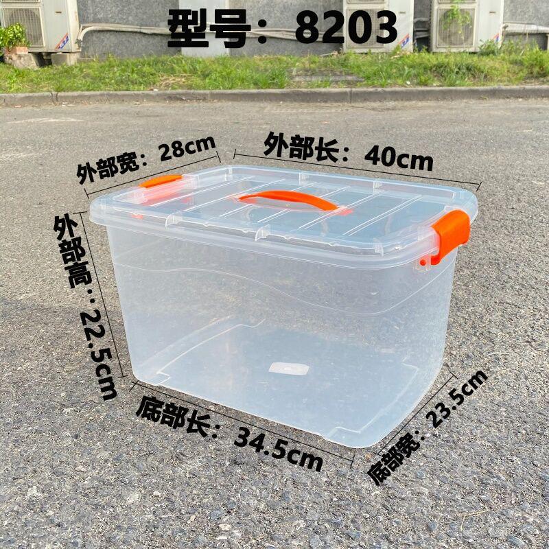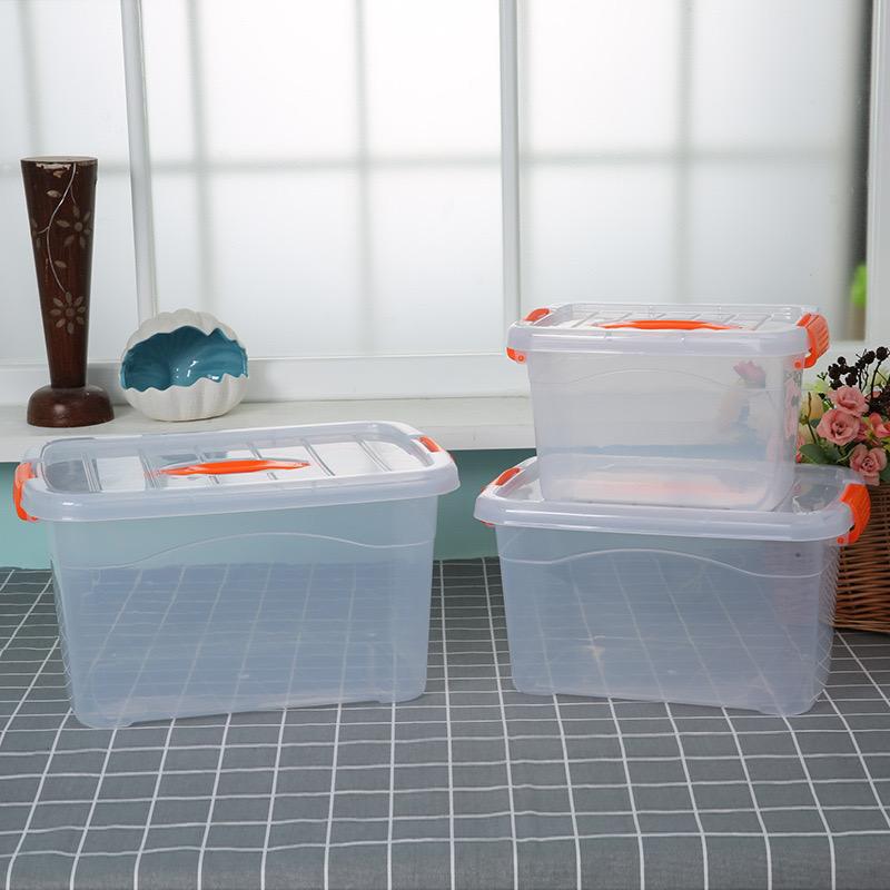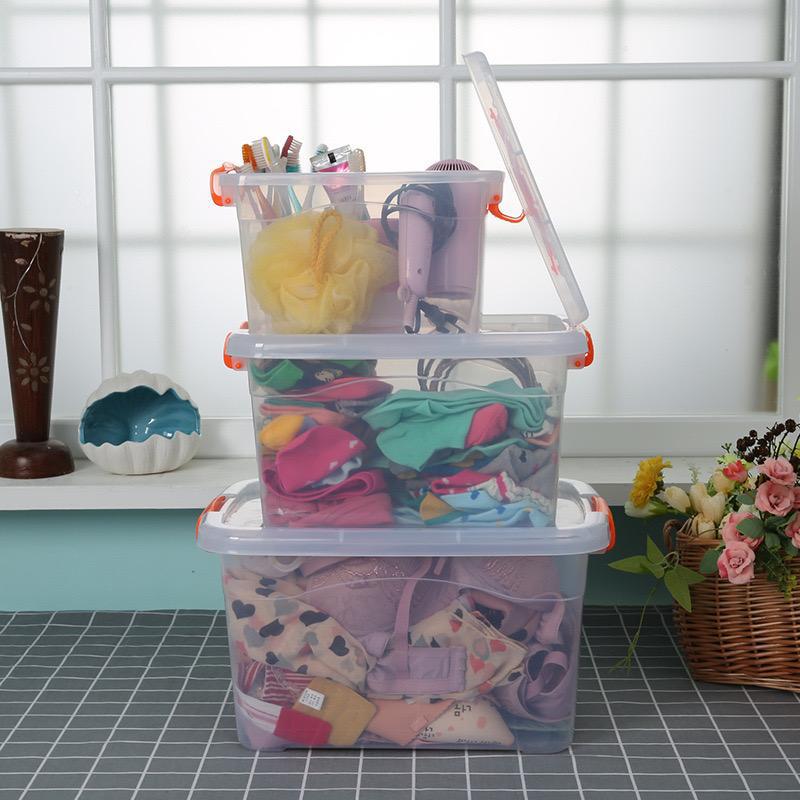Caja de almacenamiento portátil, transparente y gruesa, de plástico, con tapa, para juguetes, ropa y refrigerios.