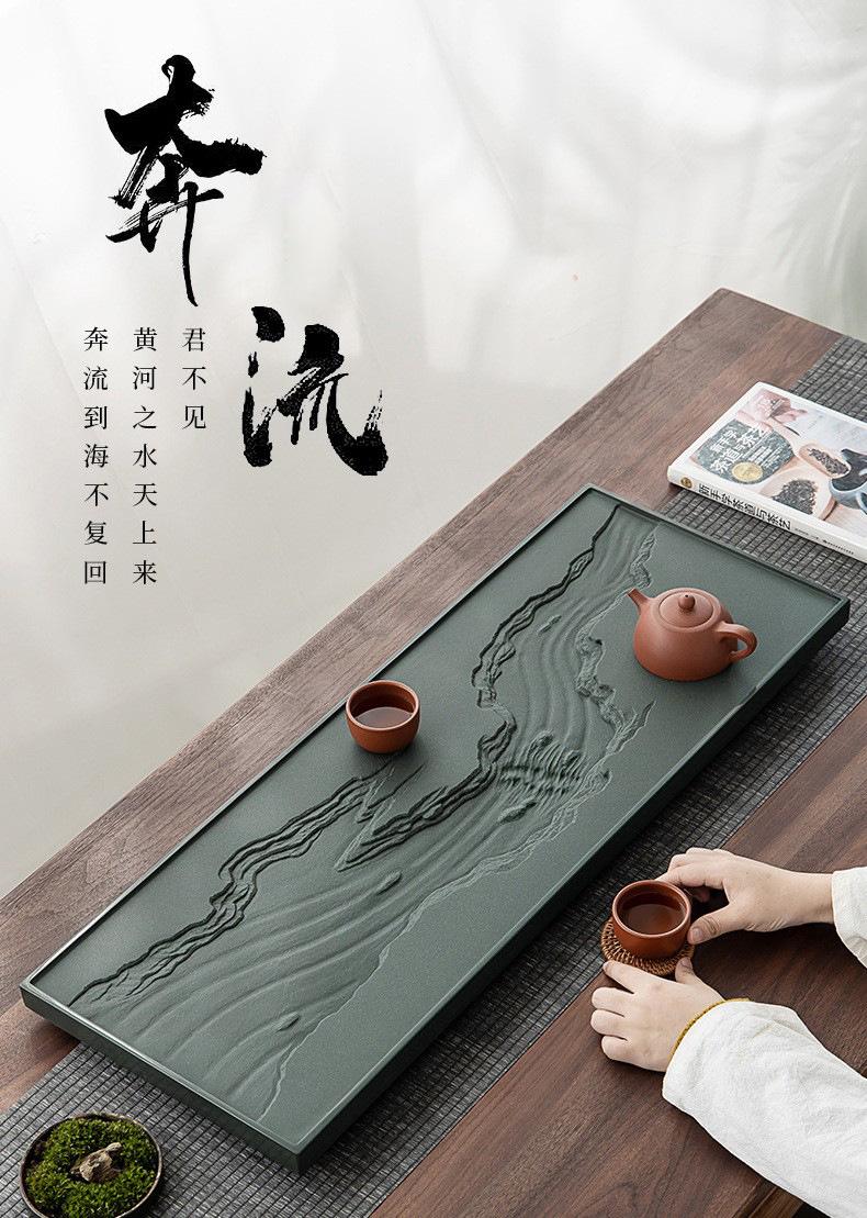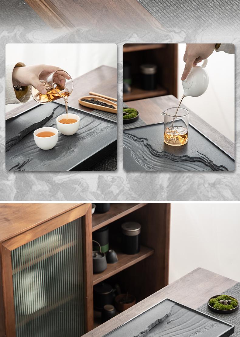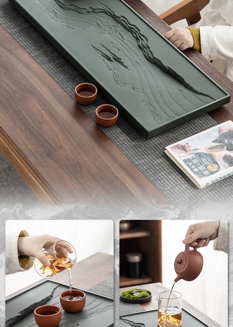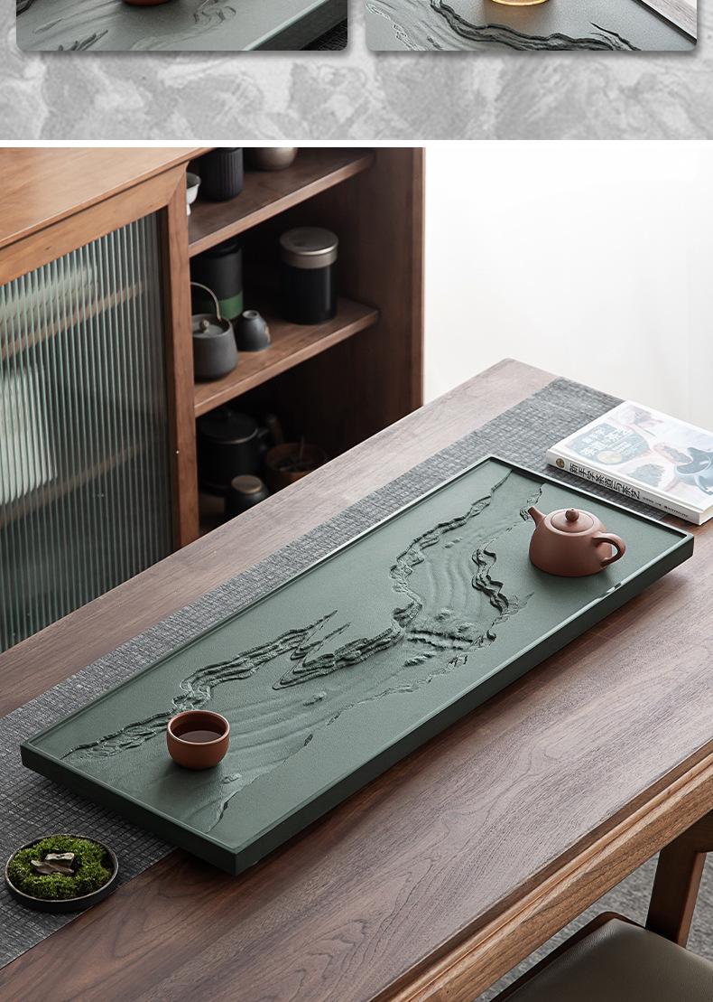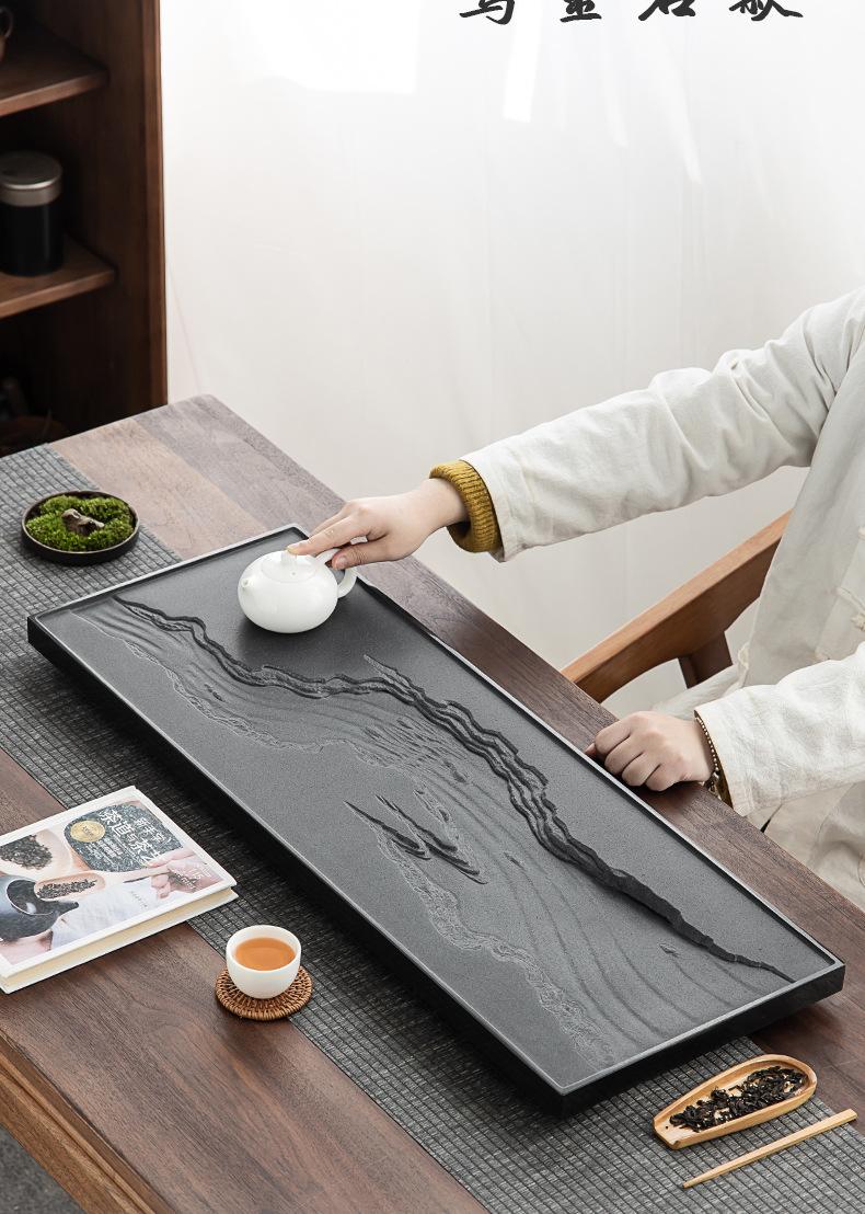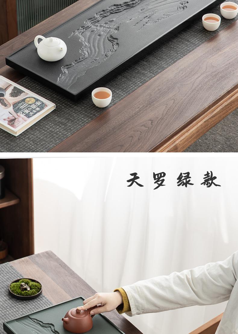 Bandeja de té de piedra natural Wujin para el hogar, mesa de té de piedra entera verde Tianluo de alta calidad, bandeja de piedra tallada por maestros, juego de té de oficina
