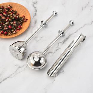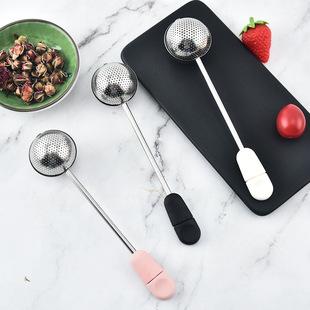 Colador de té retráctil de acero inoxidable al por mayor, colador de té doméstico, separador de té, prensa de té tipo bola.