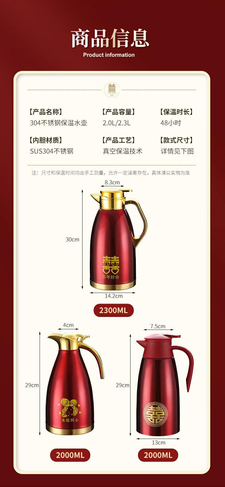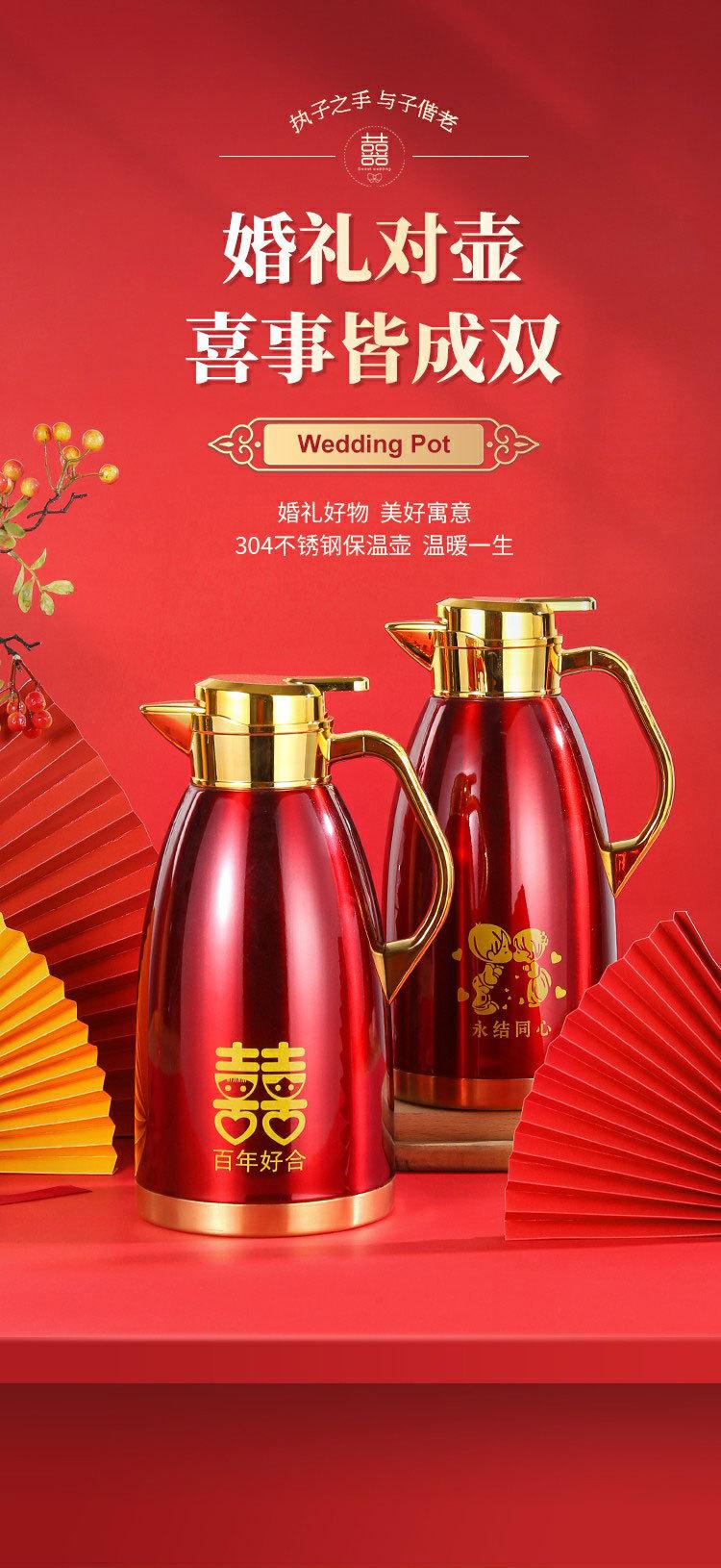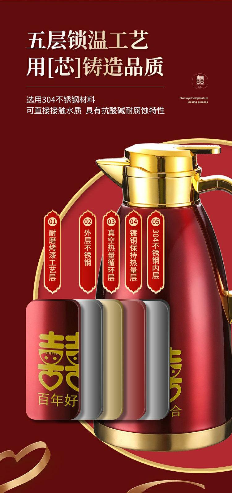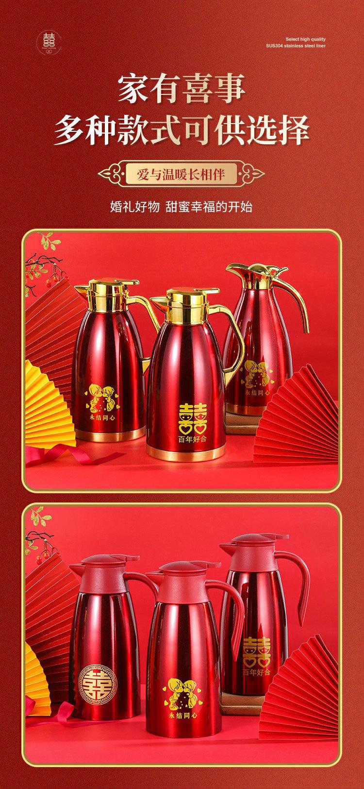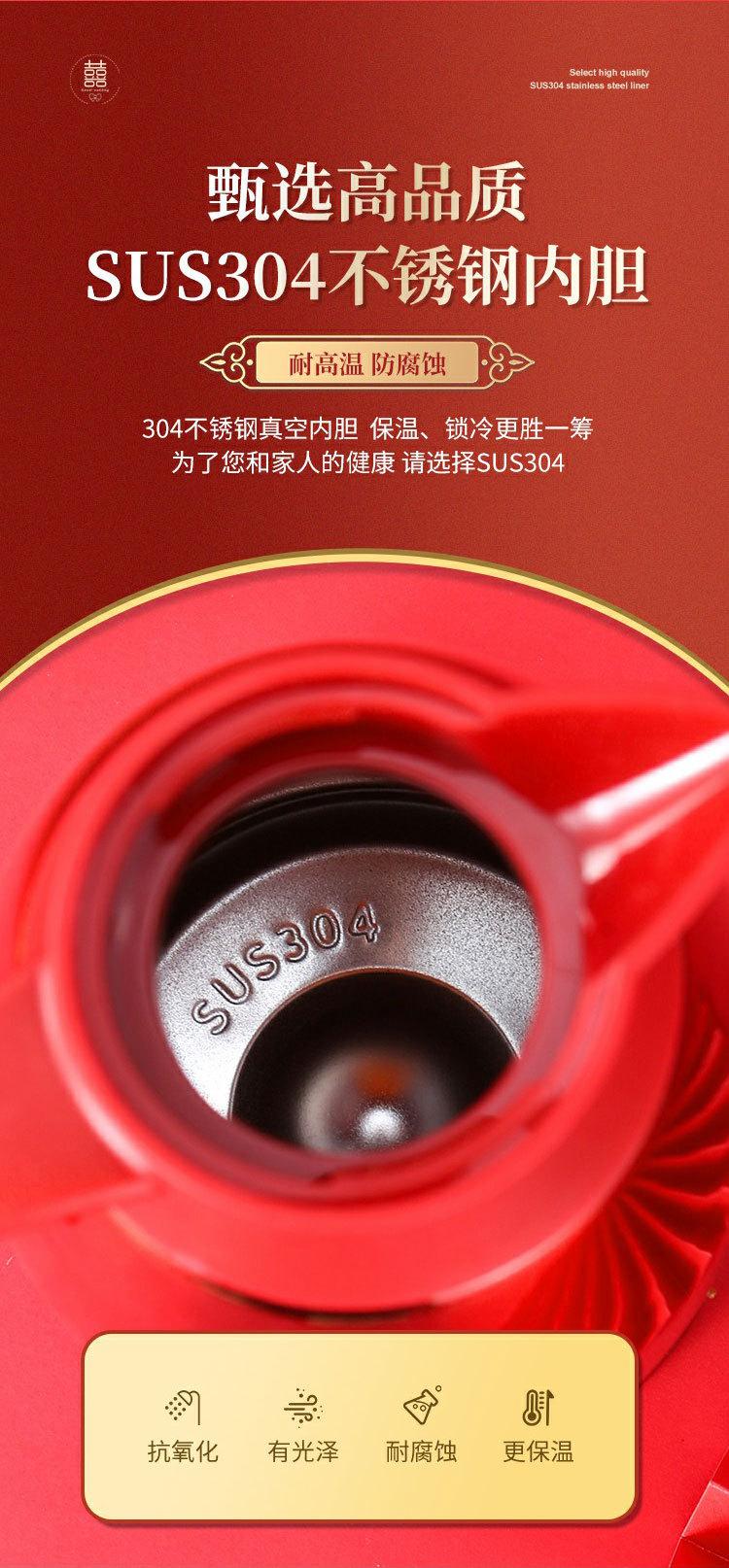 Termo de boda de acero inoxidable 304, termo de boda rojo, par de termos festivos, botella de dote