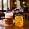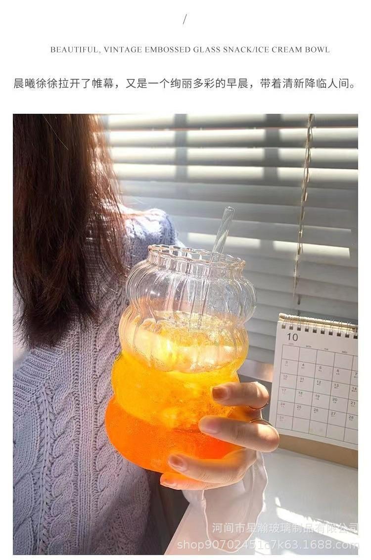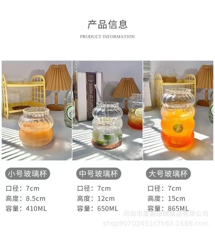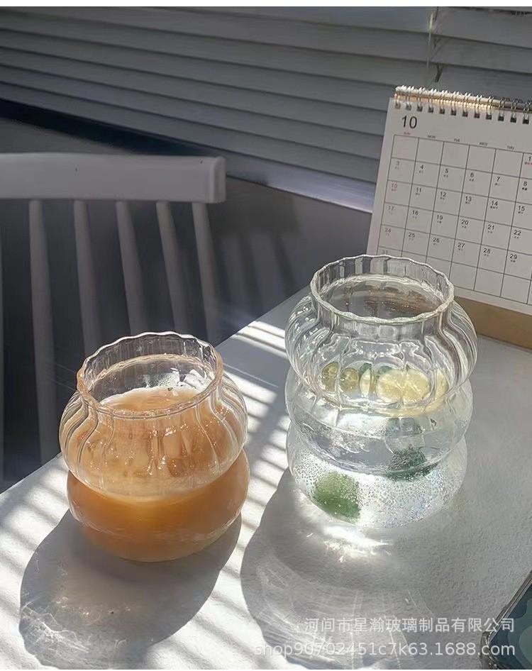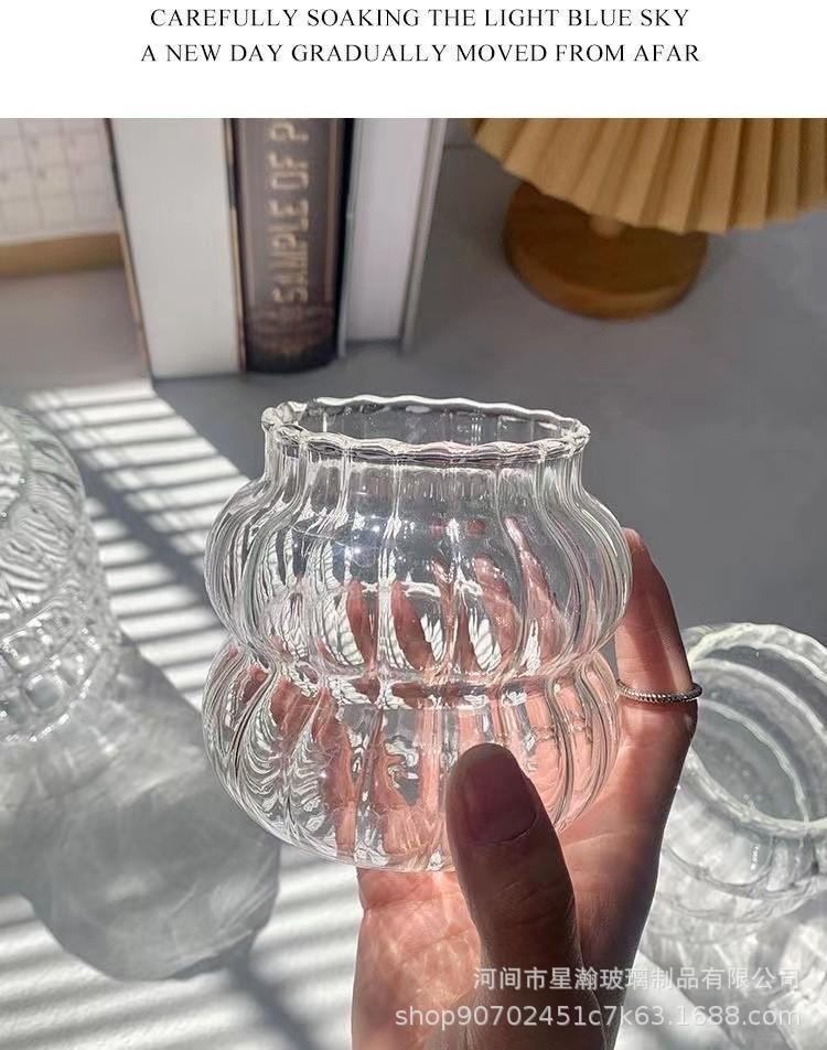 Taza de una sola capa con patrón vertical, Taza de oruga de vidrio de borosilicato alto, Vaso transparente resistente a altas temperaturas para jugo y bebida, Vaso de vidrio simple