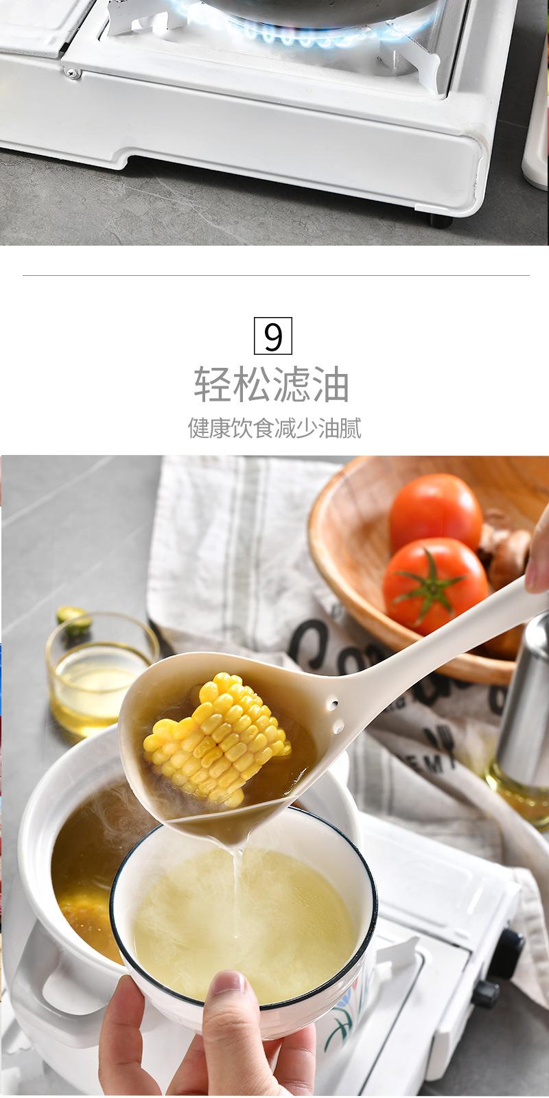Cuchara plana 98g, colador 95g, cucharón para fideos 84g, cuchara para arroz 72g
