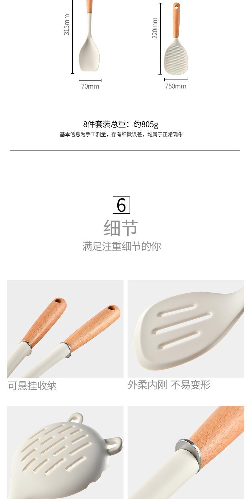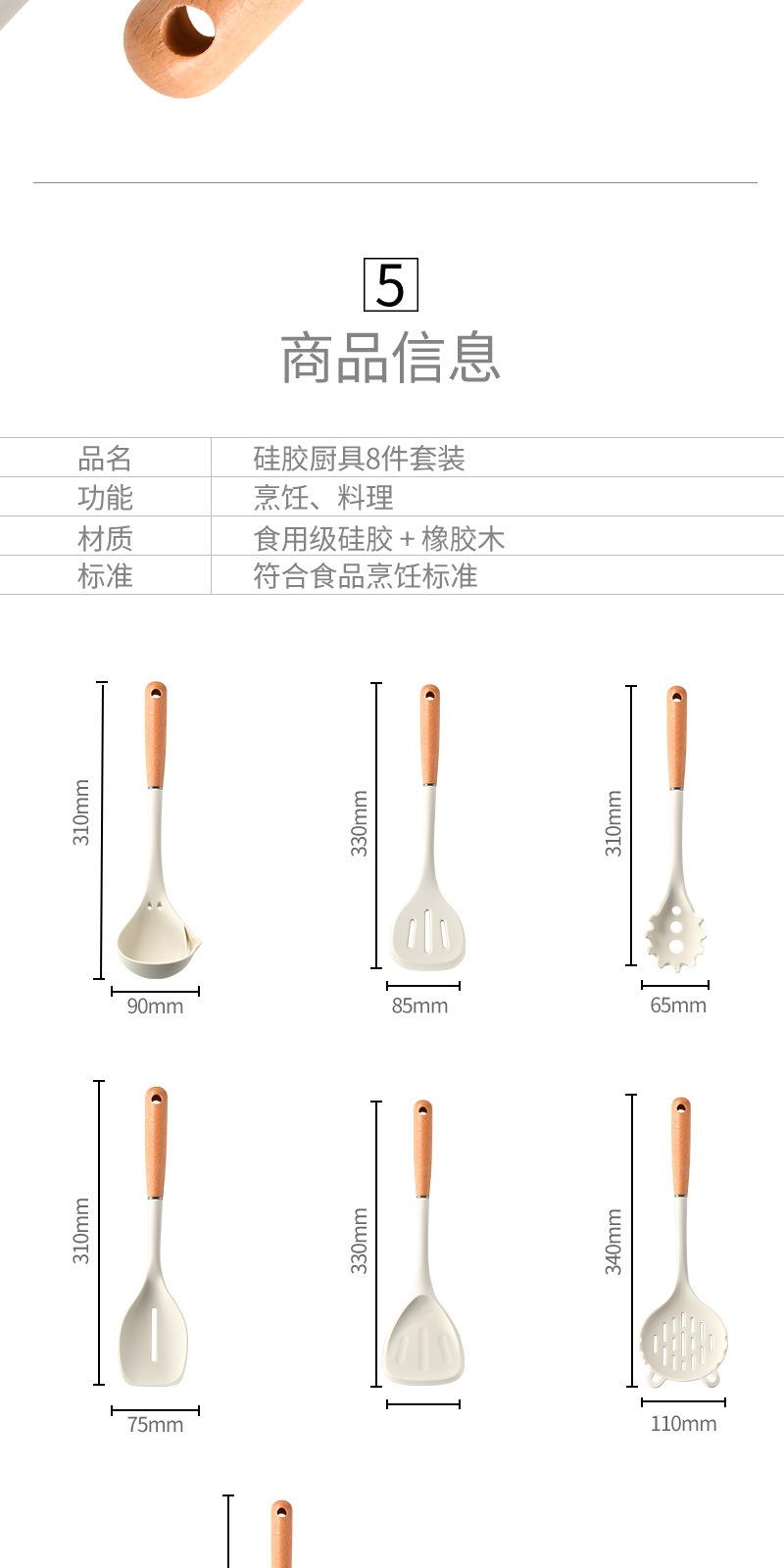 Espátula 121g, Cucharón 117g, Espumadera Grande 114g, Espátula Ranurada 95g