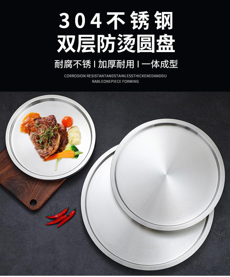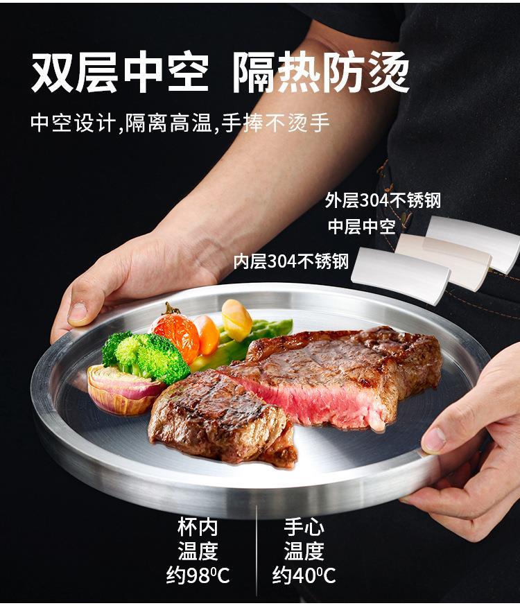 Bandeja comercial para carne de res con disco de acero inoxidable 304, fondo plano, plato occidental de doble capa, olla caliente, plato grueso, plato para barbacoa