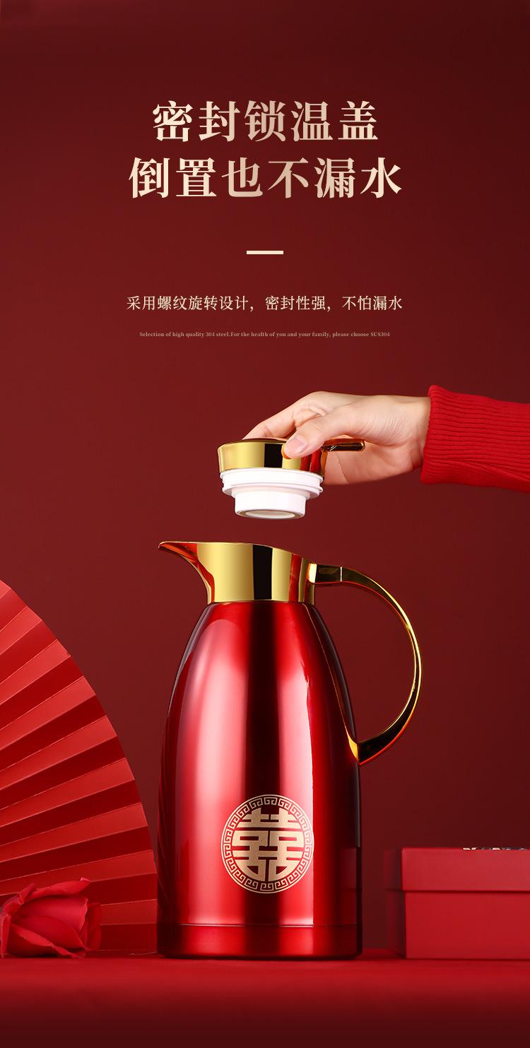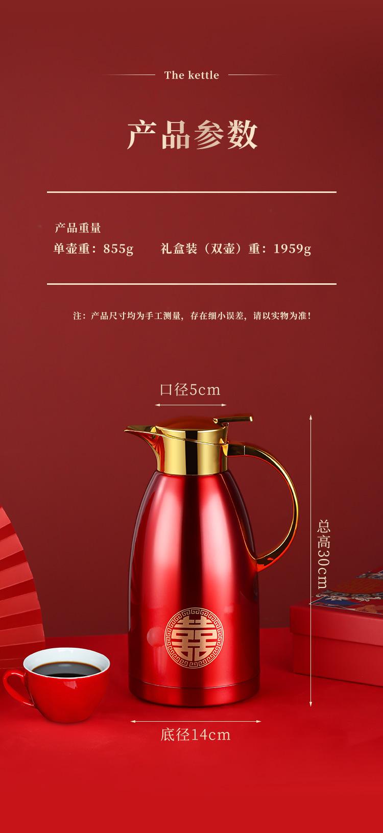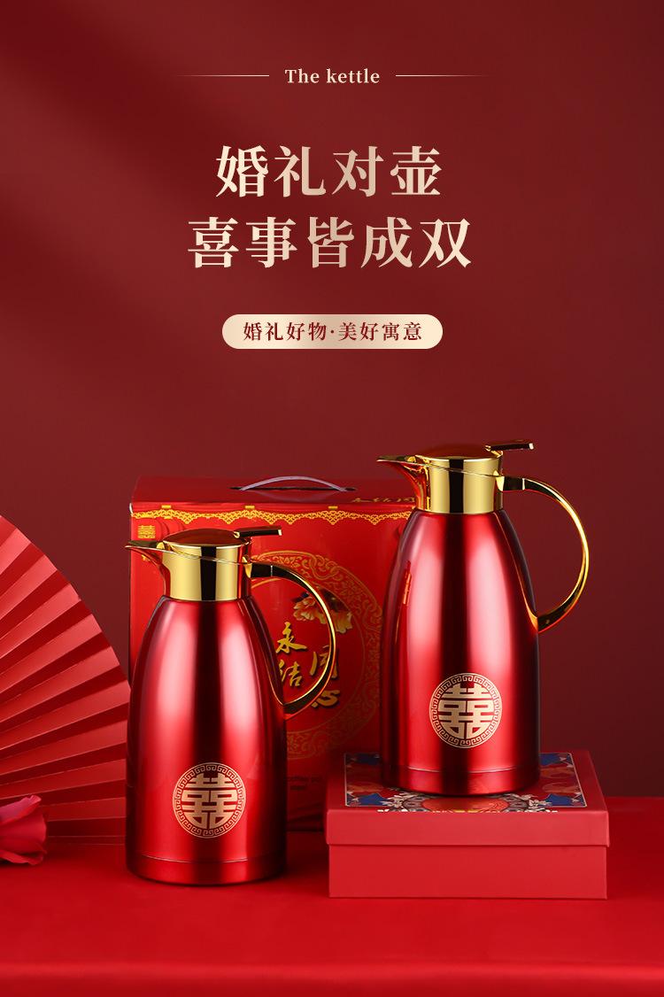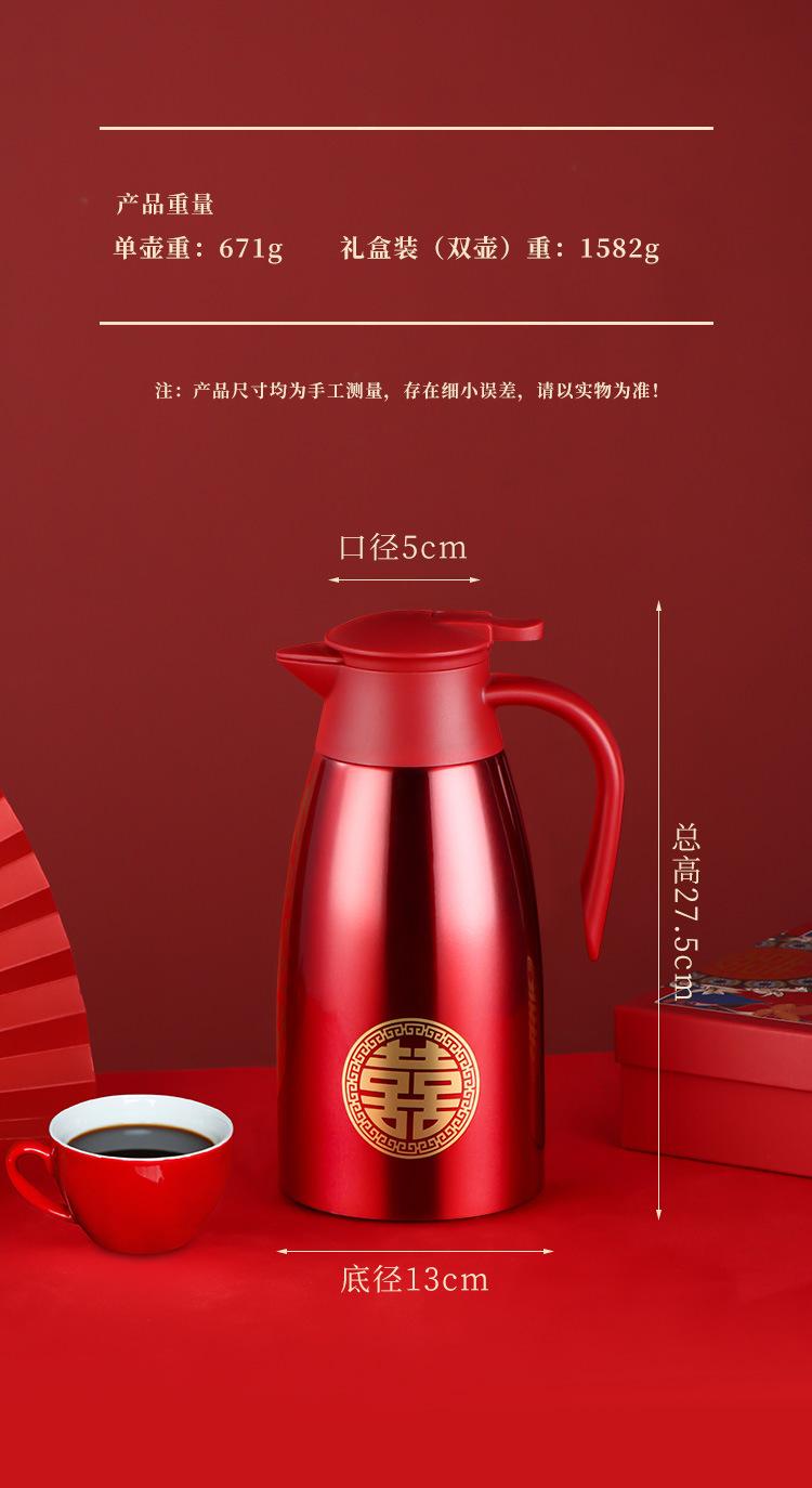 Hervidor de aislamiento térmico para boda, dote, un par de termos de acero inoxidable 304 con taza, termo festivo rojo