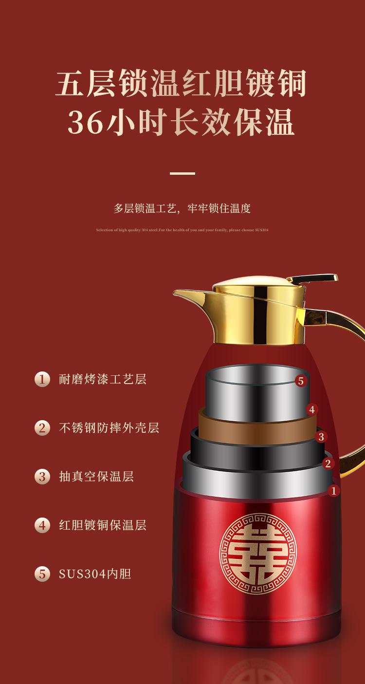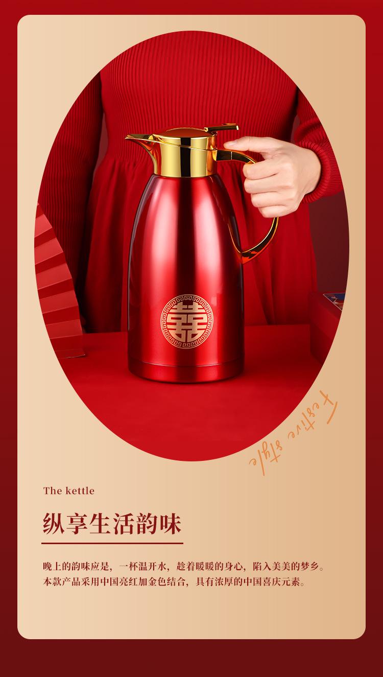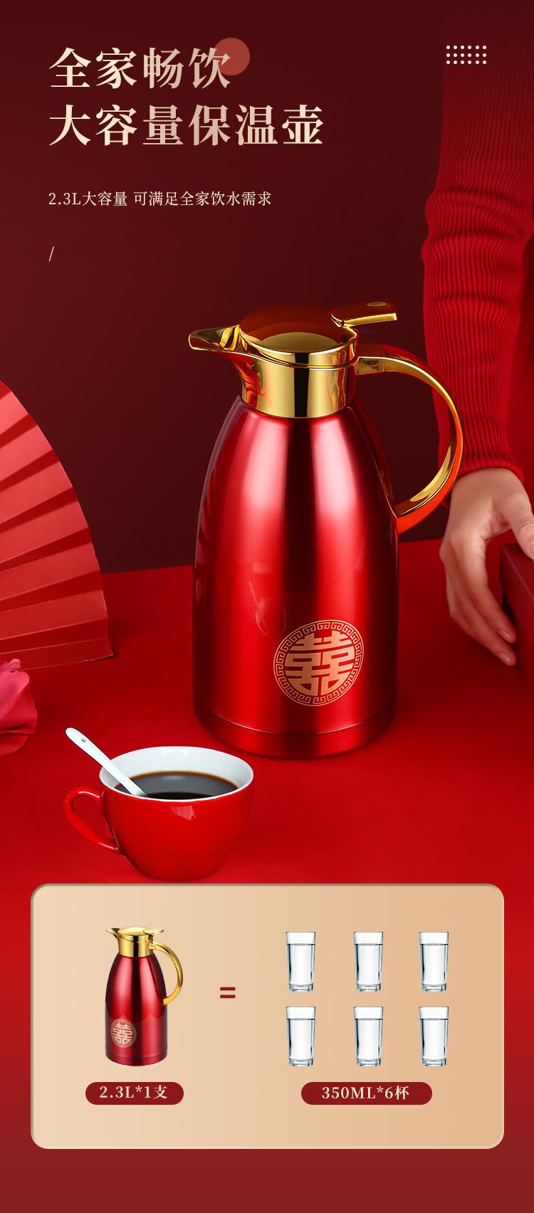 Hervidor de aislamiento térmico para boda, dote, un par de termos de acero inoxidable 304 con taza, termo festivo rojo