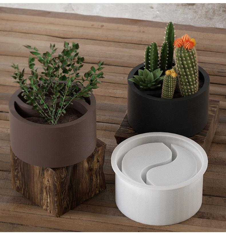 Molde de silicona para maceta de resina de goteo longitudinal DIY, tanque de almacenamiento, florero, aromaterapia, yeso, tai chi, yin y yang, vaso para vela