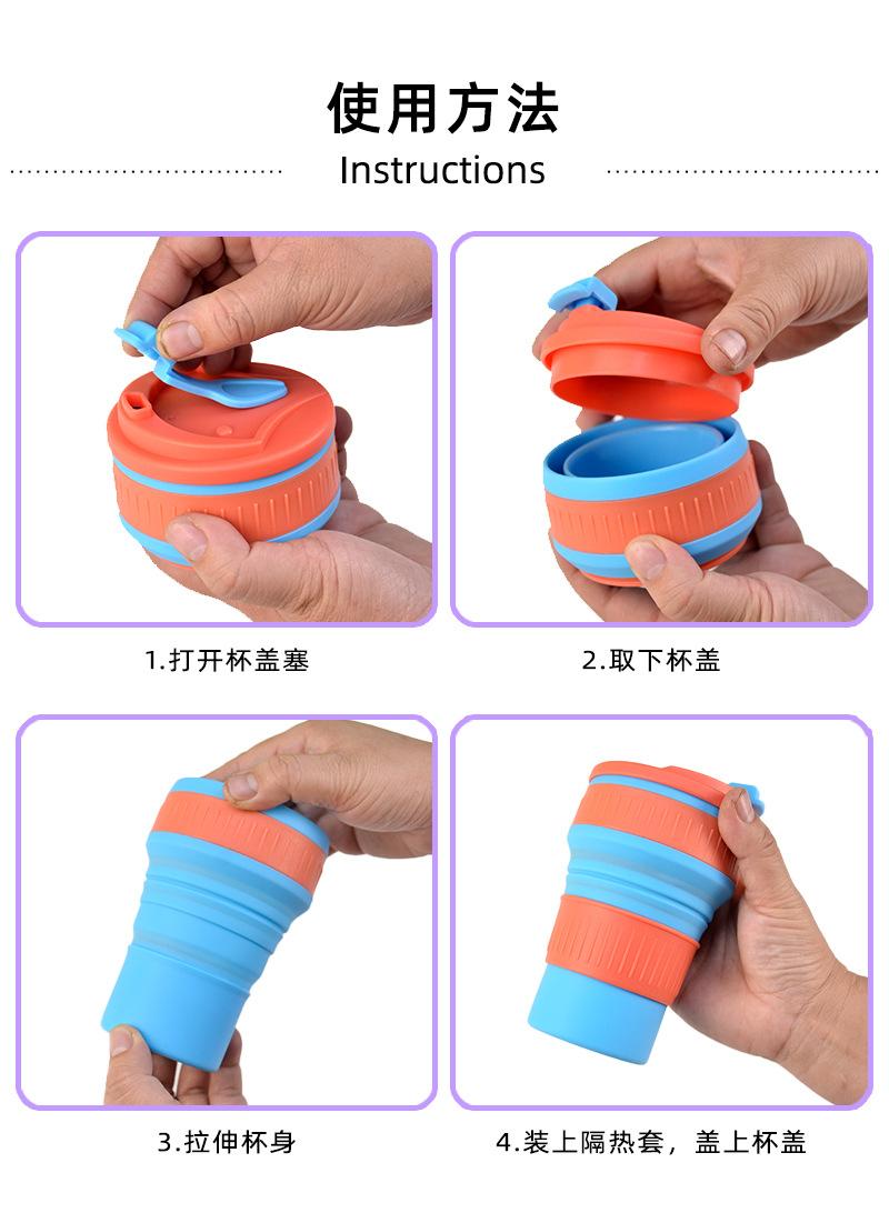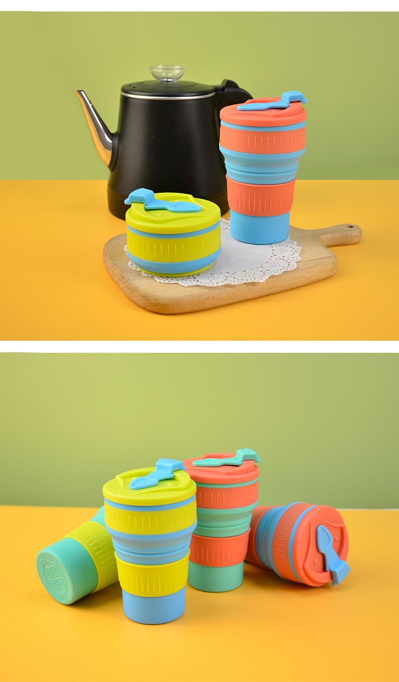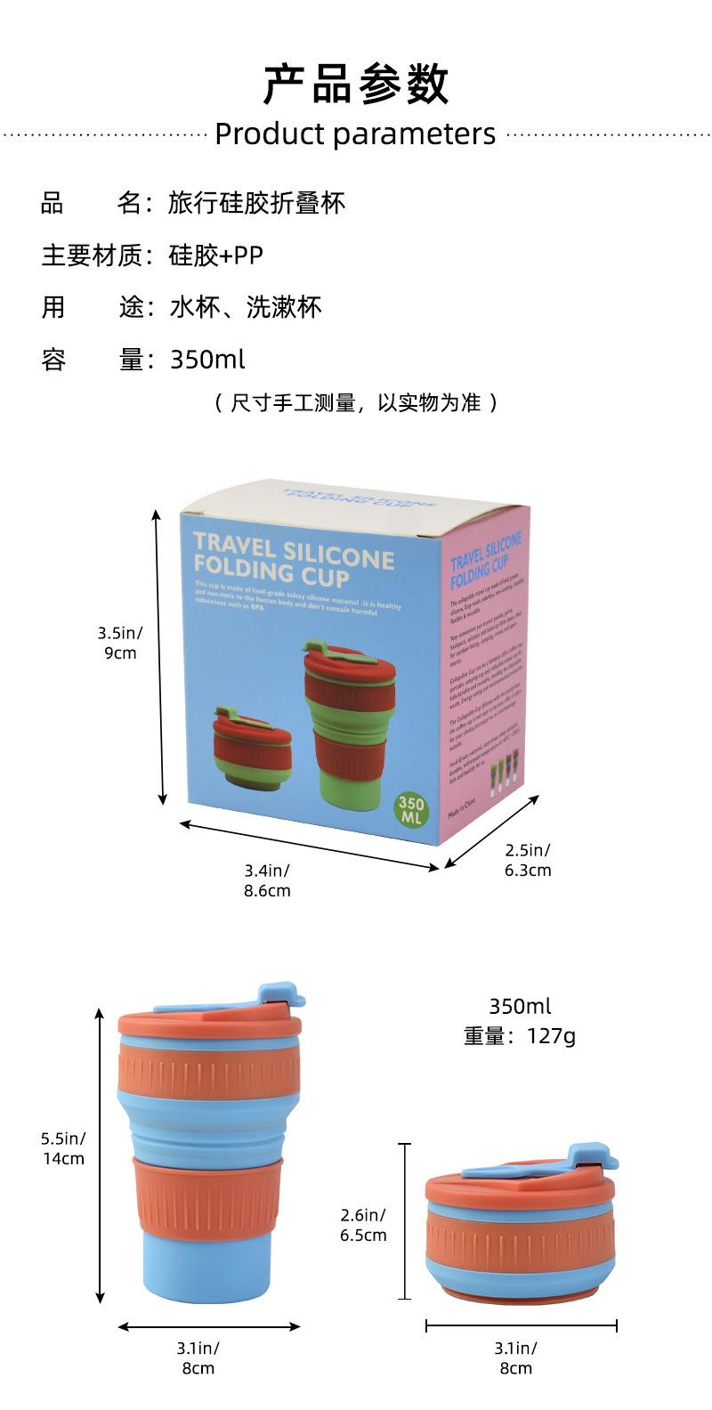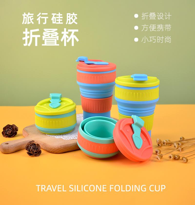 Taza plegable de silicona transfronteriza para acampar al aire libre, resistente a altas temperaturas, práctica taza de agua con tapa, venta al por mayor