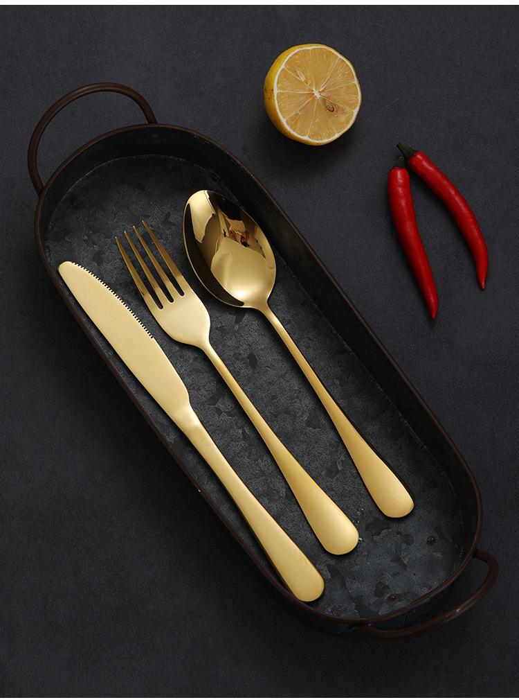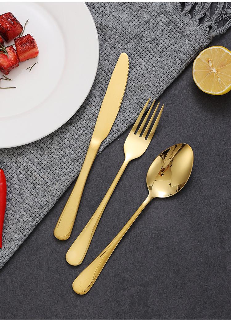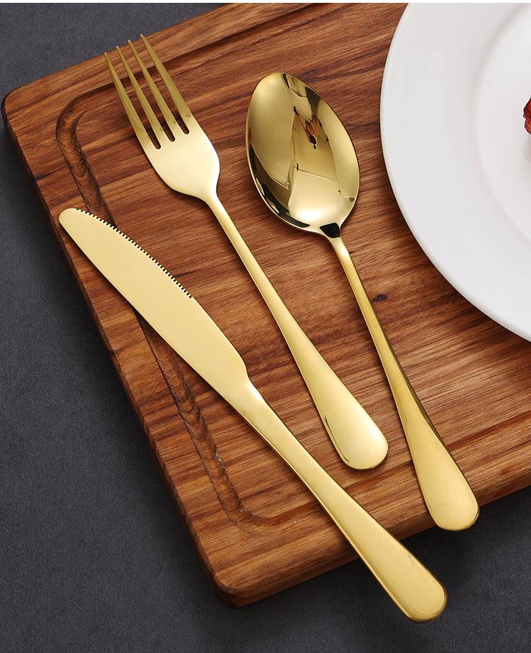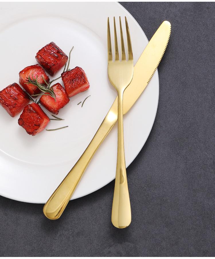 Palillos dorados de acero inoxidable estilo coreano, cuchara, cuchillo y tenedor para el plato principal, vajilla occidental, tenedor de postre, cuchillo para carne
