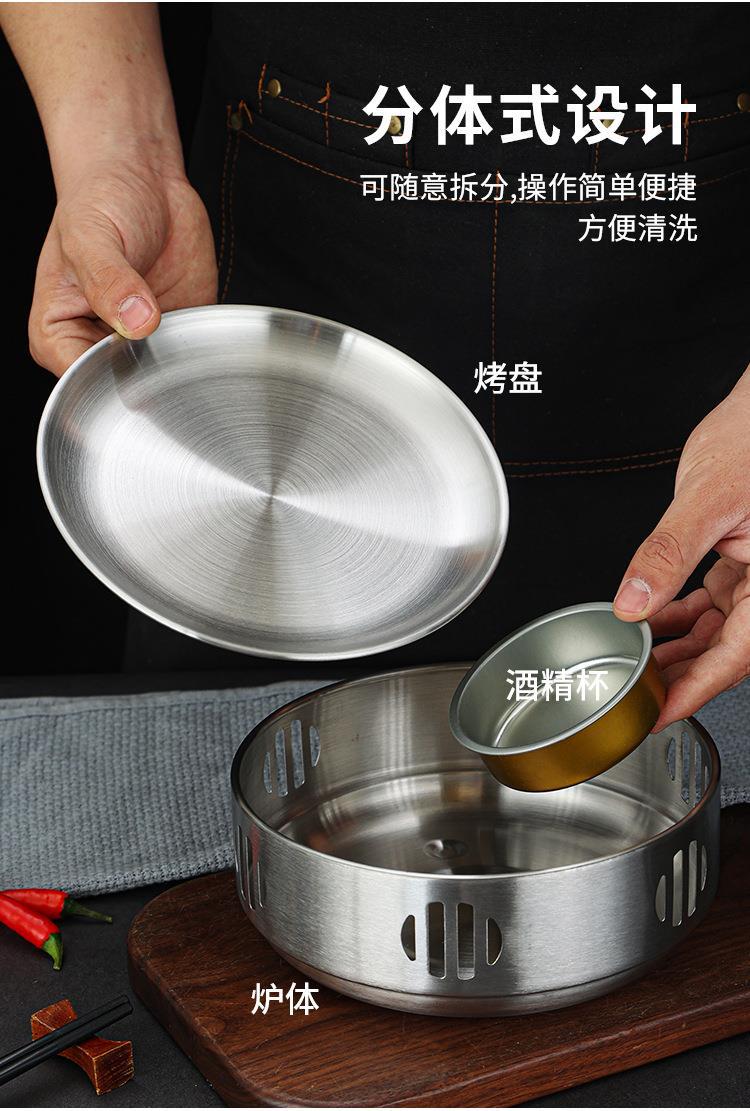 Compra Horno de barbacoa comercial de acero inoxidable estilo coreano, placa calefactora con caldera seca de alcohol, brochetas de cordero y horno calefactor con velas. al por mayor en Joom.pro