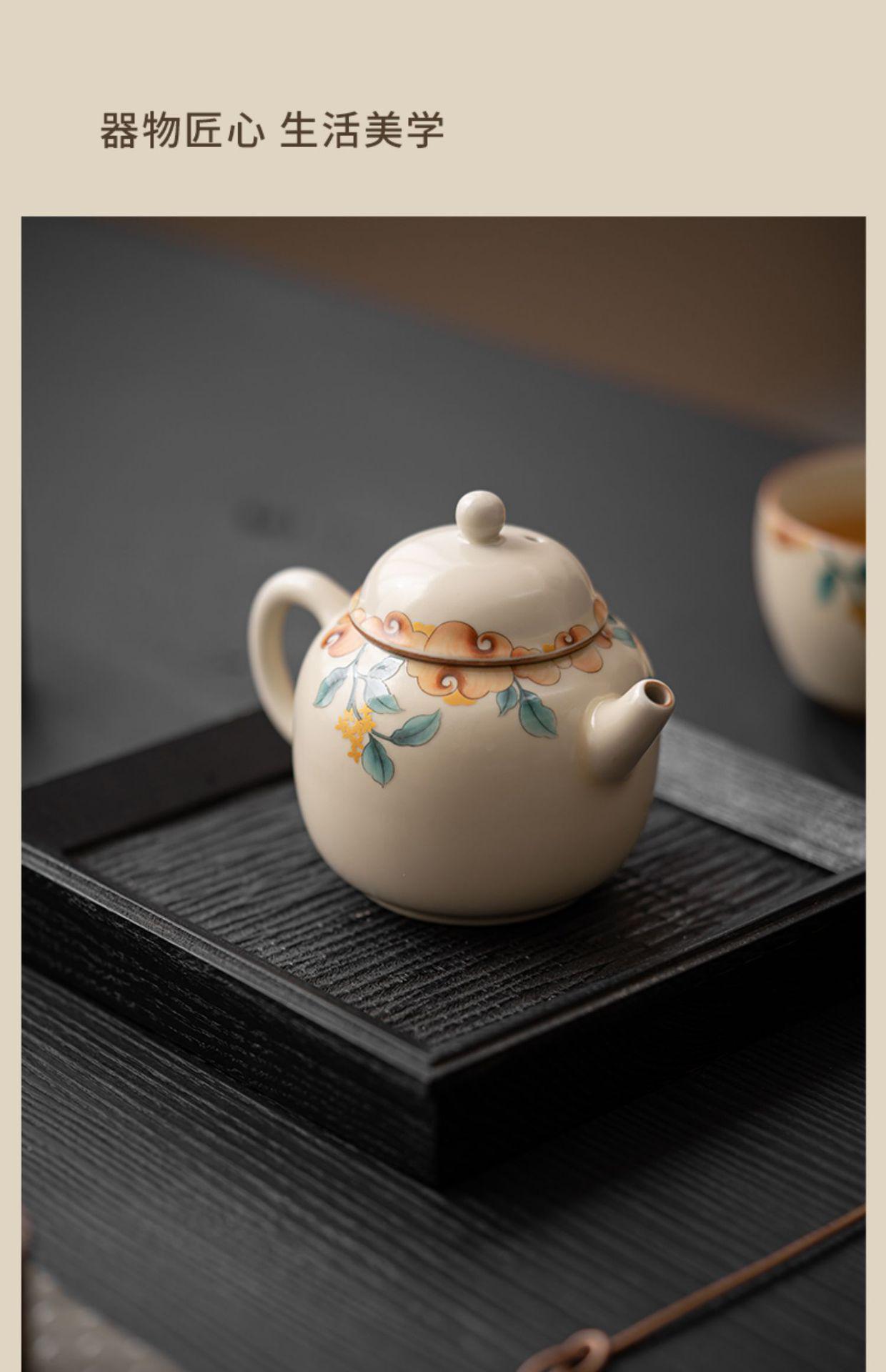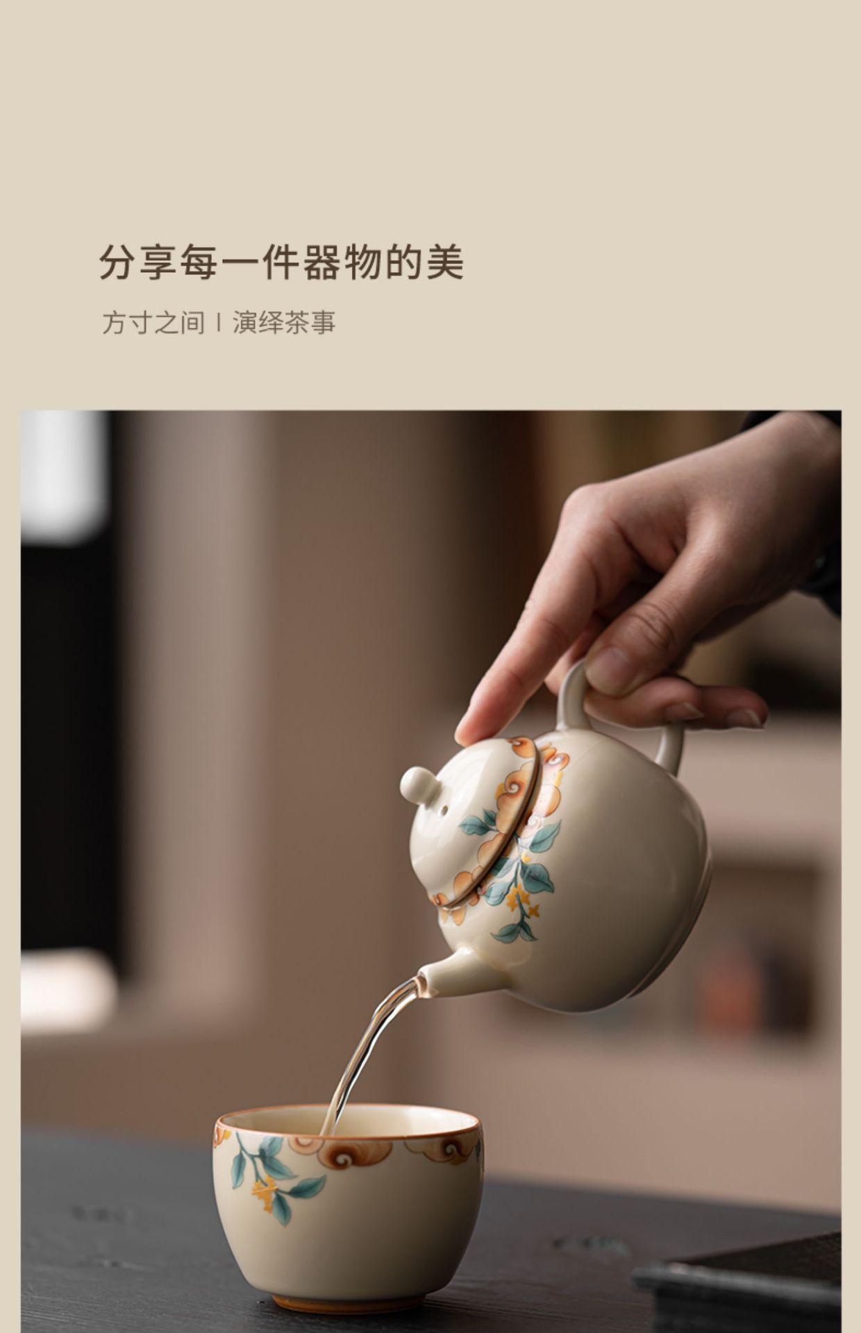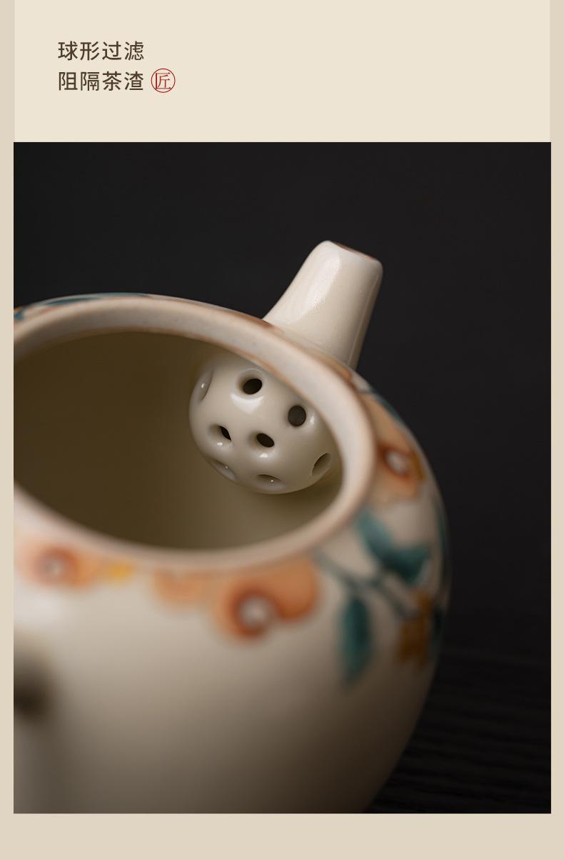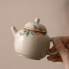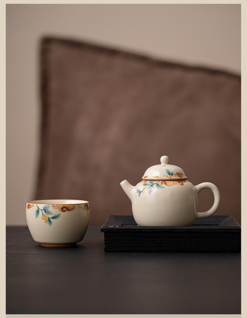 Tetera de cerámica beige Ruyao con película de apertura, juego de té de kung fu, tetera de oficina, maceta individual