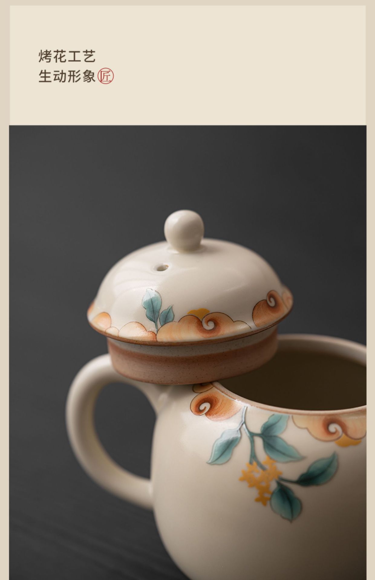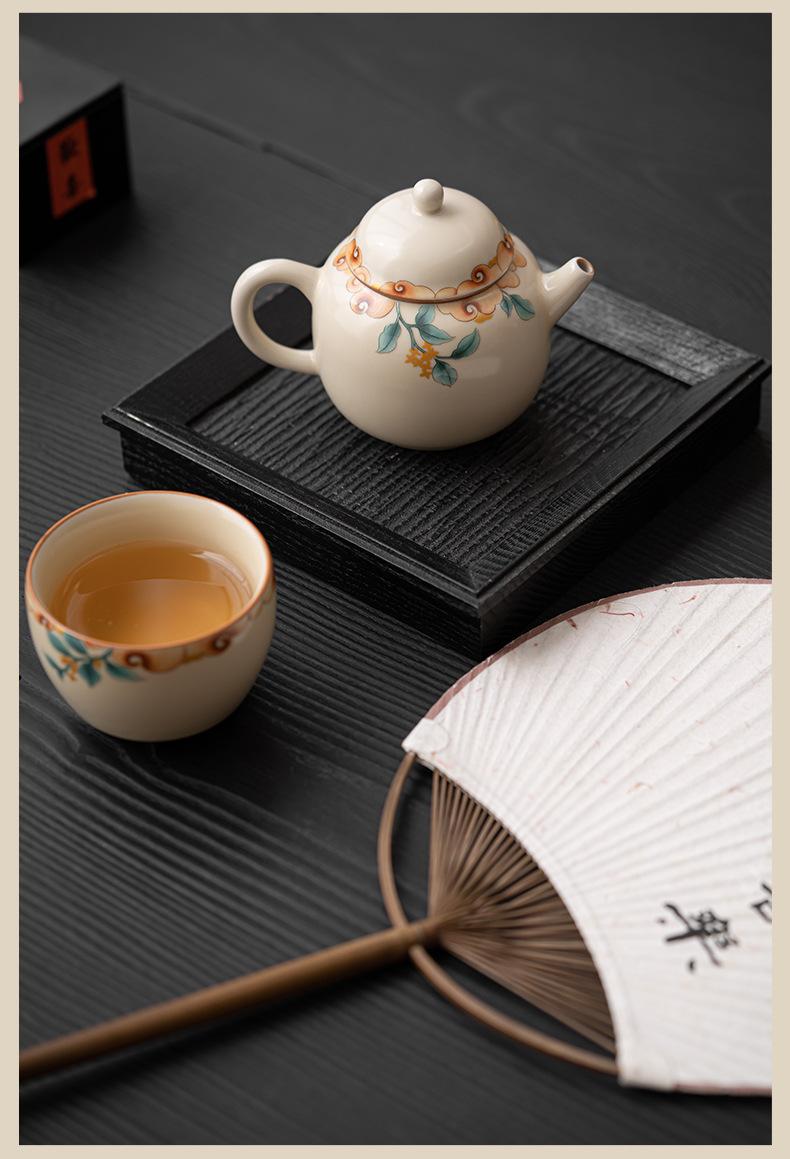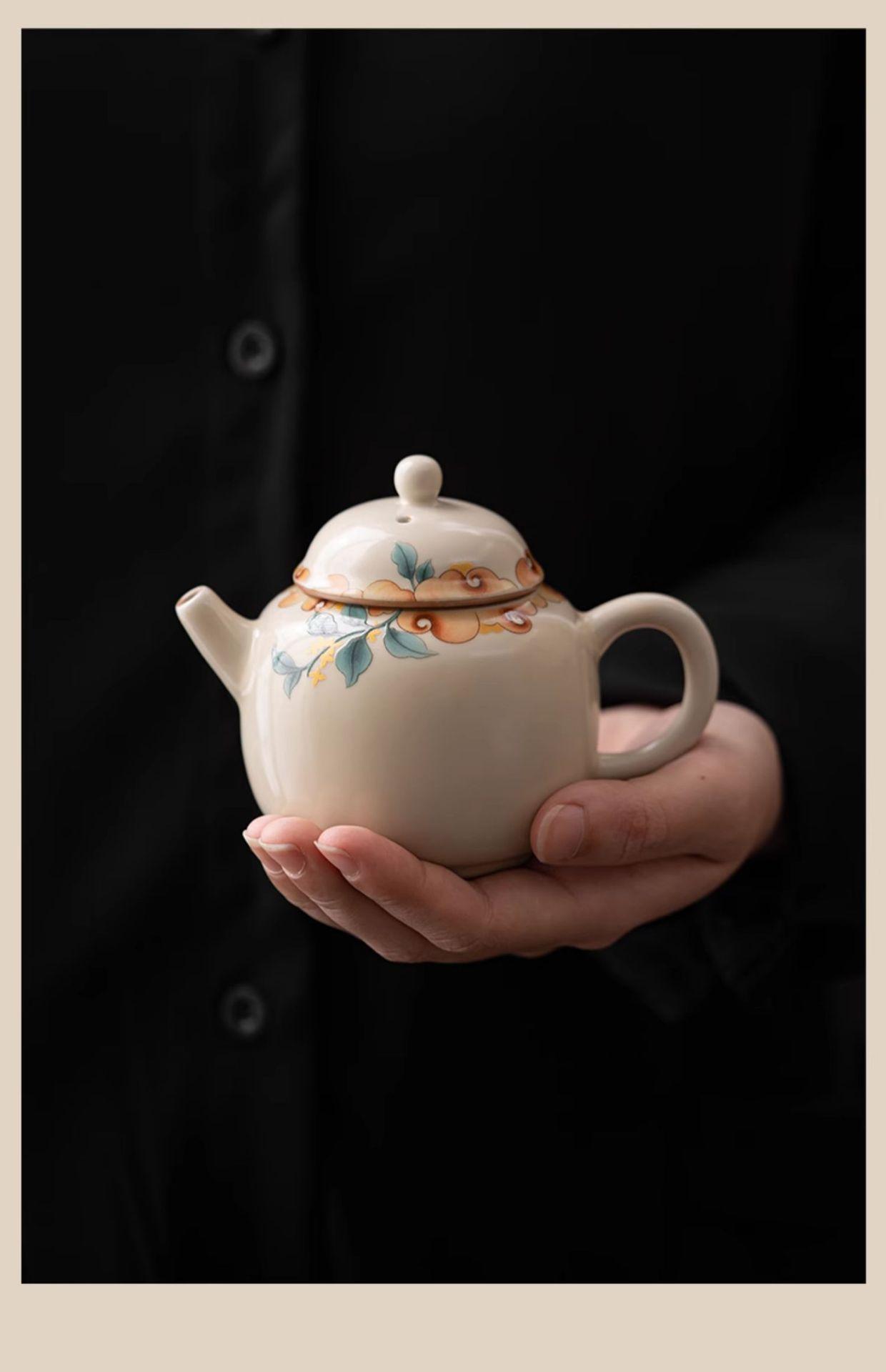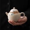 Tetera de cerámica beige Ruyao con película de apertura, juego de té de kung fu, tetera de oficina, maceta individual
