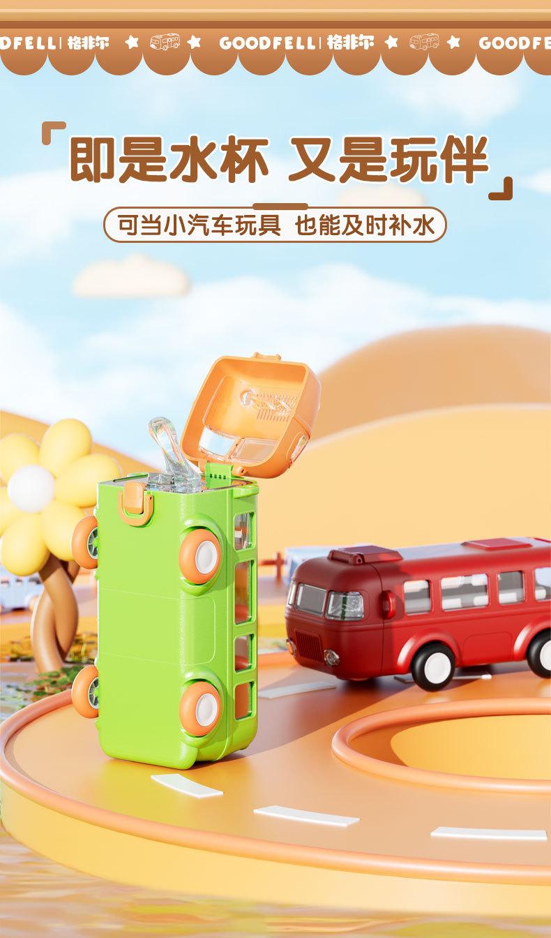 Taza de Verano para Niños Dibujos Animados Baby Bus Ventosa Jardín de Niños Escuela Primaria Escuela Hervidor Especial