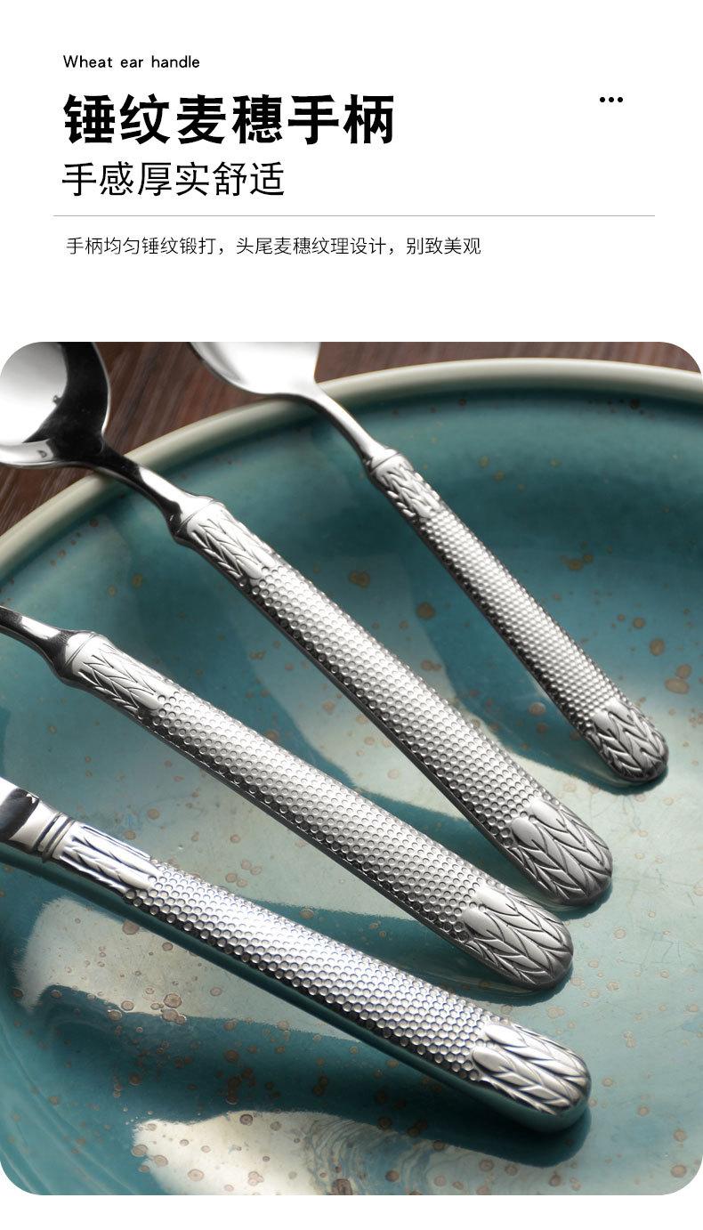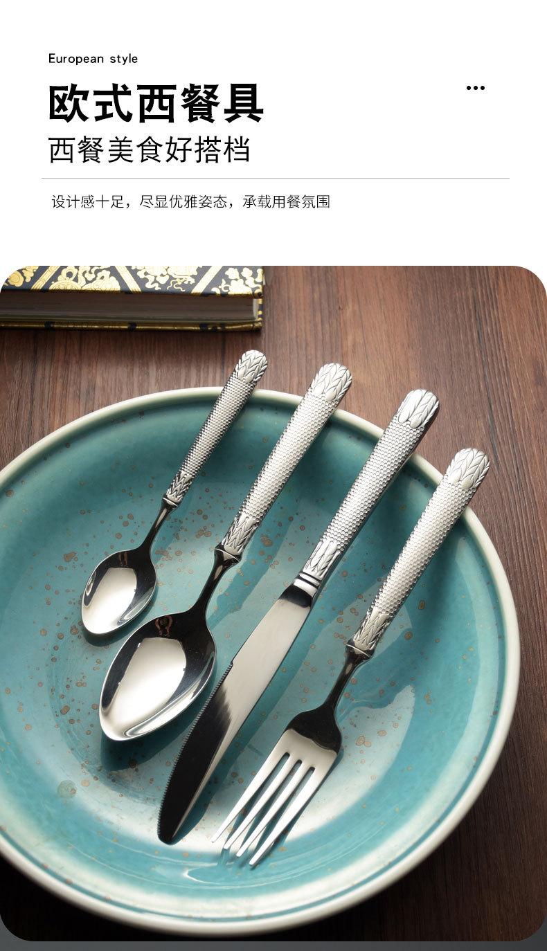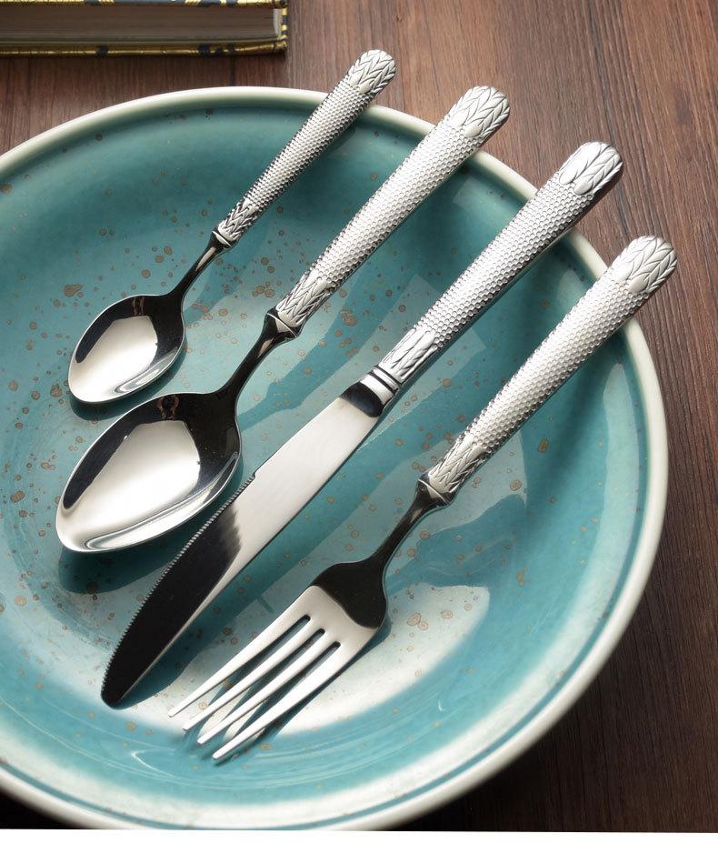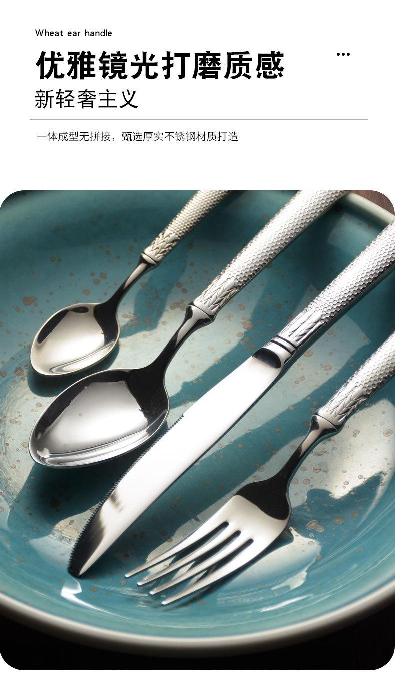 Lujo Ligero Elegante Acero Inoxidable Cuchillo para Bistec y Tenedor Cuchara Vajilla para Comida Occidental Juego de Tres Piezas Cuchara de Té Hogar Restaurante Hotel