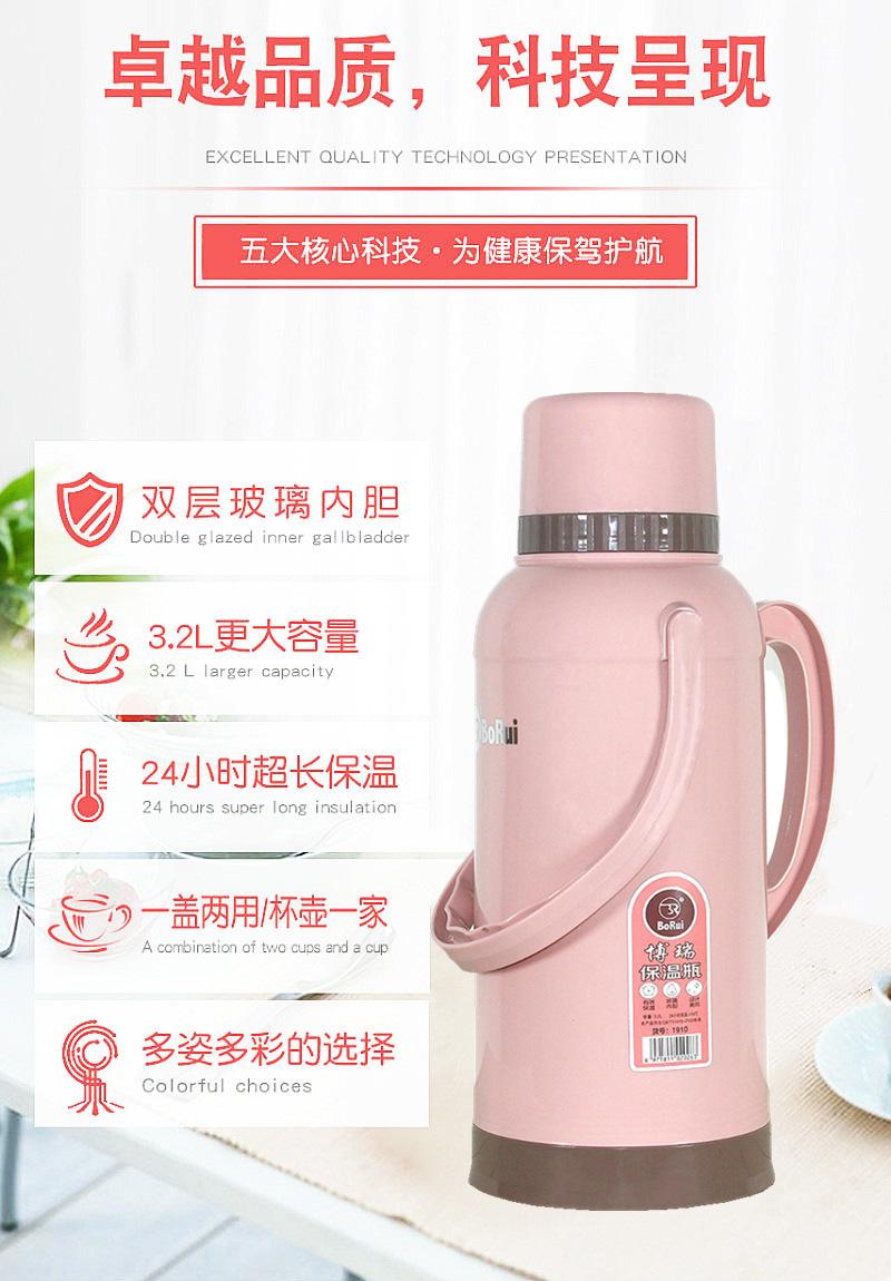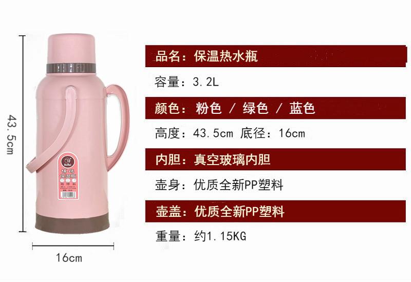 Botella de agua, termo doméstico de gran capacidad, termo de plástico, botella térmica de 3,2 l para dormitorio de estudiantes.
