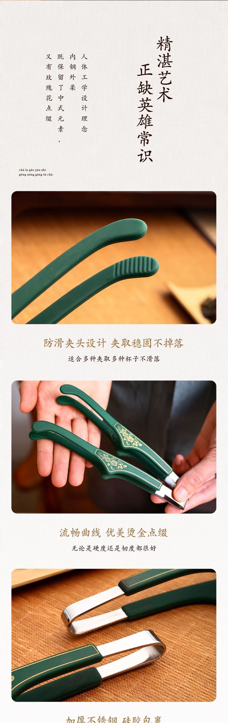 Clip para té de silicona y acero inoxidable accesorios para juego de té kung fu antideslizante clip para taza de té pinzas para té herramientas para ceremonia del té herramientas para hacer té