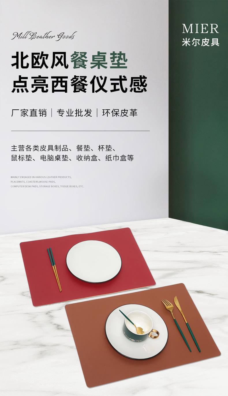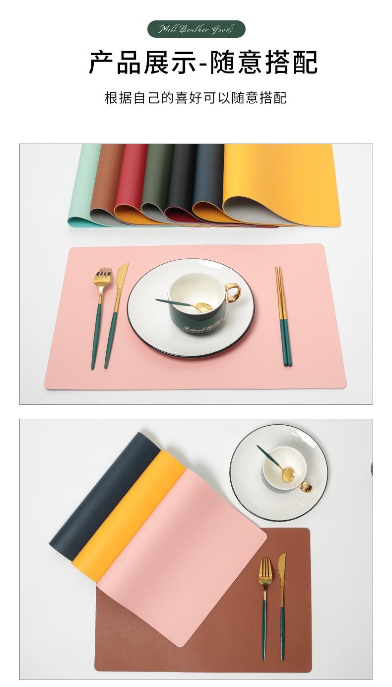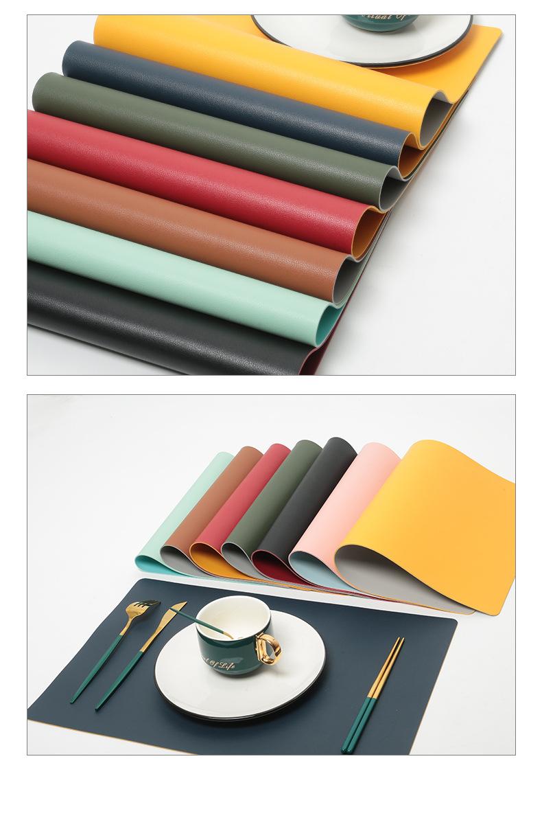 Individual rectangular bicolor de cuero napa estilo nórdico transfronterizo, tapete aislante antideslizante, mantel individual, impermeable