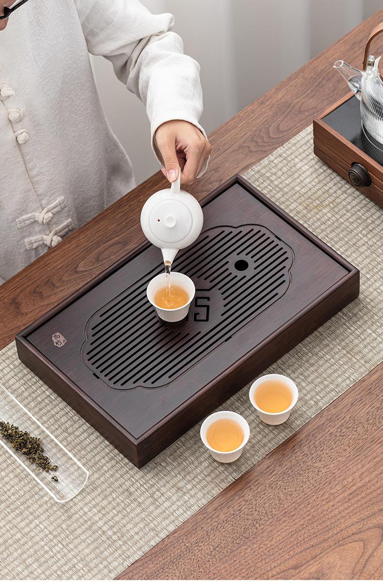Juego de té pequeño de bambú ligero de lujo para oficina en casa, bandeja de té con drenaje para almacenamiento de agua, juego de té japonés, mesa de té de mar, bandeja de té