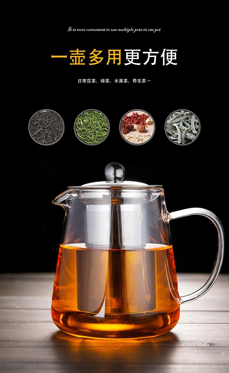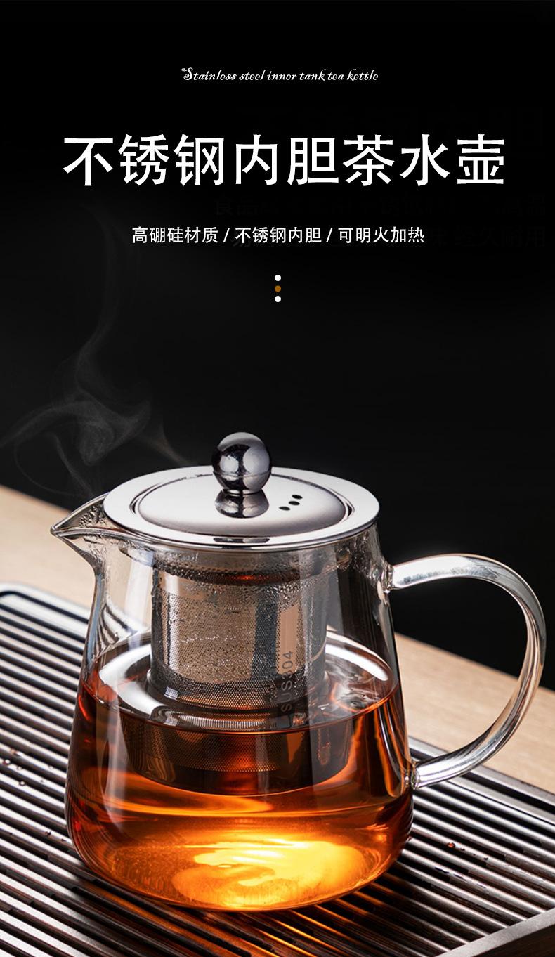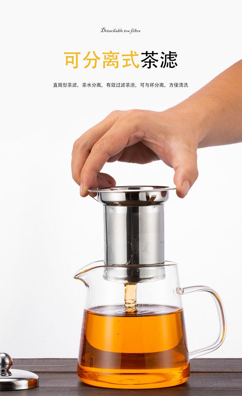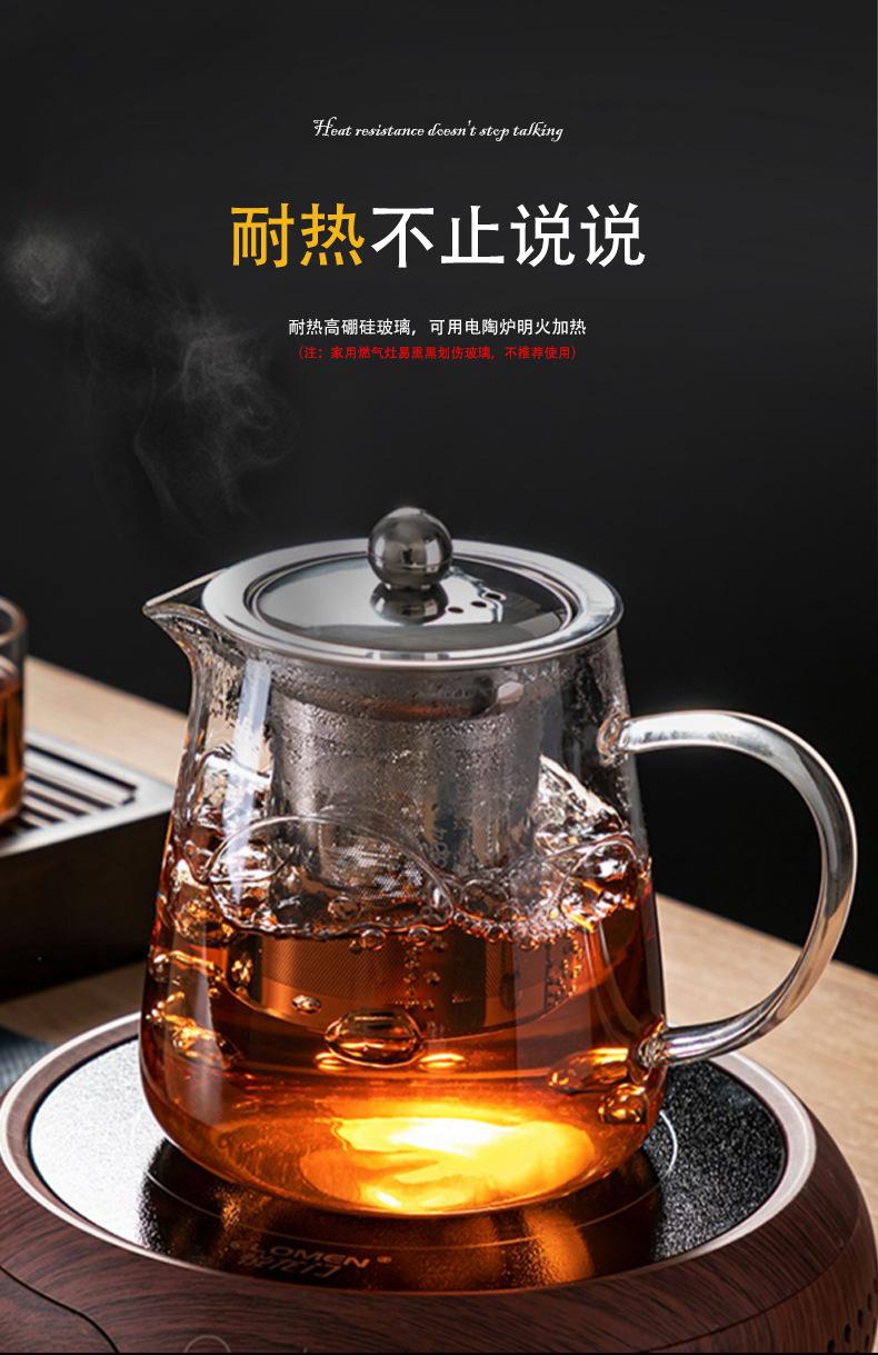 Tetera de vidrio espesado resistente al frío y al calor, redonda, triangular, de acero inoxidable, con filtro, juego de té Kung Fu, tetera recta