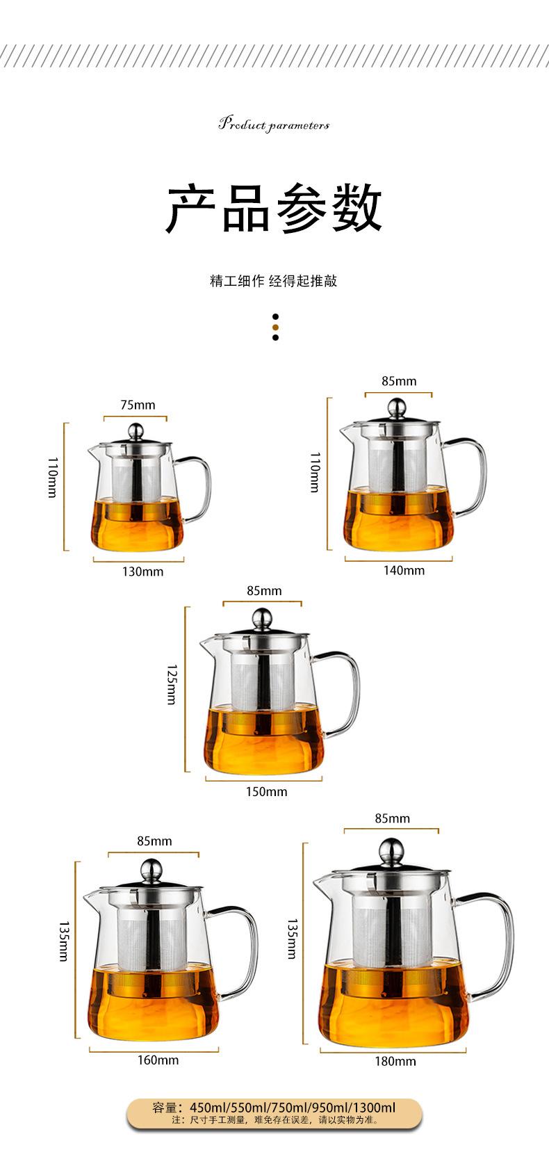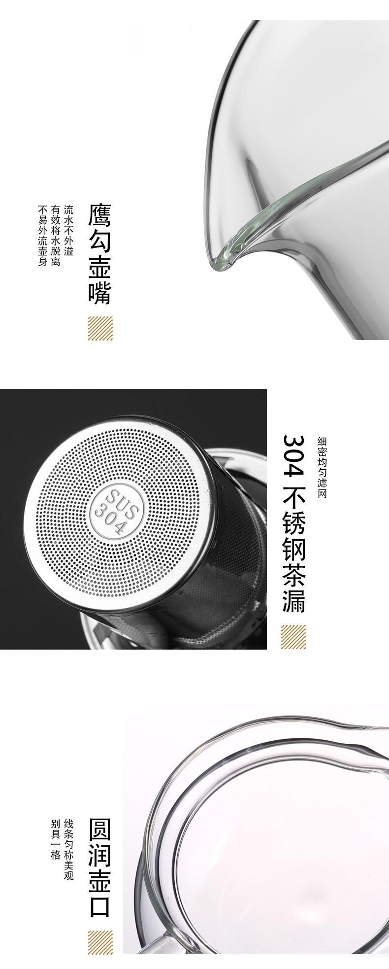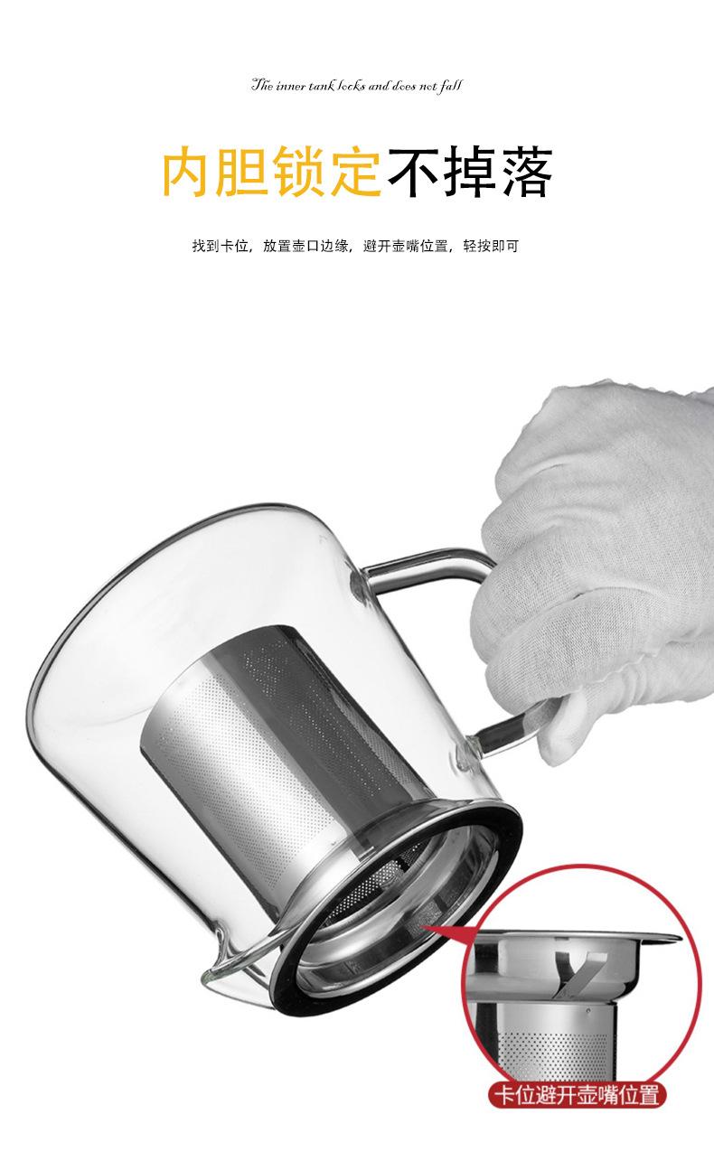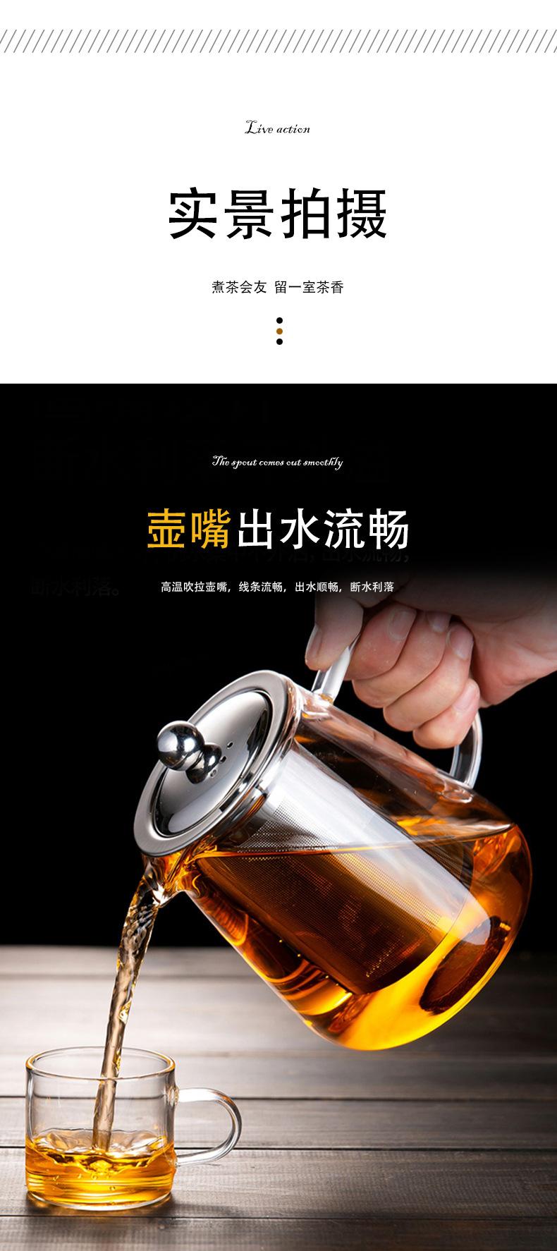 Tetera de vidrio espesado resistente al frío y al calor, redonda, triangular, de acero inoxidable, con filtro, juego de té Kung Fu, tetera recta
