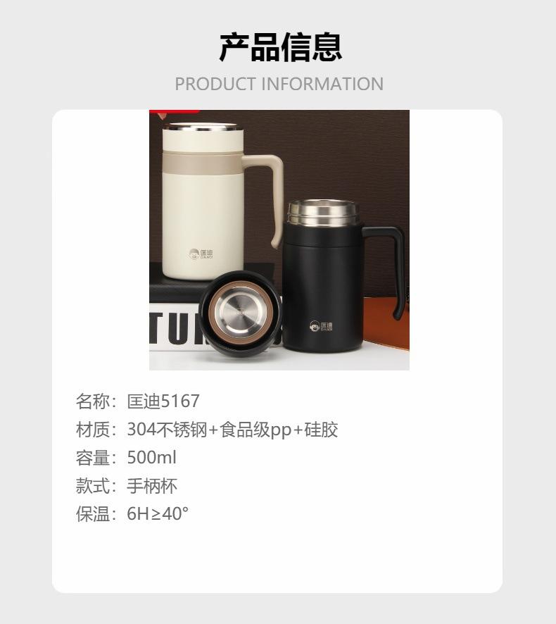 Taza de vacío Kuangdi 5167 con asa, taza de acero inoxidable 304, taza aislante para oficina, regalo, impresión de taza