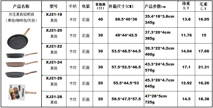 XJ21-18cm-double bottom model (Universal for gas stove and induction cooker), XJ21-20cm-double bottom model (U...