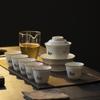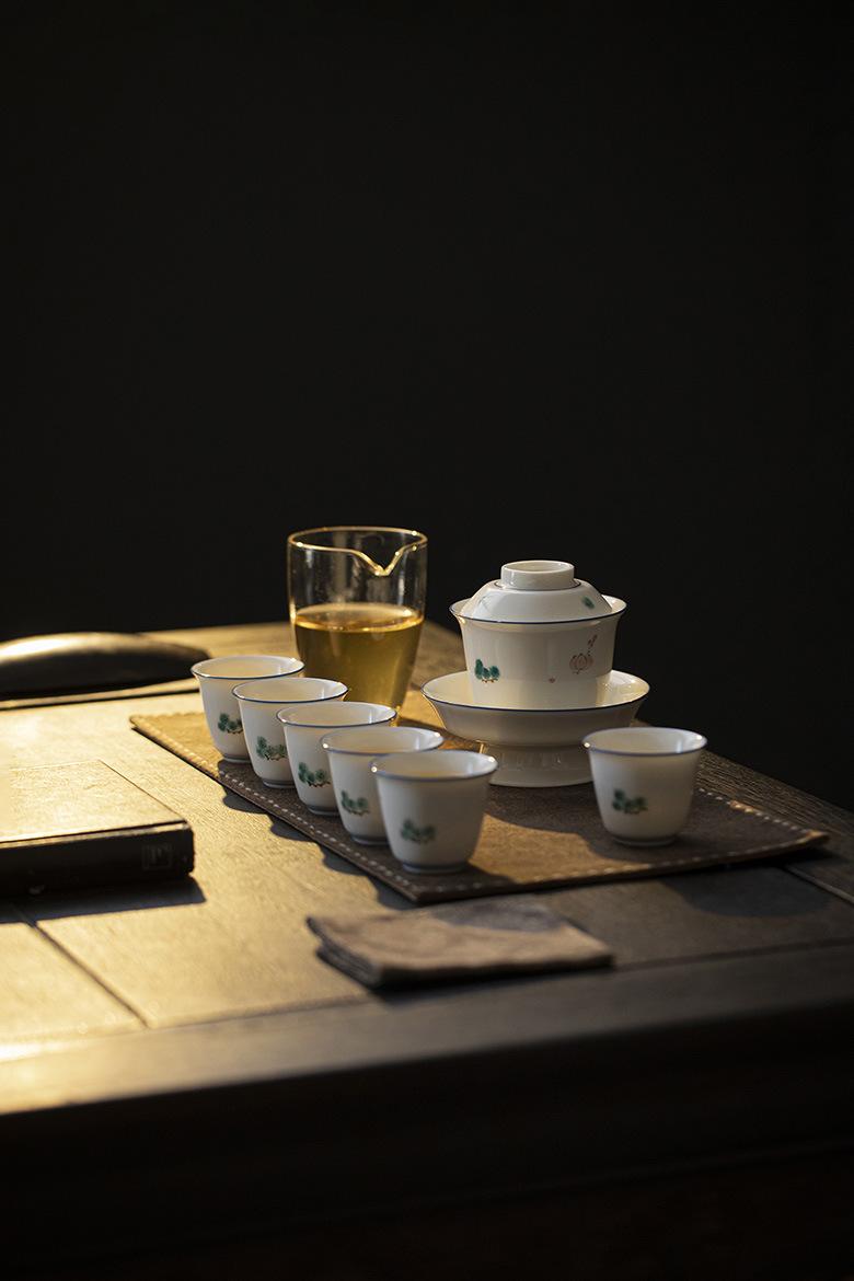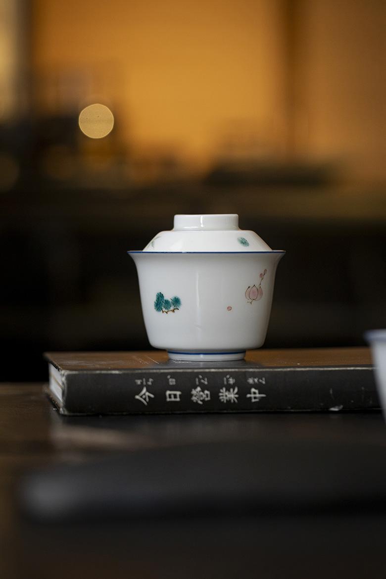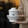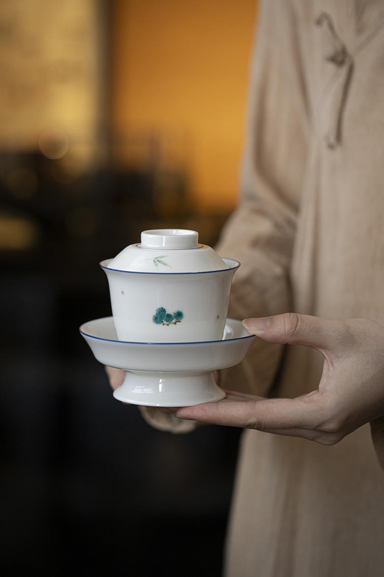 Cuenco con tapa de porcelana blanca de barro de jade Moji pintado a mano para literatos Cuenco de té casero para pies delgados y resfriados Cuenco con tapa de juego de té de Kung Fu de tres amigos