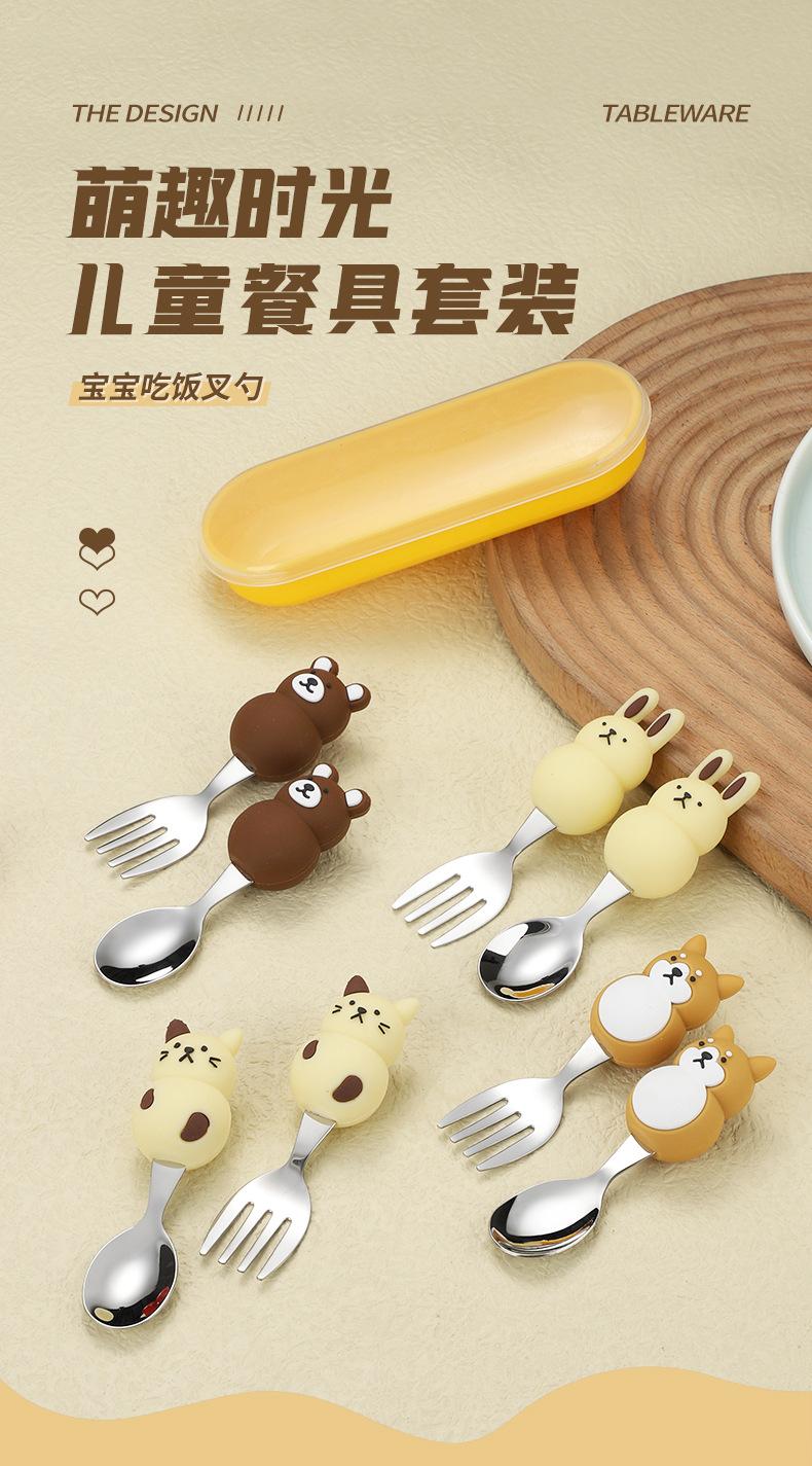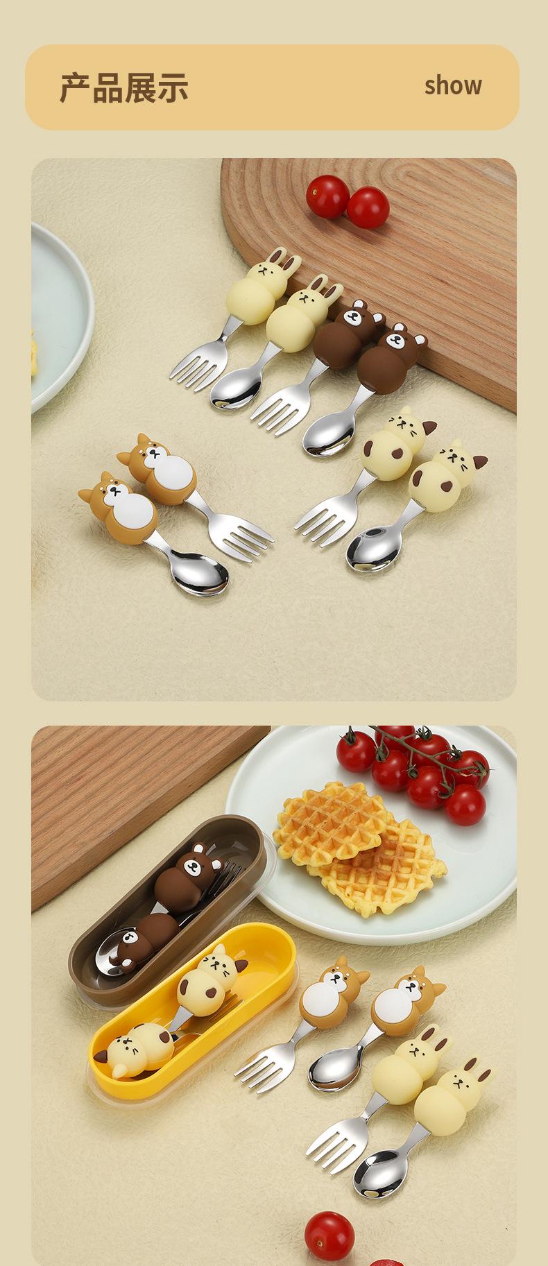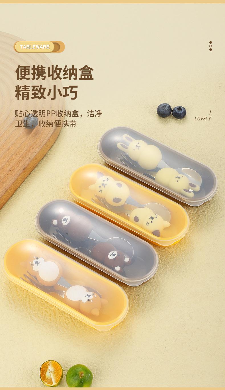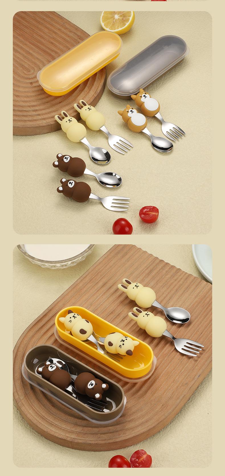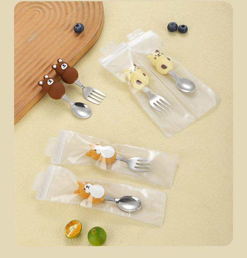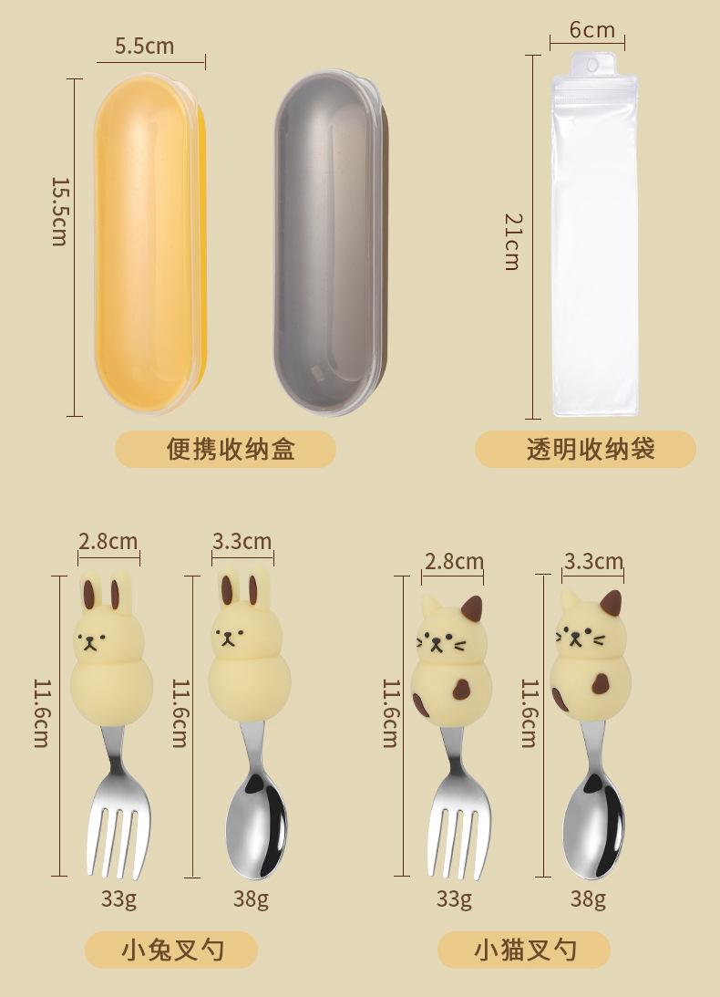 Cat spoon + transparent storage bag, Cat fork + transparent storage bag, Rabbit spoon + transparent storage ba...