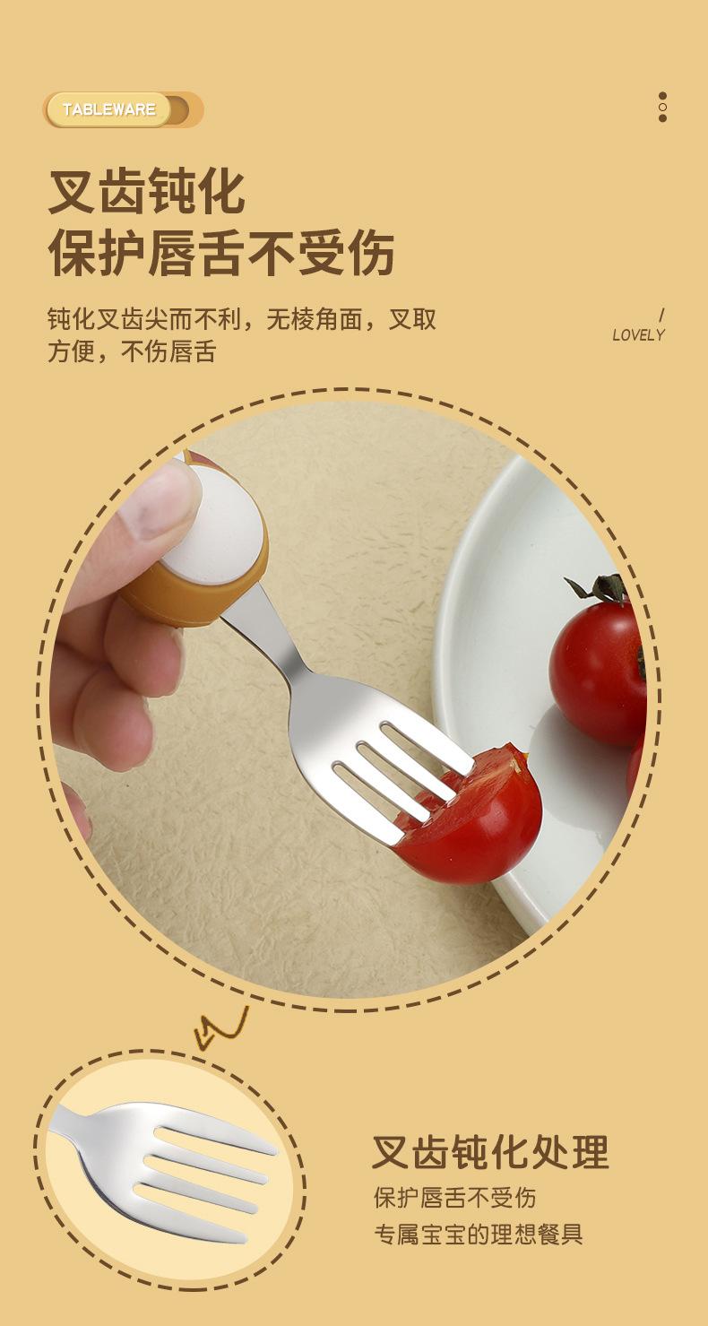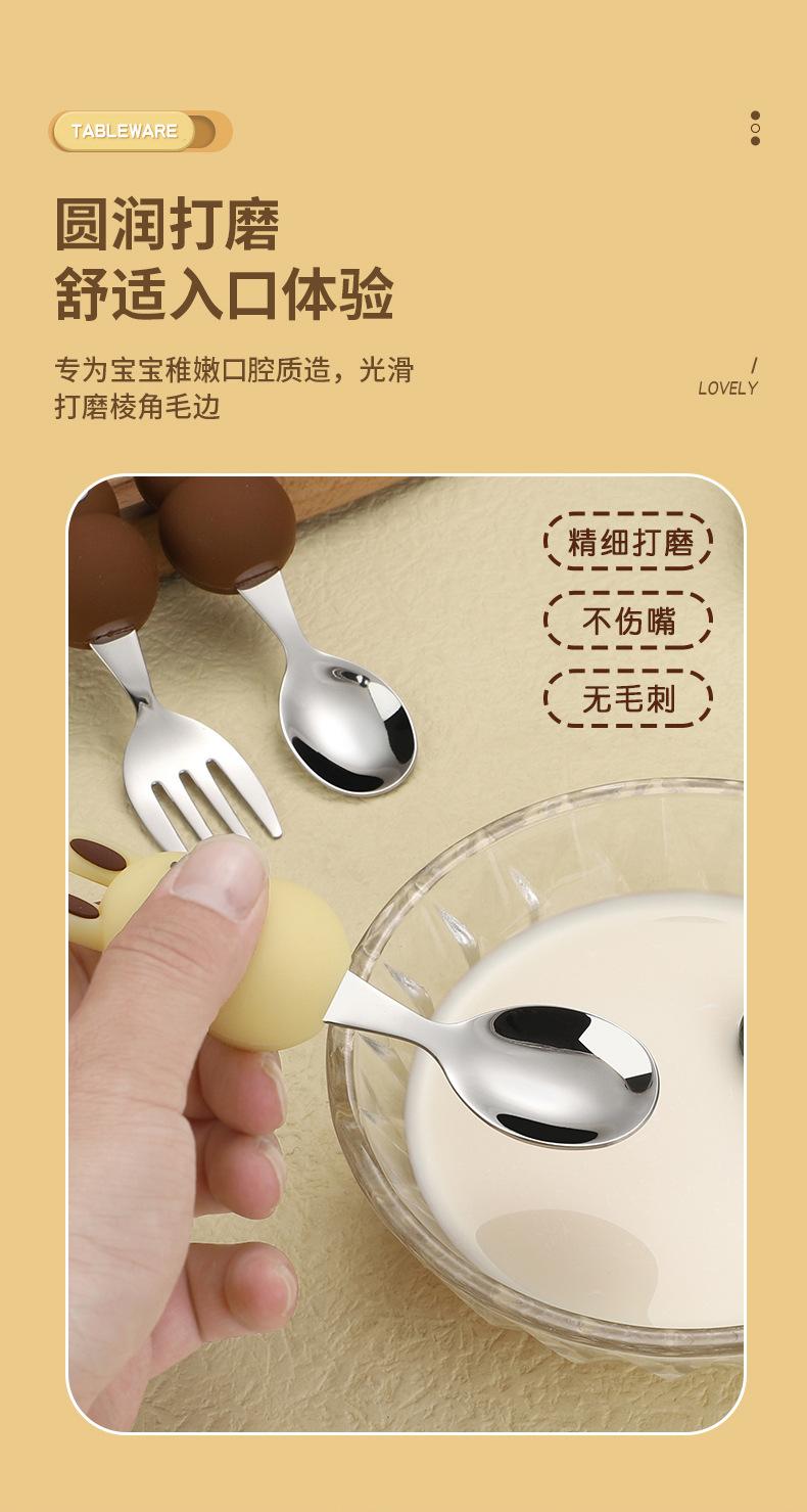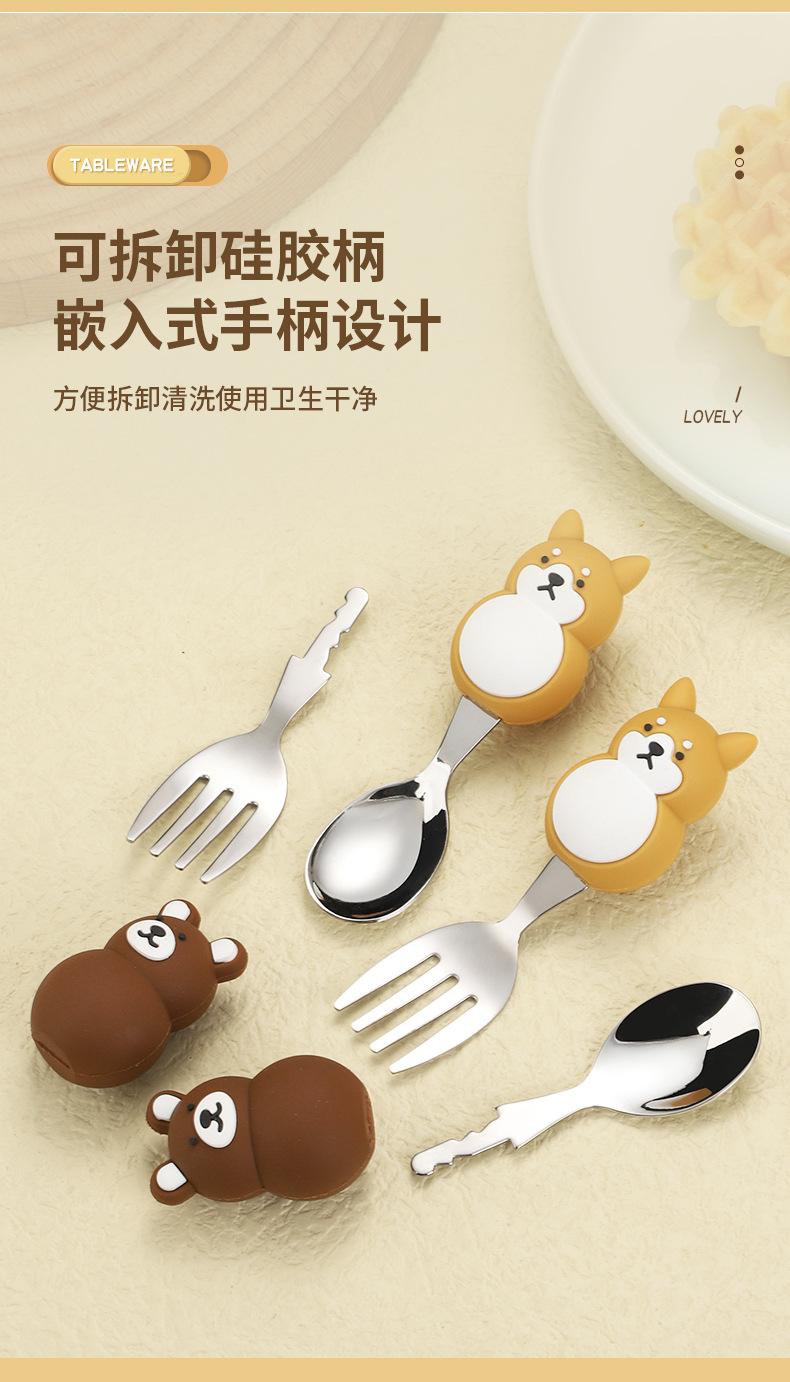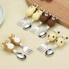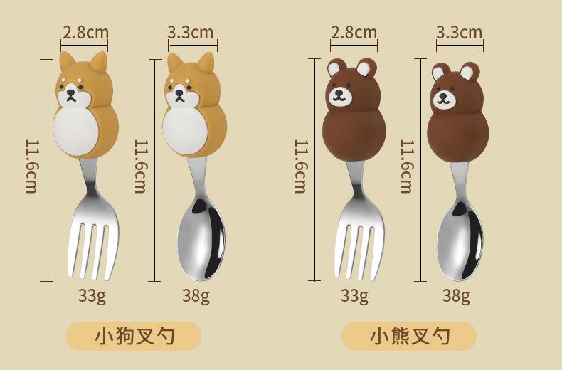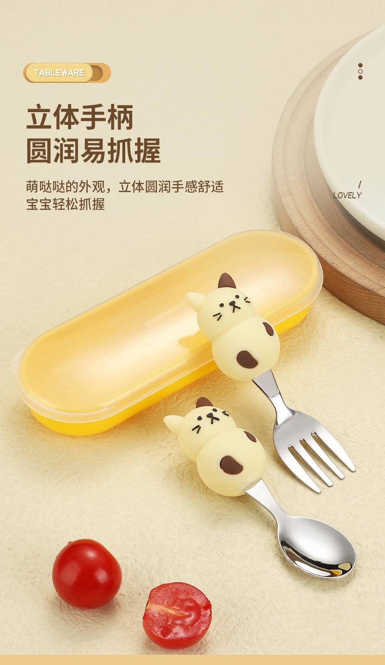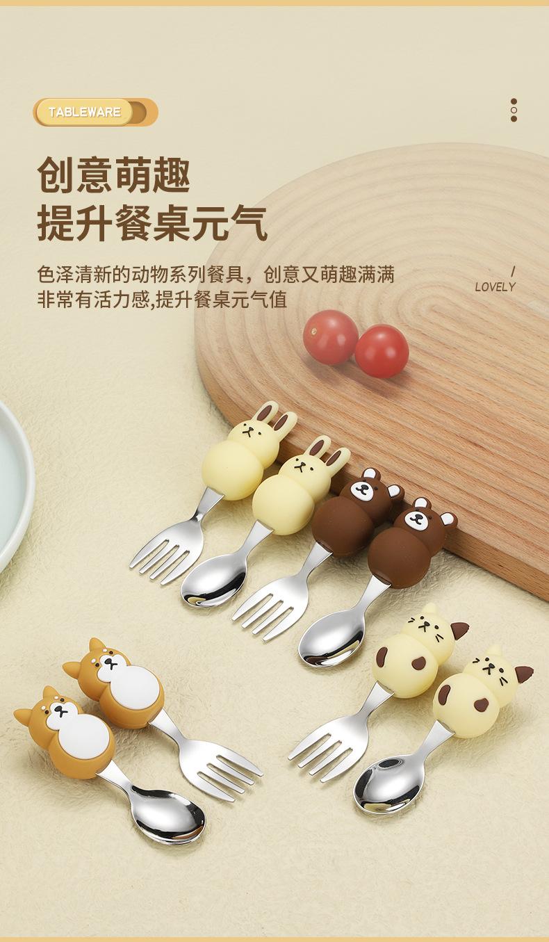 Cat spoon + transparent storage bag, Cat fork + transparent storage bag, Rabbit spoon + transparent storage ba...