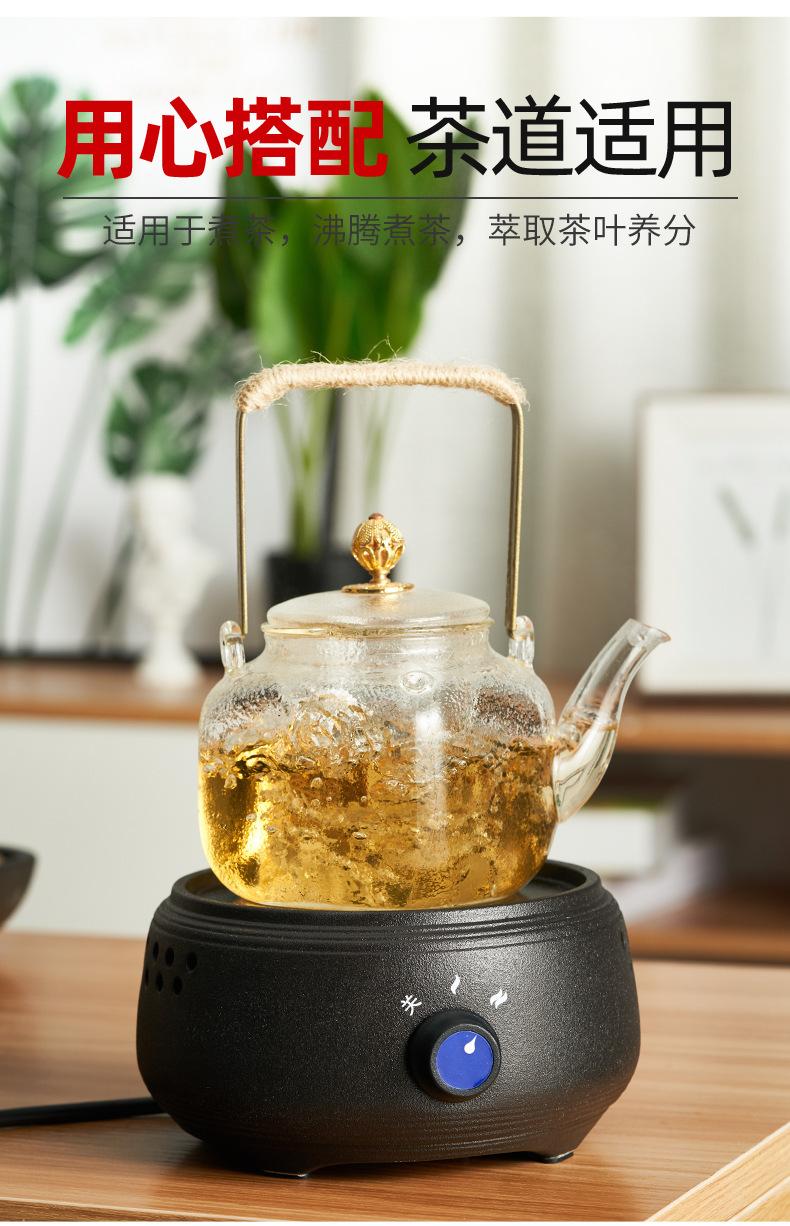 Juego de tetera de frutas, tetera de vidrio transparente resistente al calor engrosada, estufa de cerámica eléctrica, tetera, taza de té de flores, juego de té