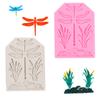 Molde para hornear pasteles de azúcar, molde de silicona con borde de chocolate, piedra, hierba y libélula