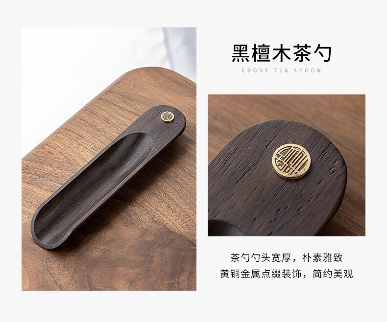 Ceremonia del té de madera maciza de ébano, seis caballeros, cuchillo de té de cuatro piezas, pinza para té, tetera, bolígrafo, juego de té, accesorios