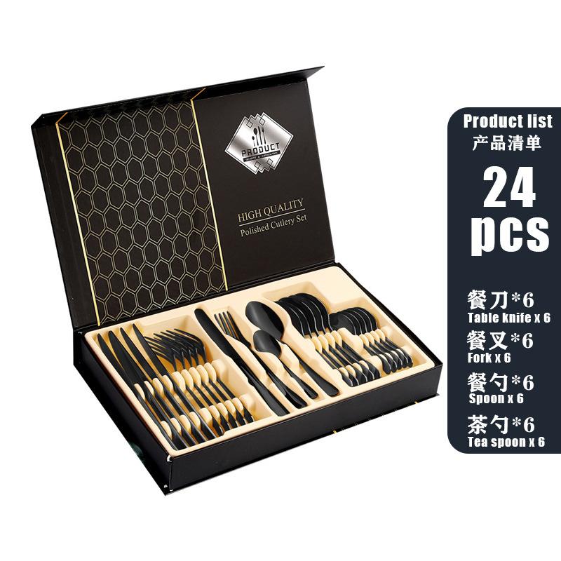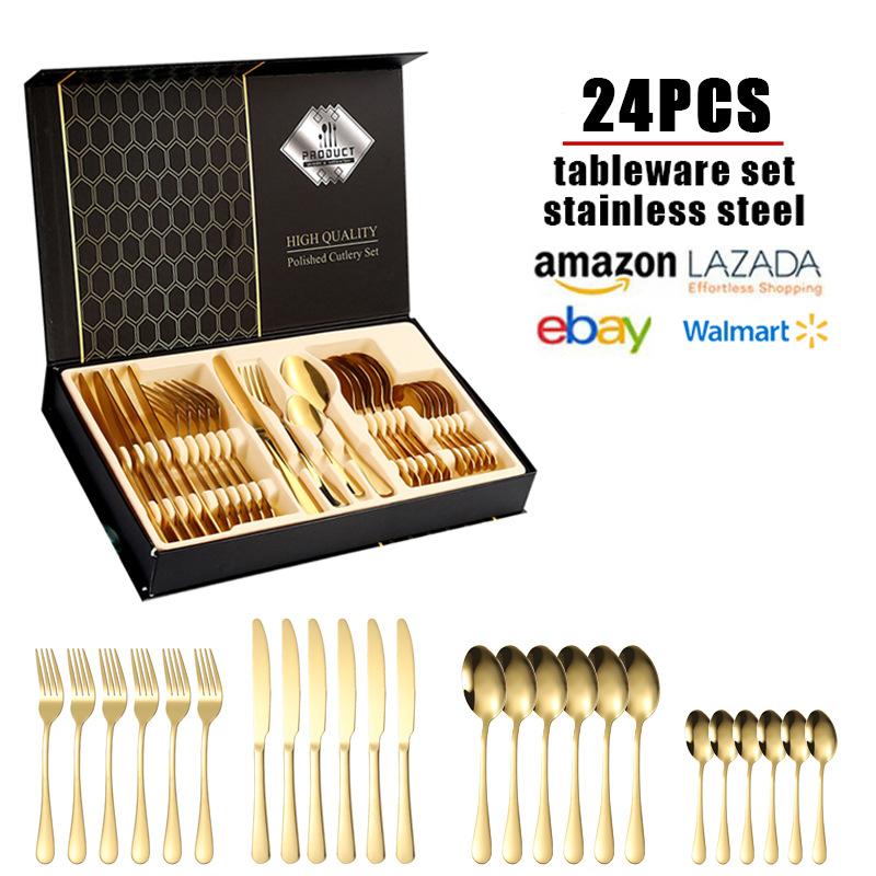 Compra Juego de cubiertos de acero inoxidable de alta venta transfronteriza Cuchillo, Tenedor y Cuchara Juego de 24 piezas Caja abatible Caja de regalo Cuchillo y Tenedor para Bistec Occidental al por mayor en Joom.pro
