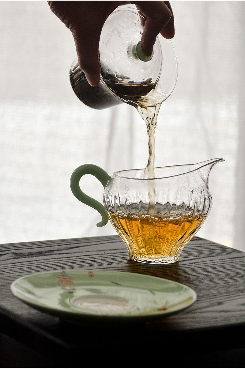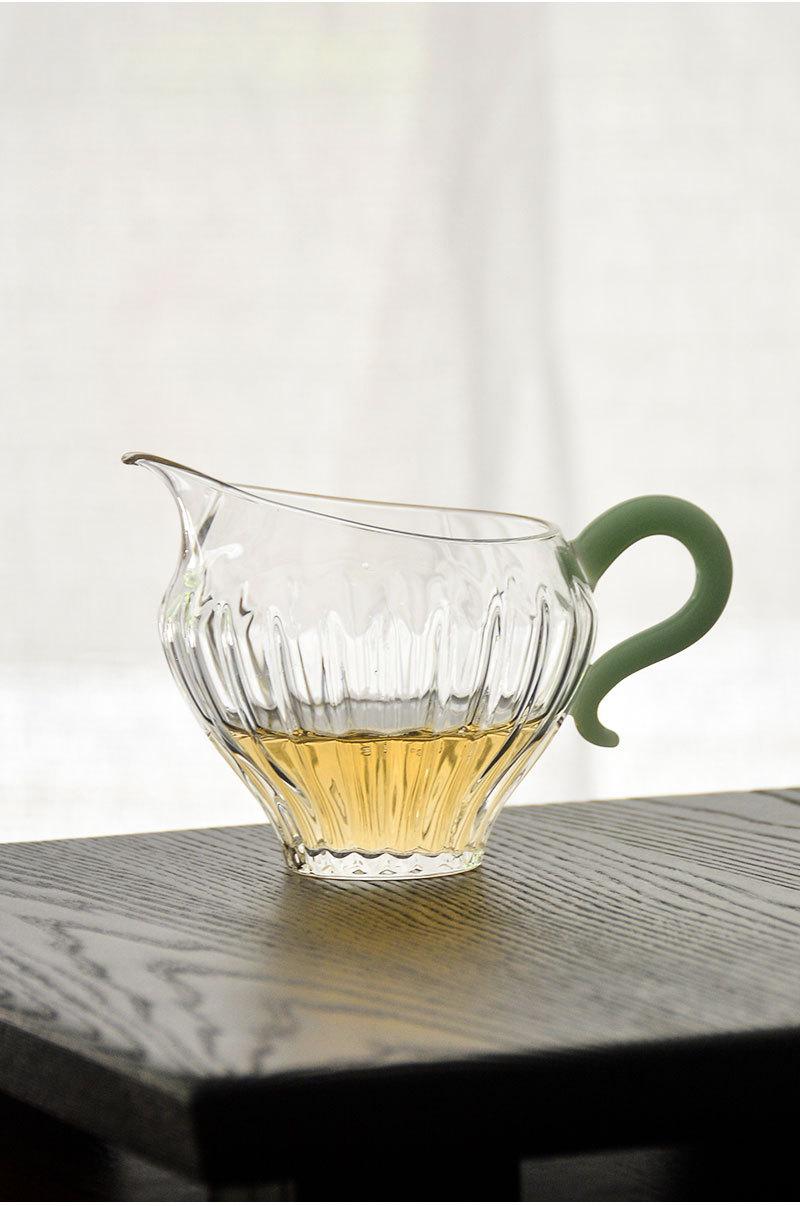Filtro de té de vidrio para taza de té resistente al calor engrosado con asa lateral integrada, juego de té de borosilicato para taza de té de mar, accesorios para distribución de té