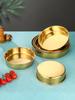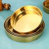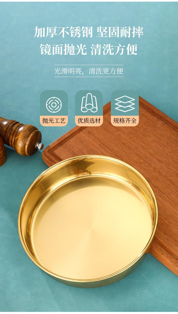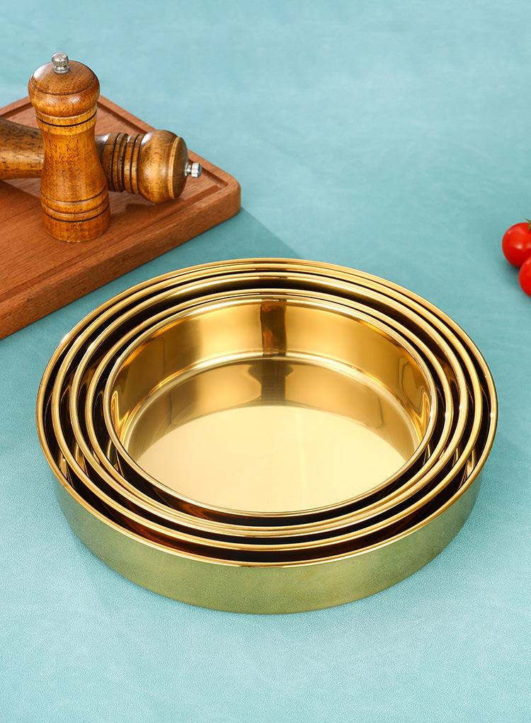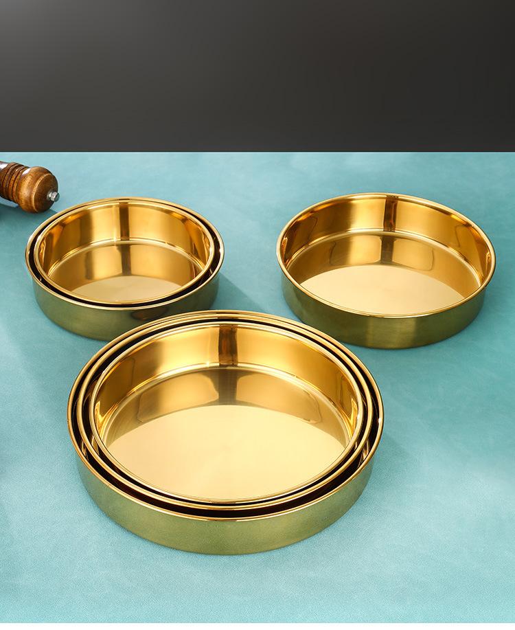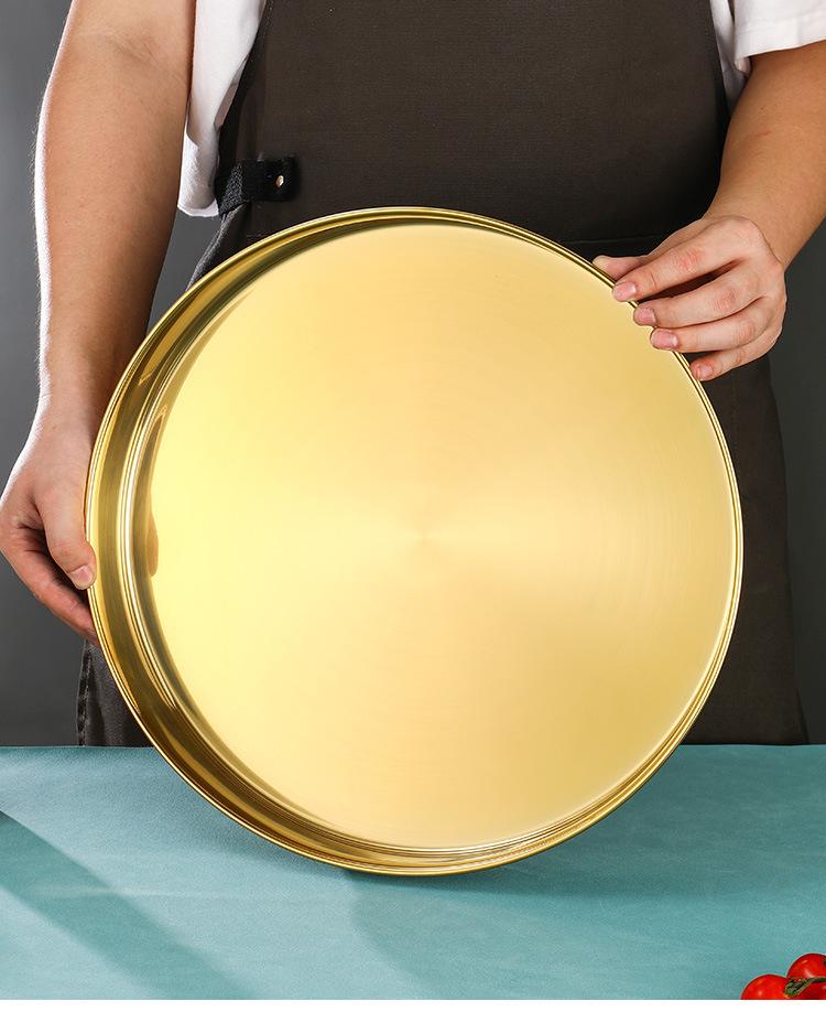 Plato grande de acero inoxidable dorado, redondo, de fondo plano, chapado en oro, plato para pastel, plato hondo grande, bandeja para taza, vajilla comercial
