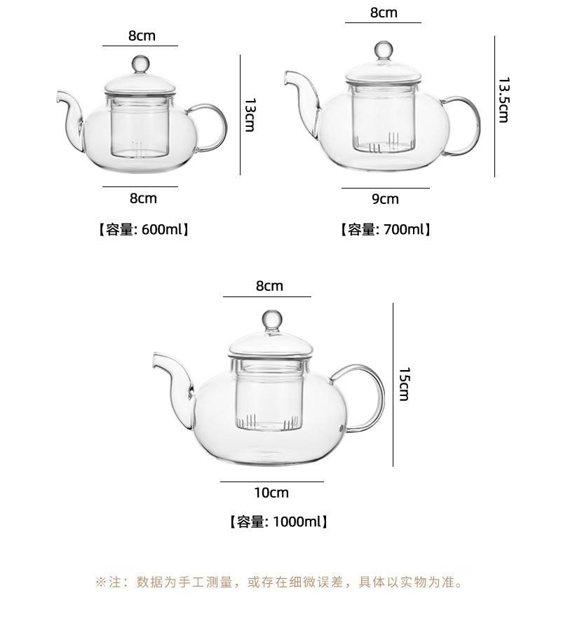 Juego de tetera de vidrio de alta borosilicato resistente a altas temperaturas, tetera con filtro, juego de té kung fu, tetera al por mayor