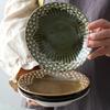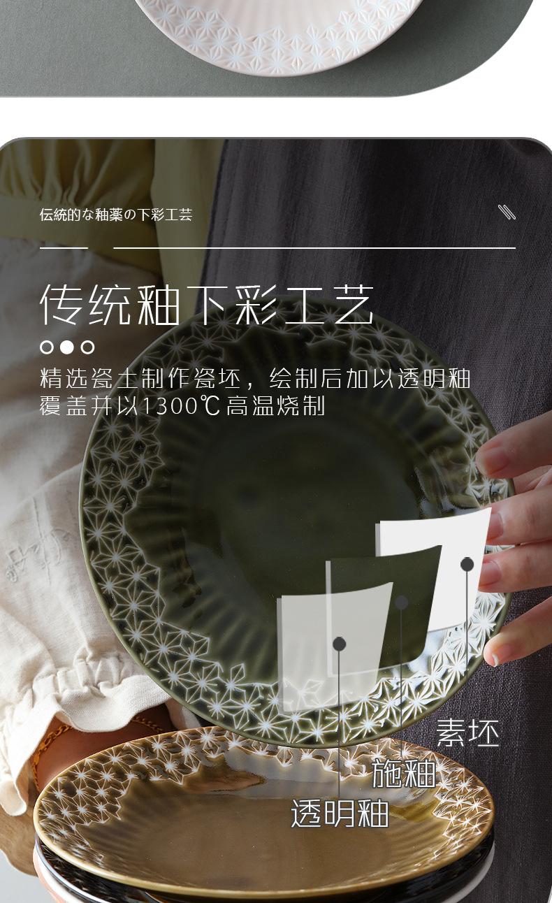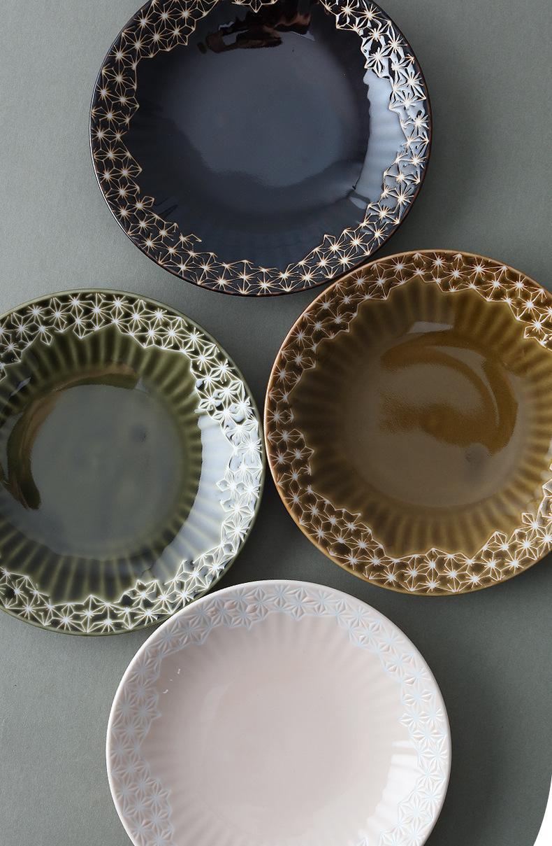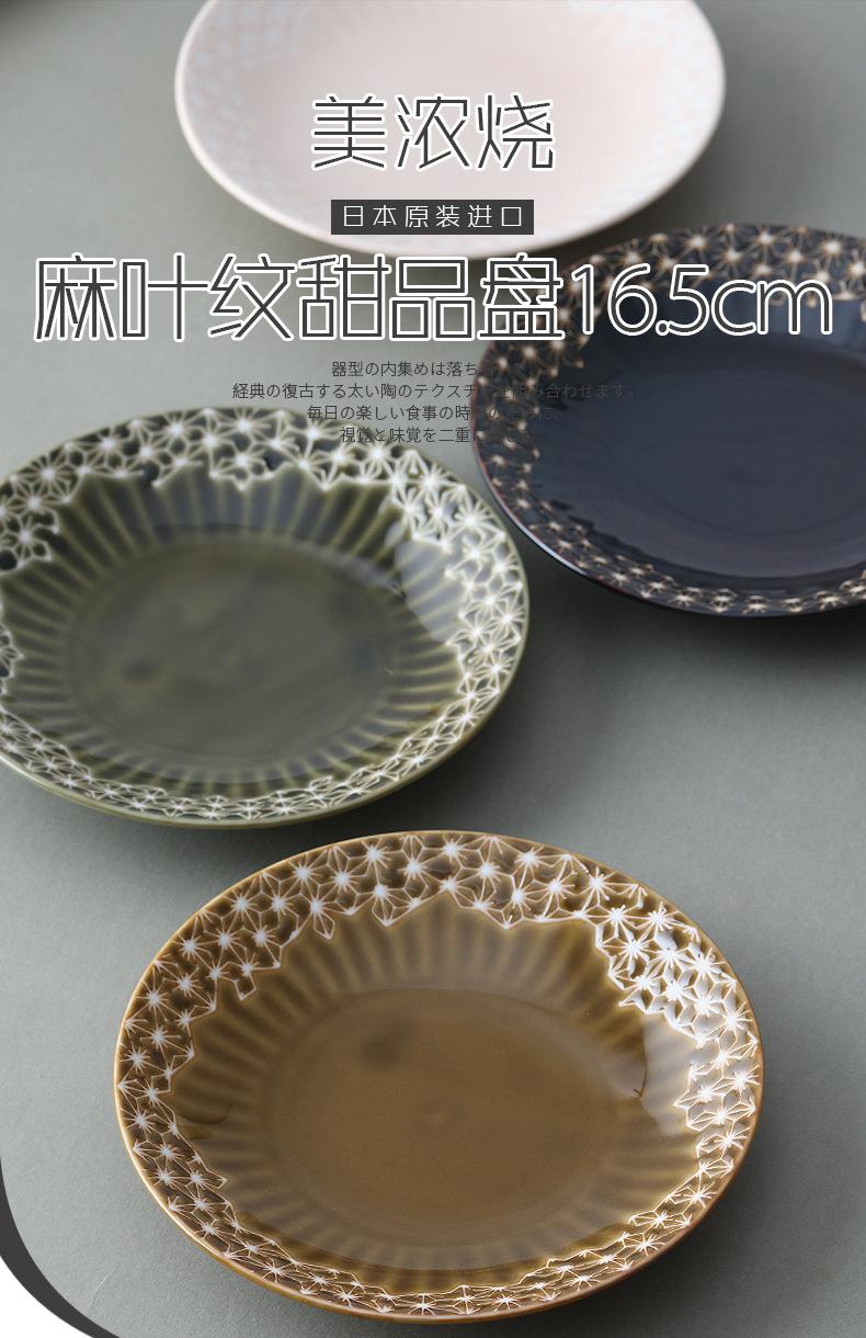 Plato de postre, plato hondo, vajilla de cerámica Meisaku con estampado de hojas de cáñamo beige importadas de Japón