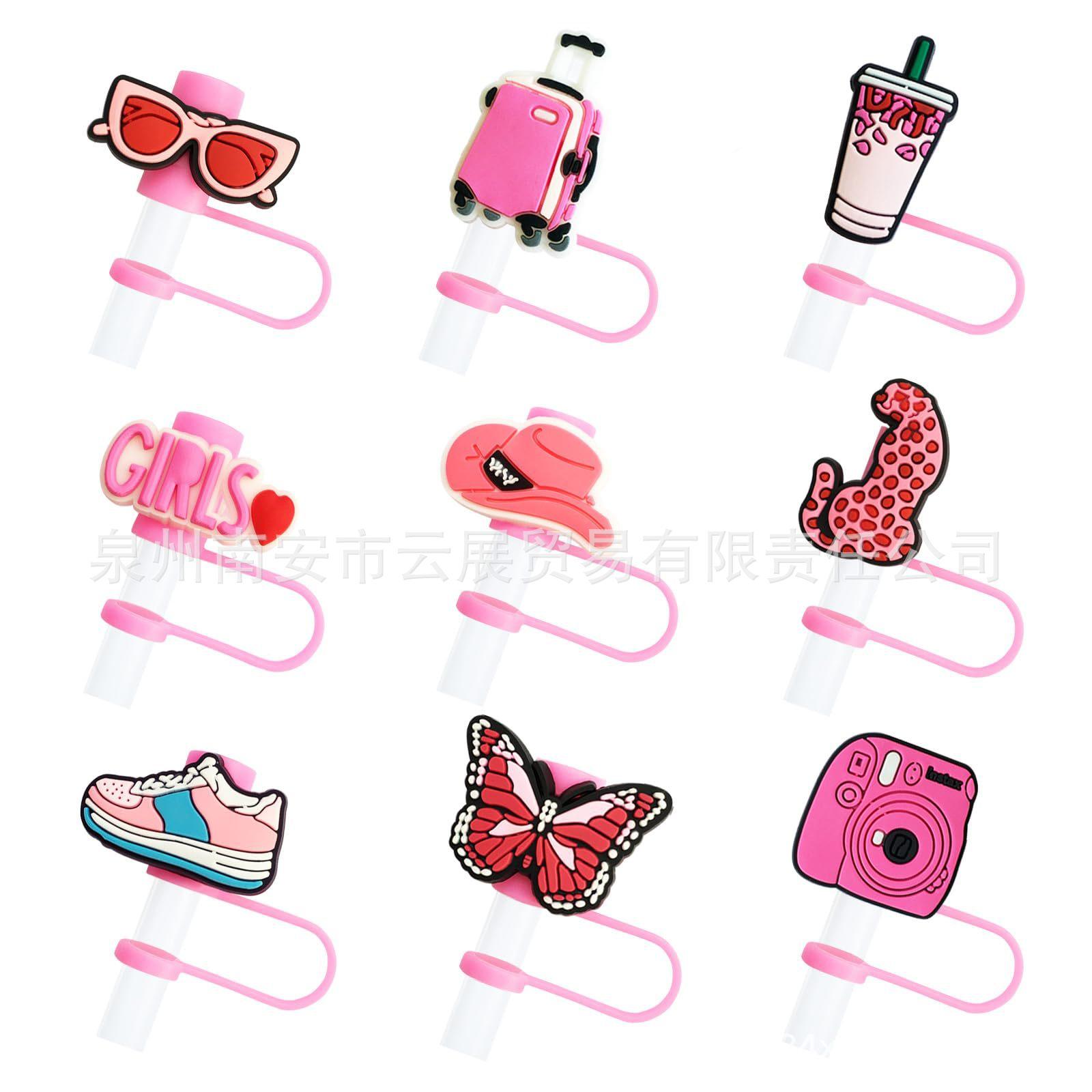 Sombrero rosa de paja con funda para niñas hermosa funda de paja de silicona para pajita para beber Reutilizable Portátil