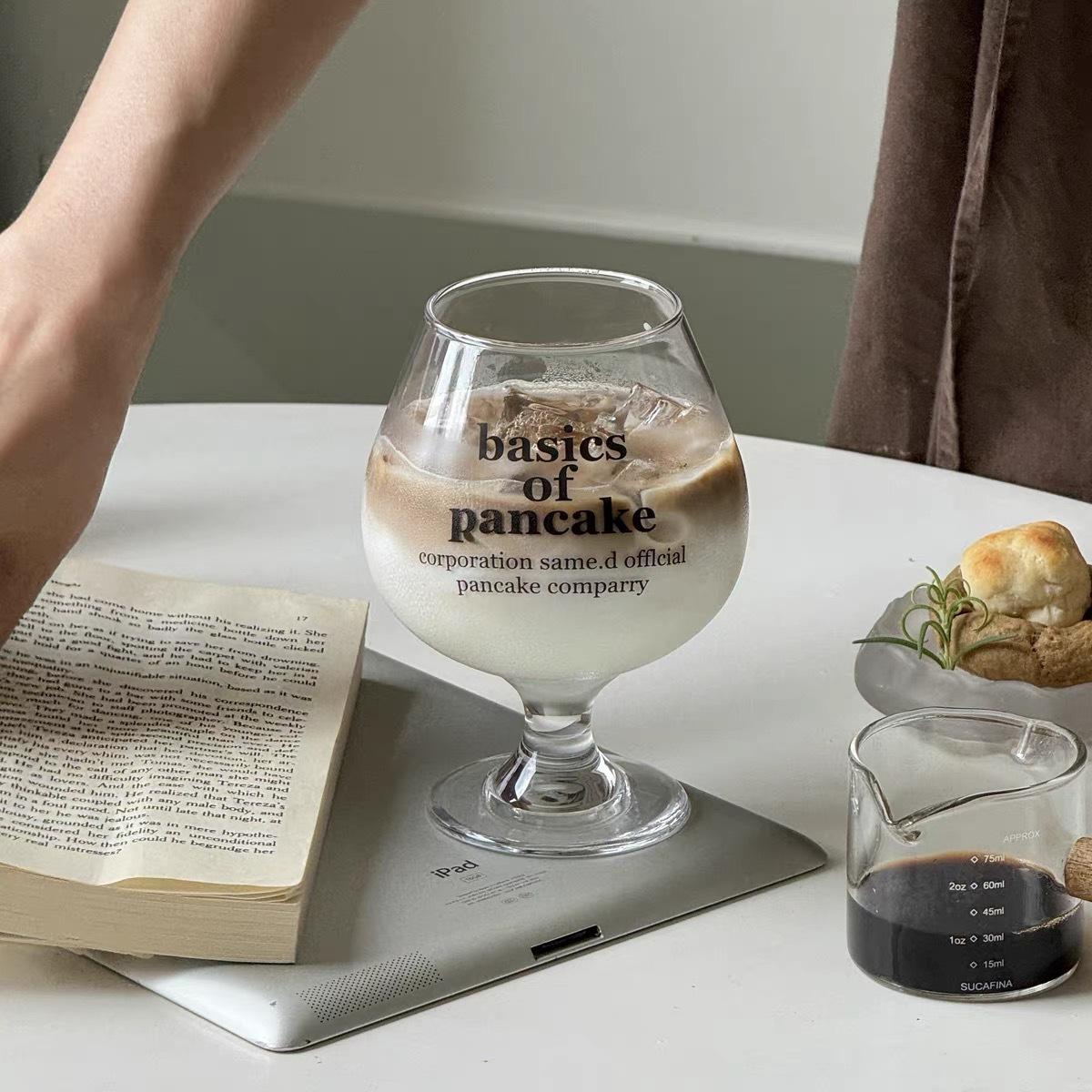 Compra Taza de pie corto de vidrio para el hogar estilo coreano con estampado en inglés, taza de agua, taza creativa para café helado, taza para cerveza o bebida fría al por mayor en Joom.pro