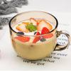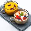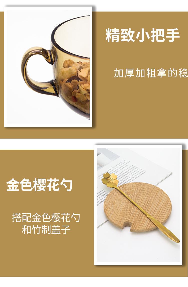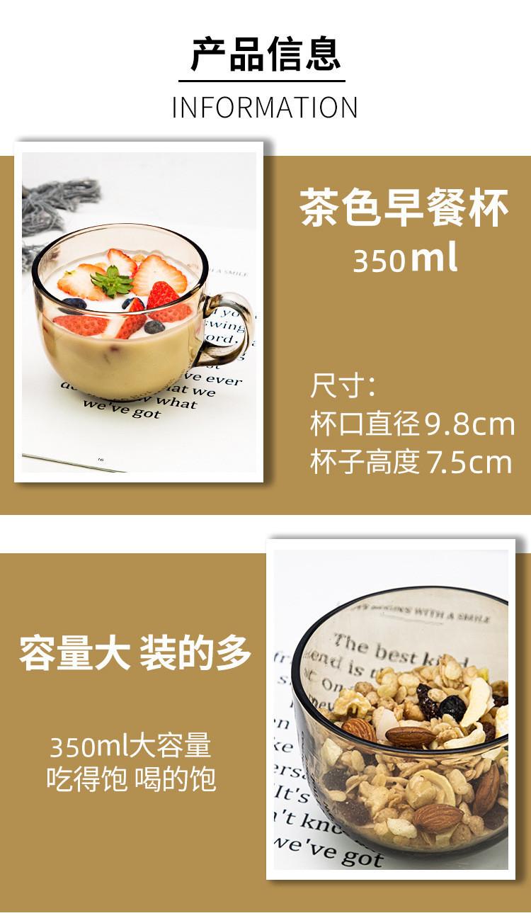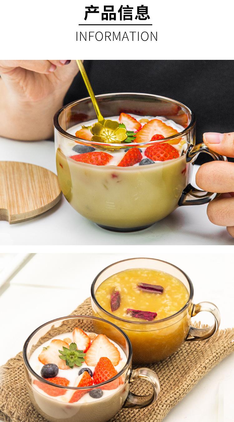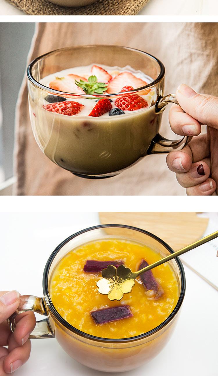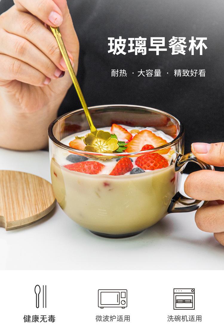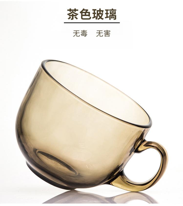 Taza de vidrio marrón con asa para desayuno, leche, avena y cuchara, de gran capacidad, resistente al calor y de alto valor de color.