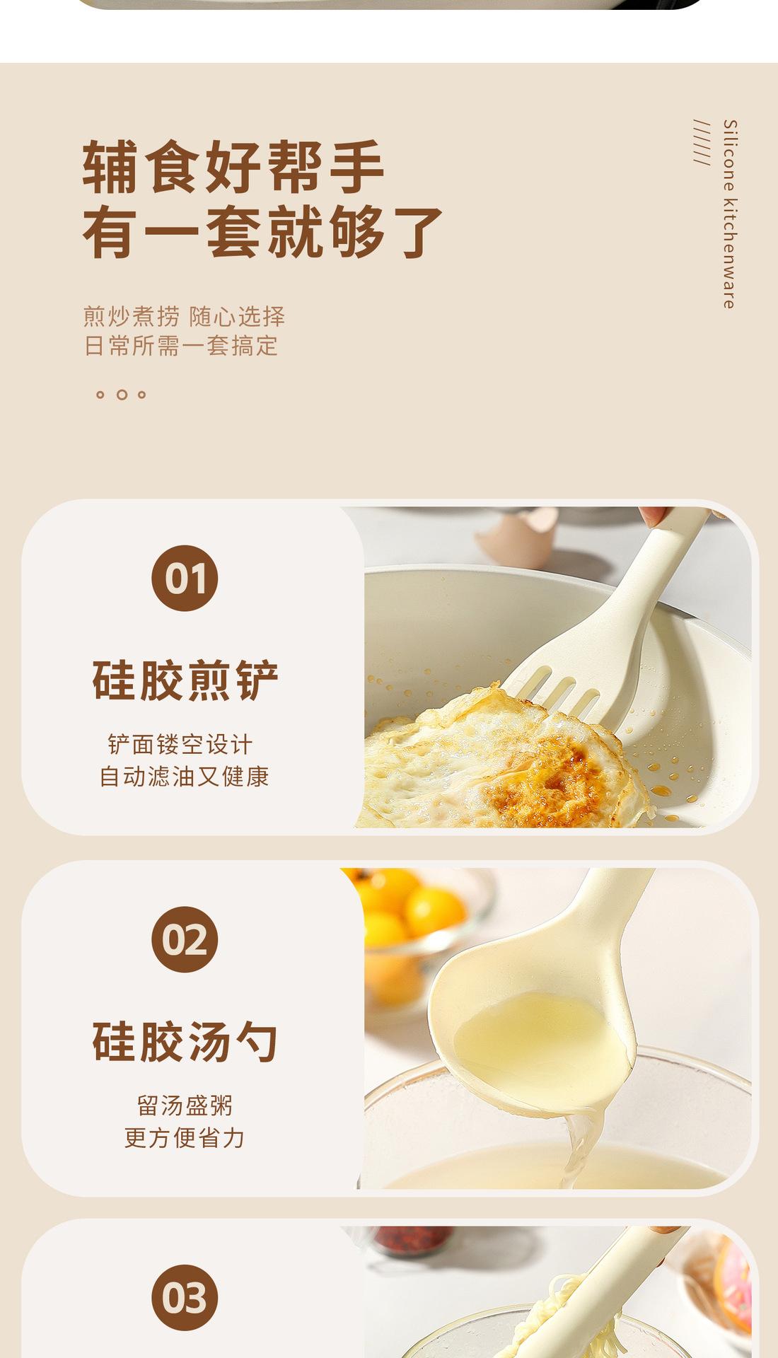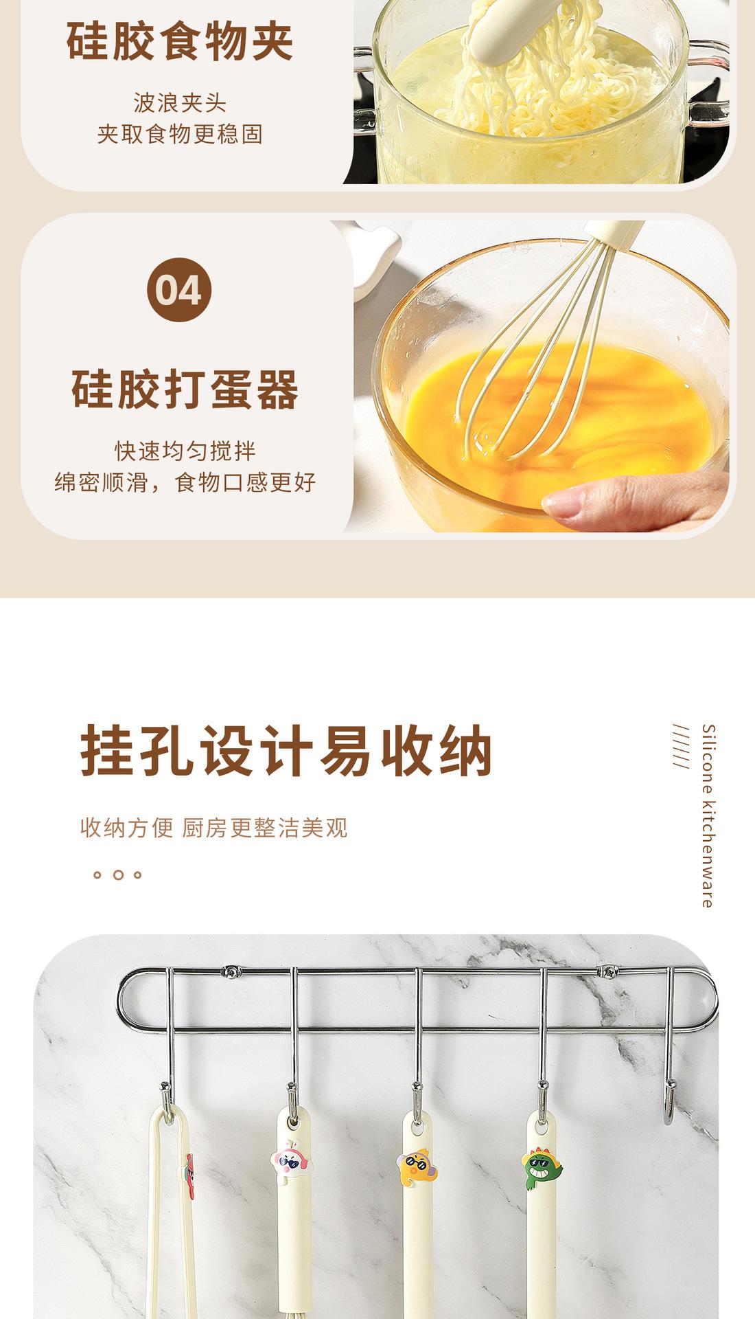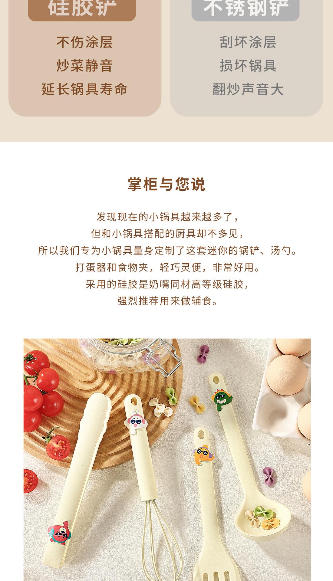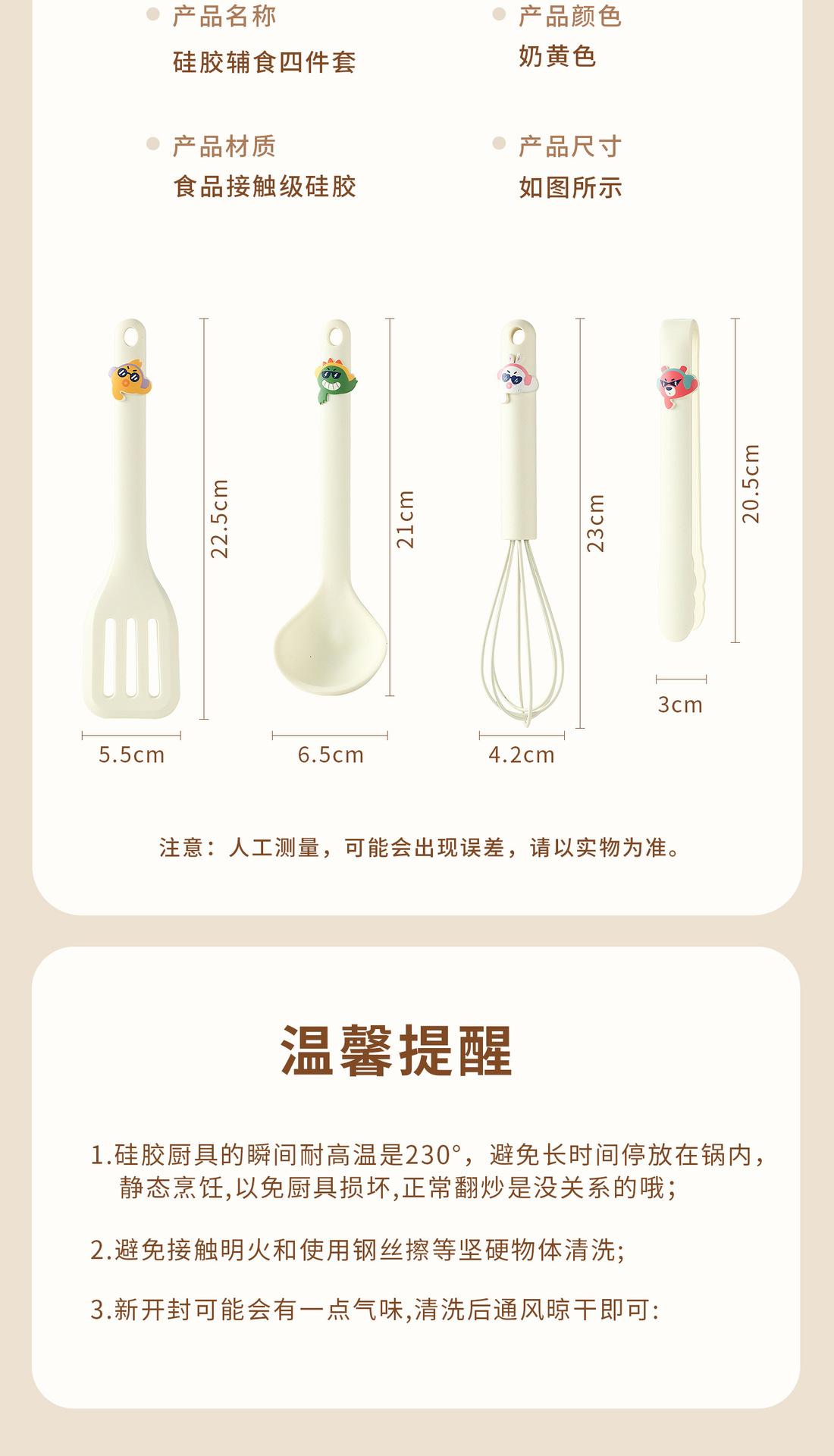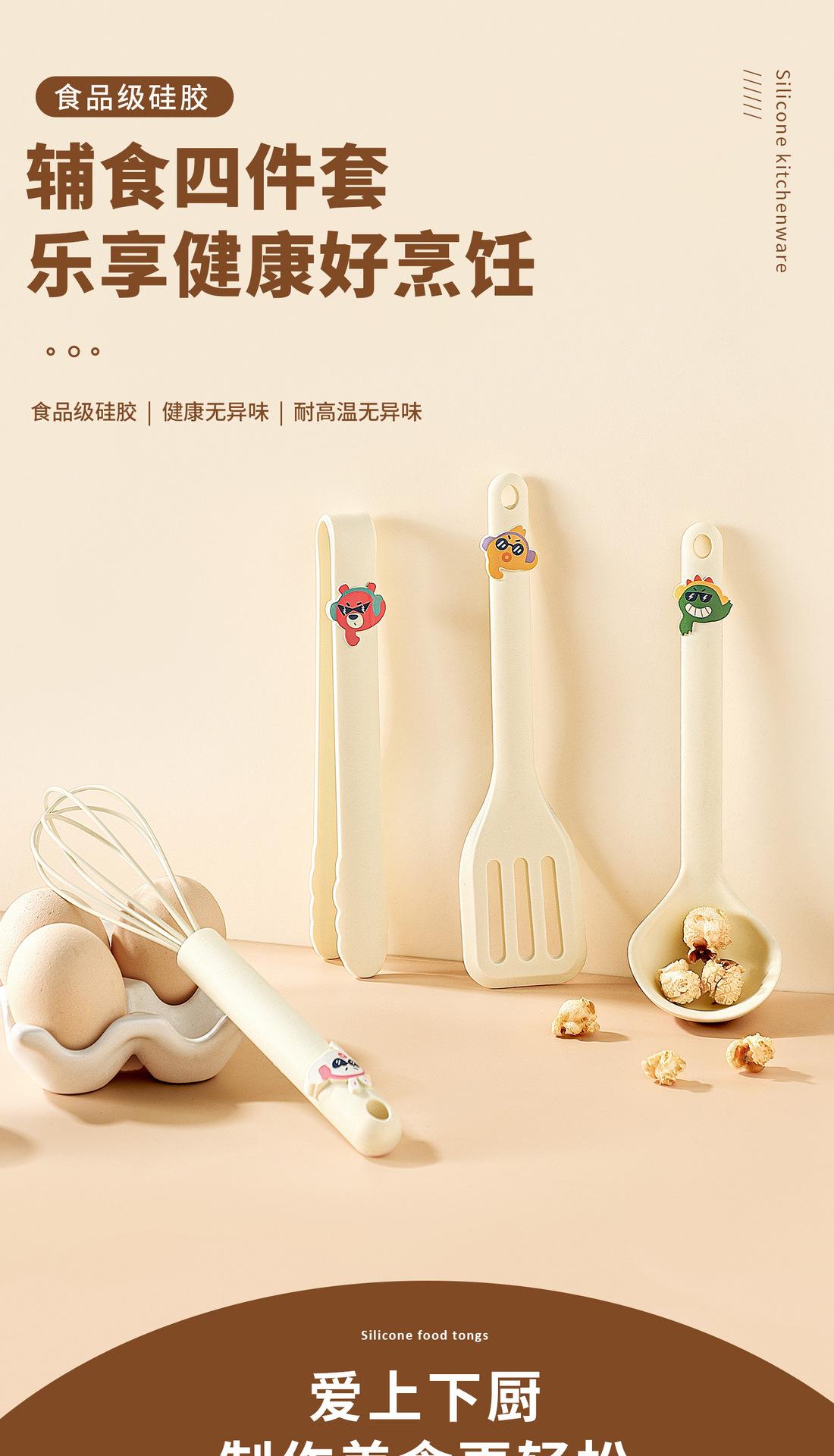 Espátula de silicona espátula cuchara sopera pinza para alimentos batidor de huevos alta temperatura grado alimenticio vajilla complementaria para niños juego de cuatro piezas