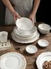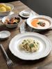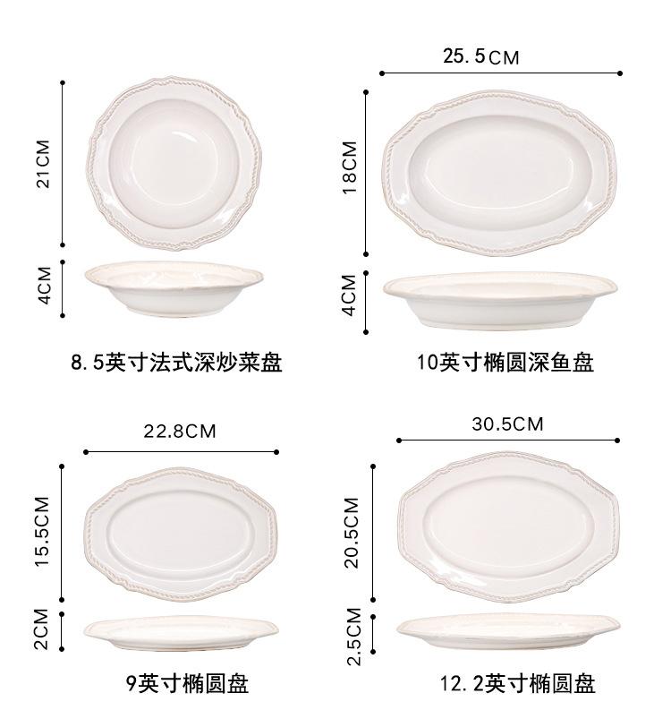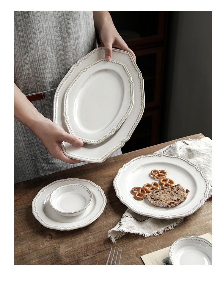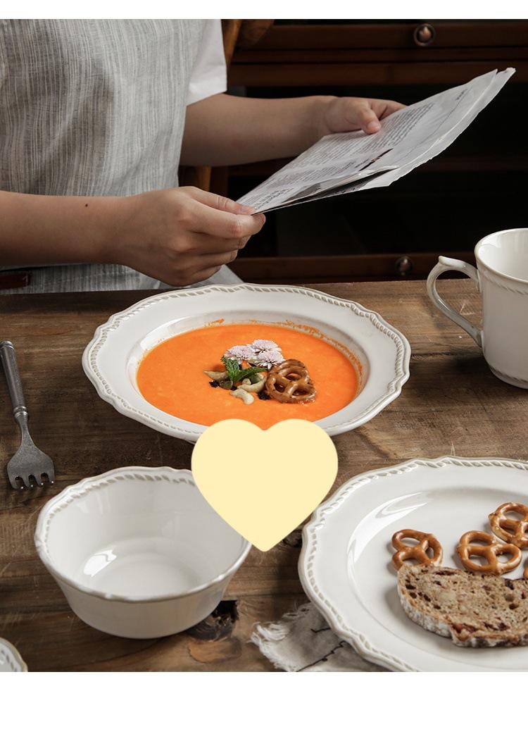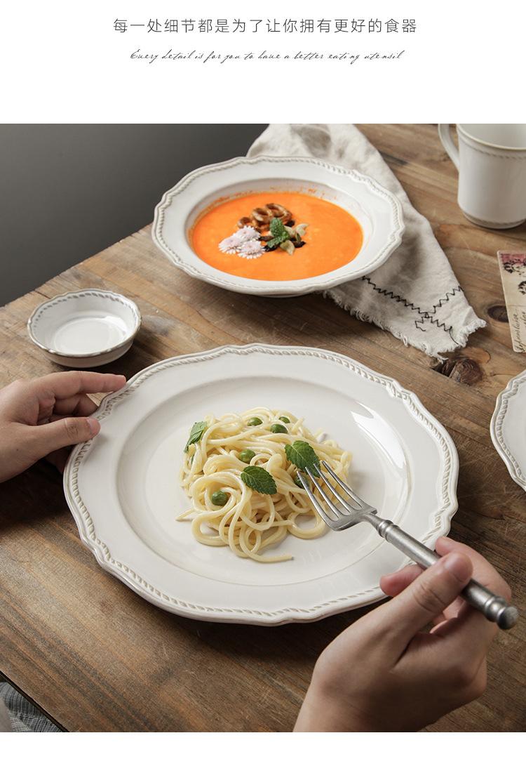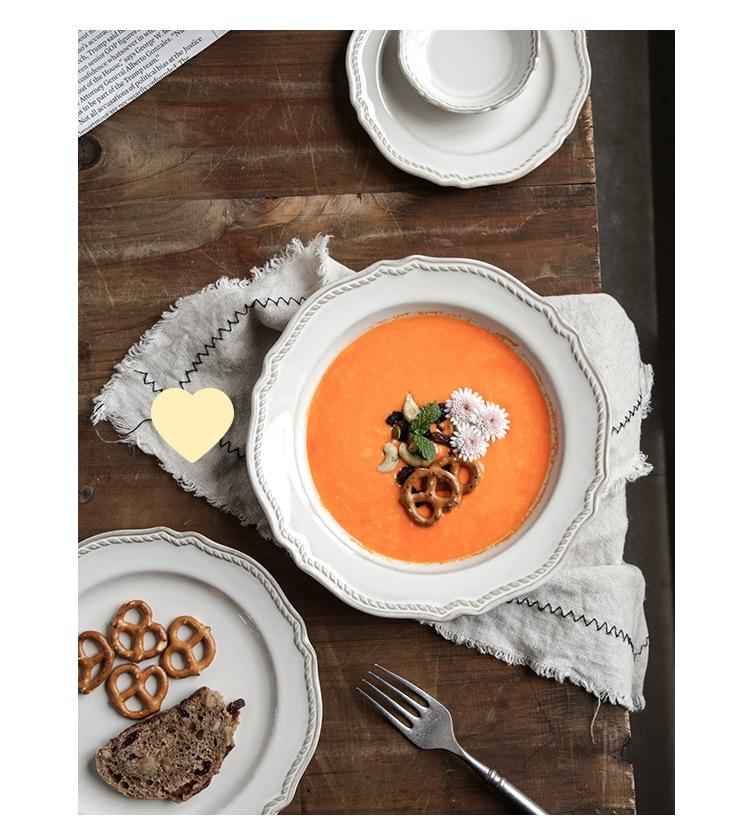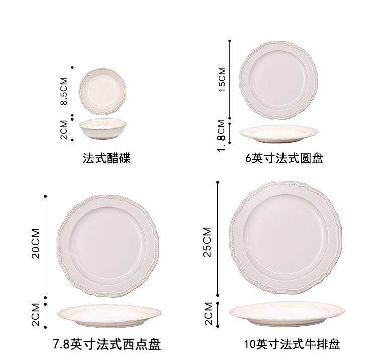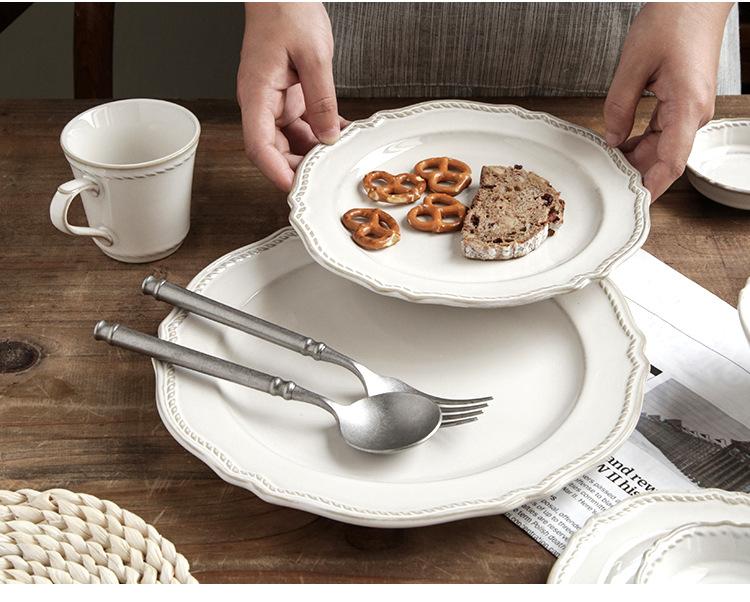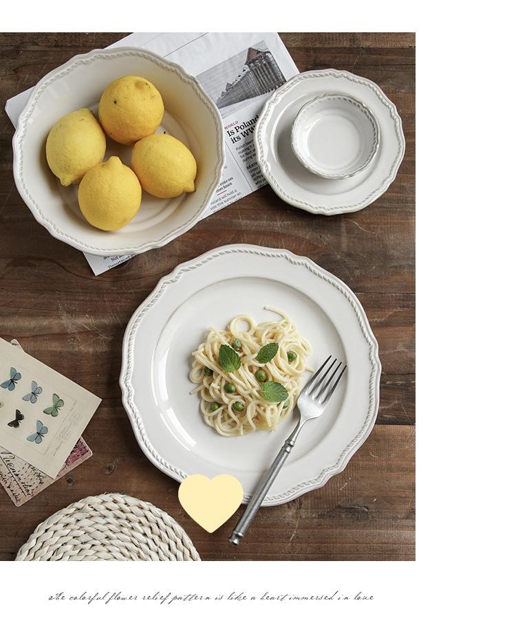 Plato Llano de Cerámica en Relieve Estilo Retro Francés Vajilla Estilo Europeo Plato para Comida Occidental Plato para Bistec Plato para Sopa Juego de Plato y Tazón para el Hogar