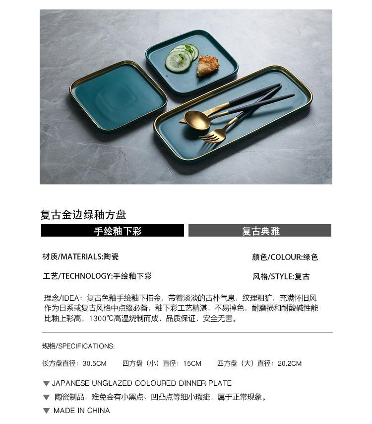 Gran Venta Plato de Cena de Cerámica Plato Cuadrado Plato para el Hogar Plato para Snack Pastel Bandeja Phnom Penh Plato para Bistec Occidental