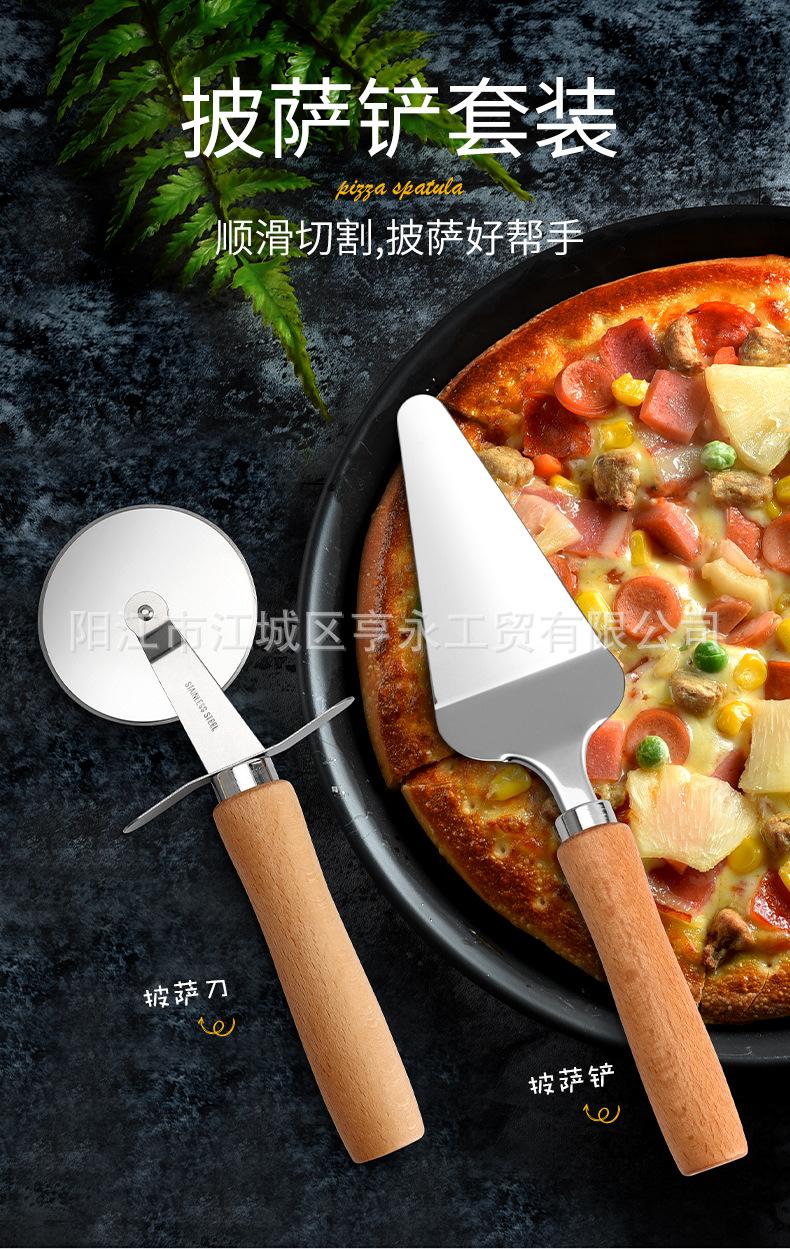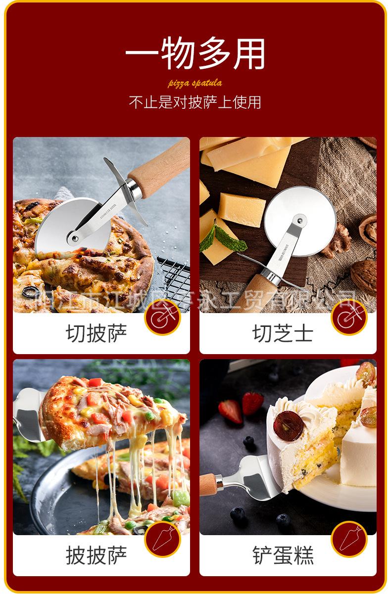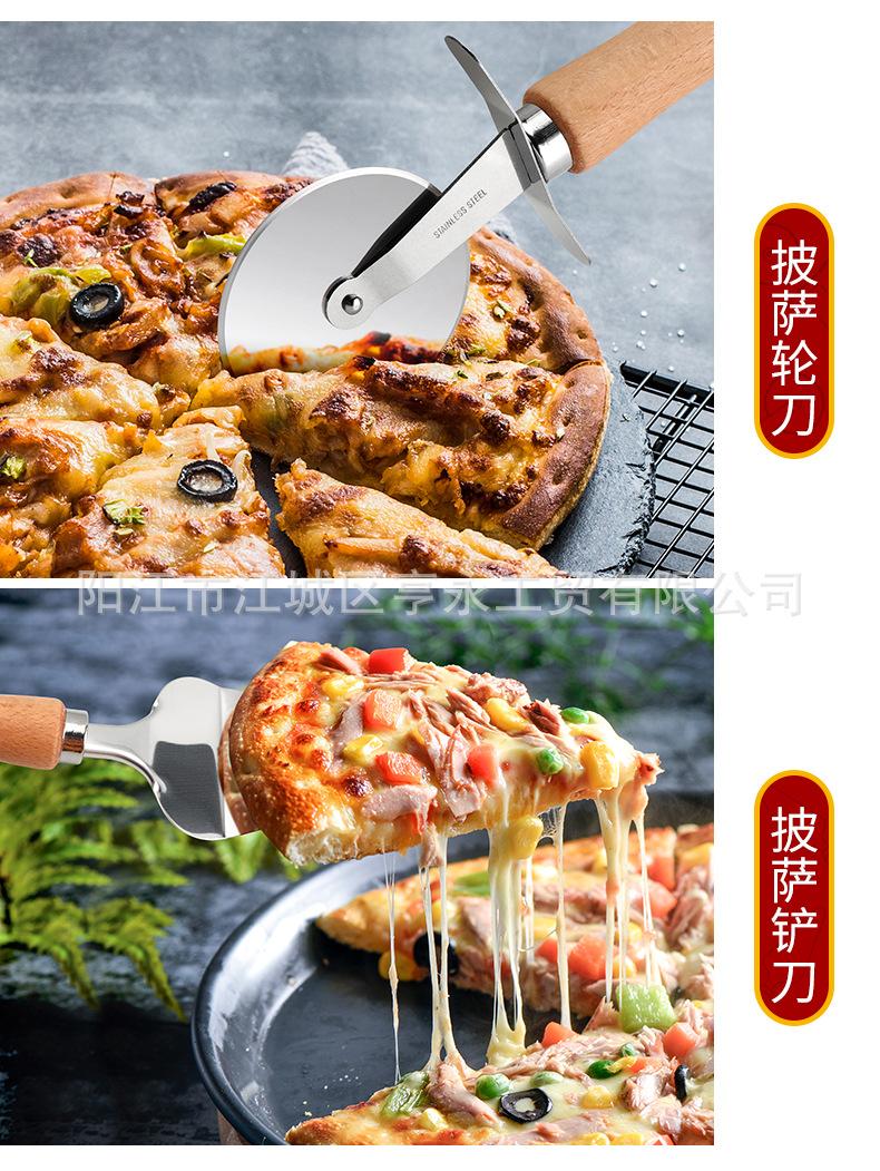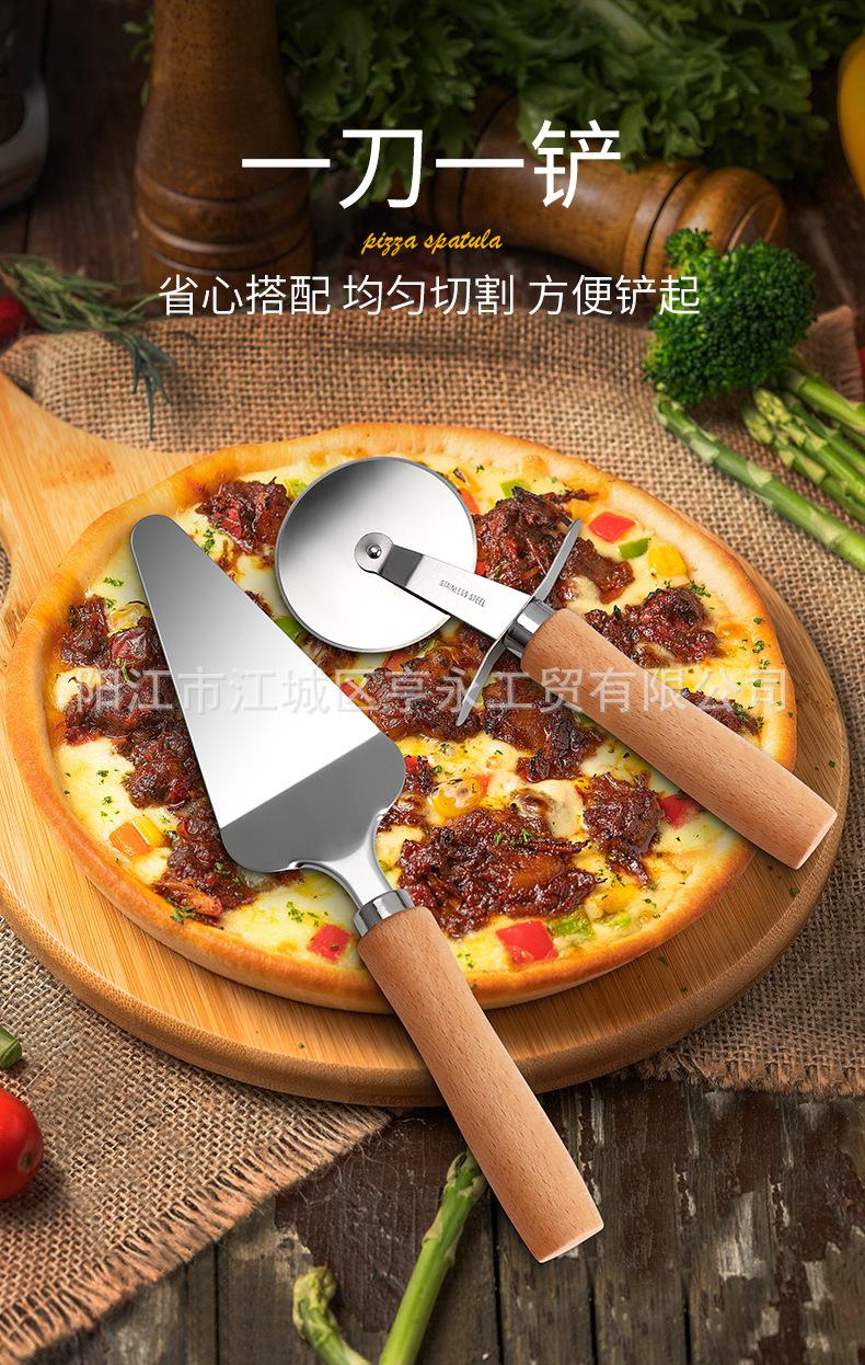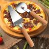 En stock mayoreo cortador de pizza con mango de madera cortador de pizza acero inoxidable pala para pizza rueda para pizza cuchillo gadget de cocina creativo