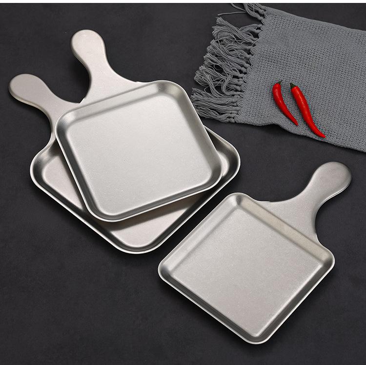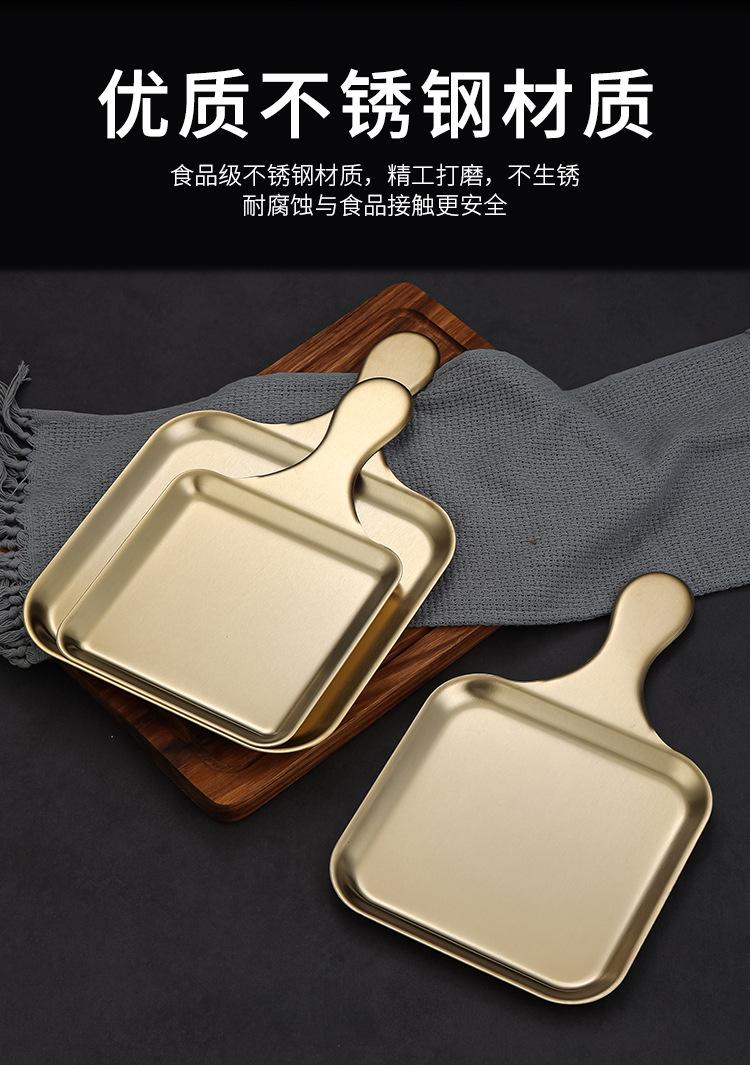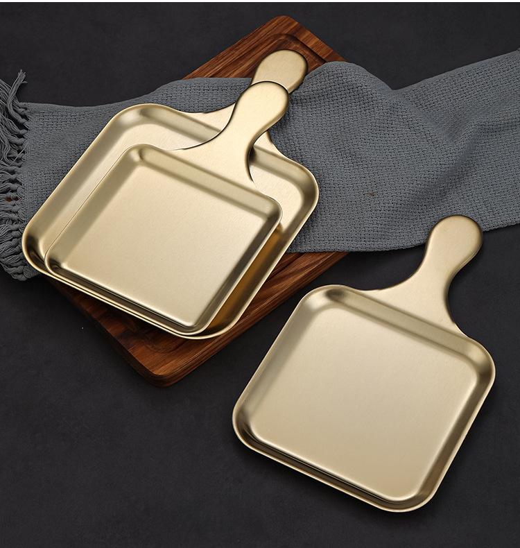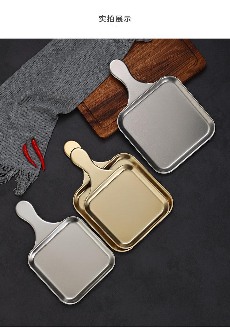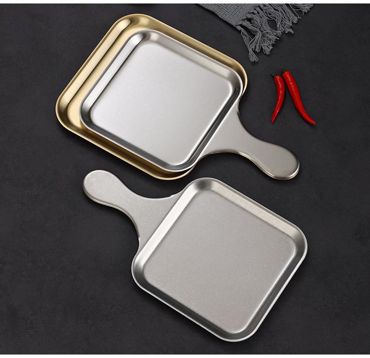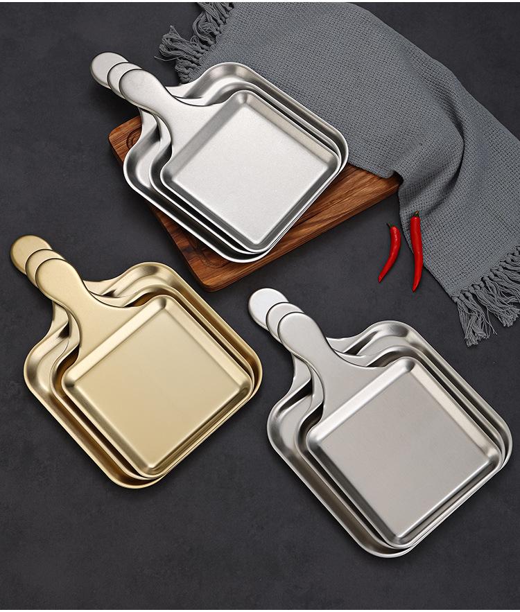 Plato Cuadrado Creativo de Acero Inoxidable Estilo Coreano Plato para Bistec Estilo Occidental Plato Dorado de Fondo Plano Bandeja para Barbacoa Plato para Aperitivos Plato para Cena