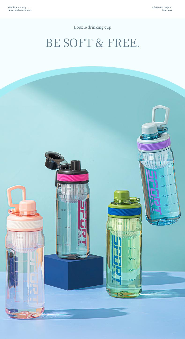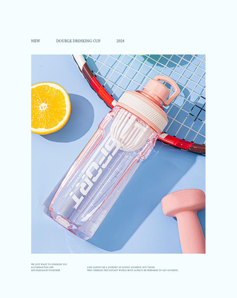 Vaso de plástico de doble bebida de alto valor botella de agua deportiva de gran capacidad cuerda portátil taza emergente botella de agua para fitness venta al por mayor personalizada