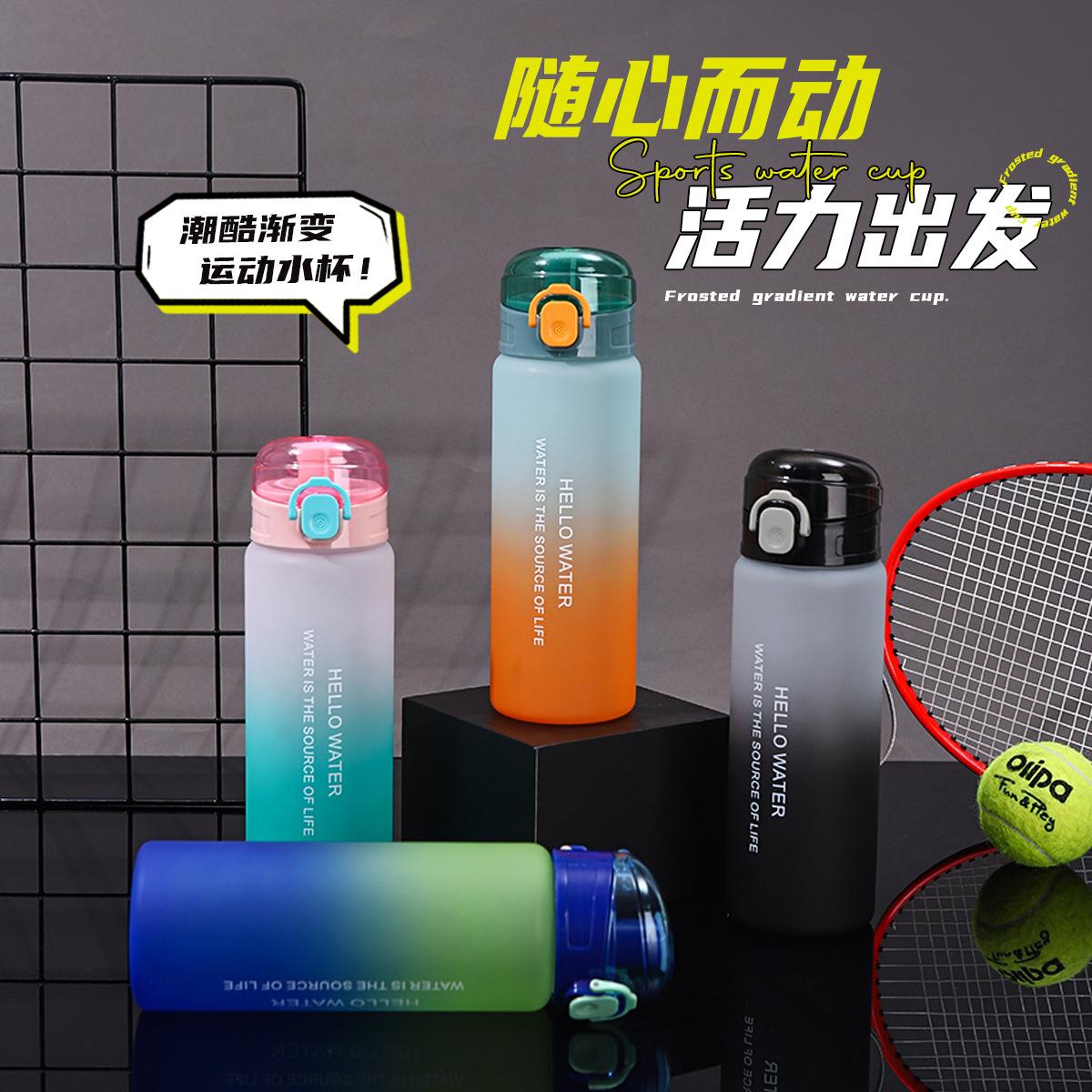 Botella de agua deportiva para exteriores de gran capacidad, vaso de plástico de color degradado, vaso portátil de alto valor, vaso con tapa abatible, fabricante mayorista