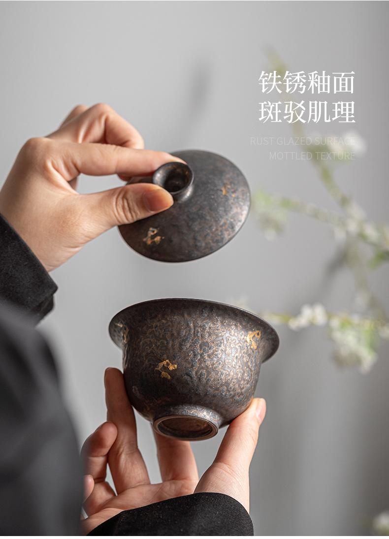 Nombre del producto: Tetera con esmalte óxido y punta dorada