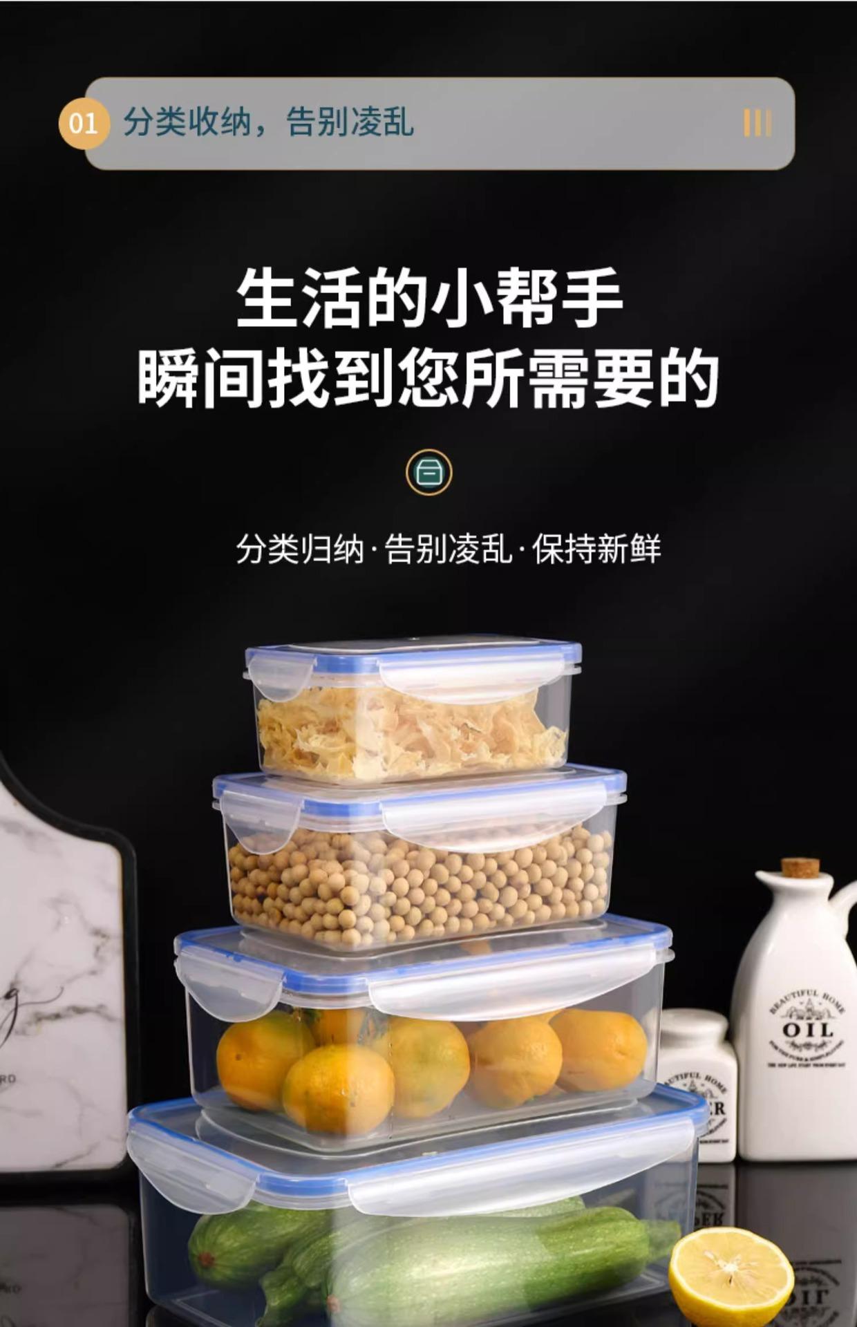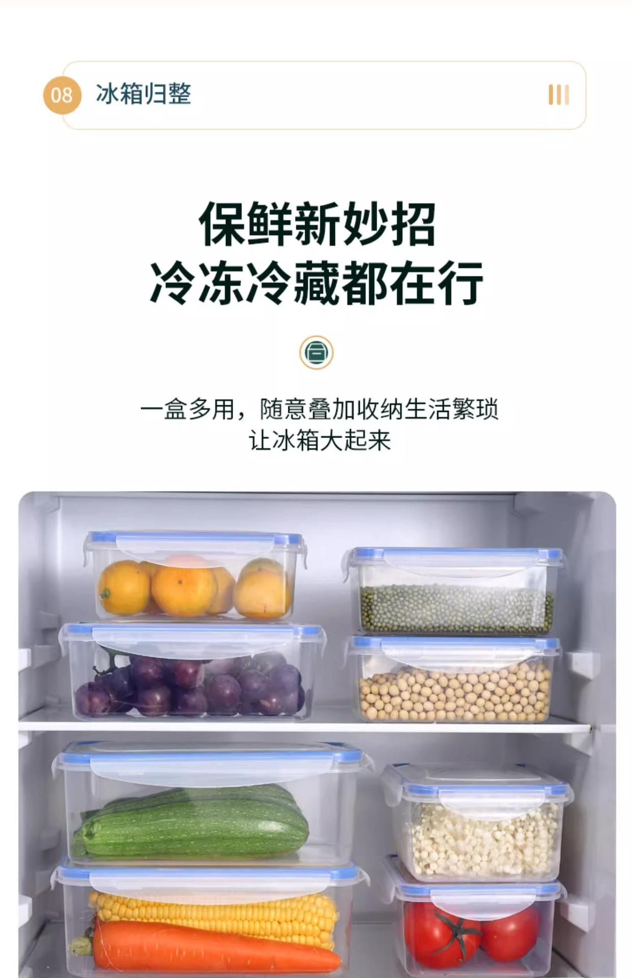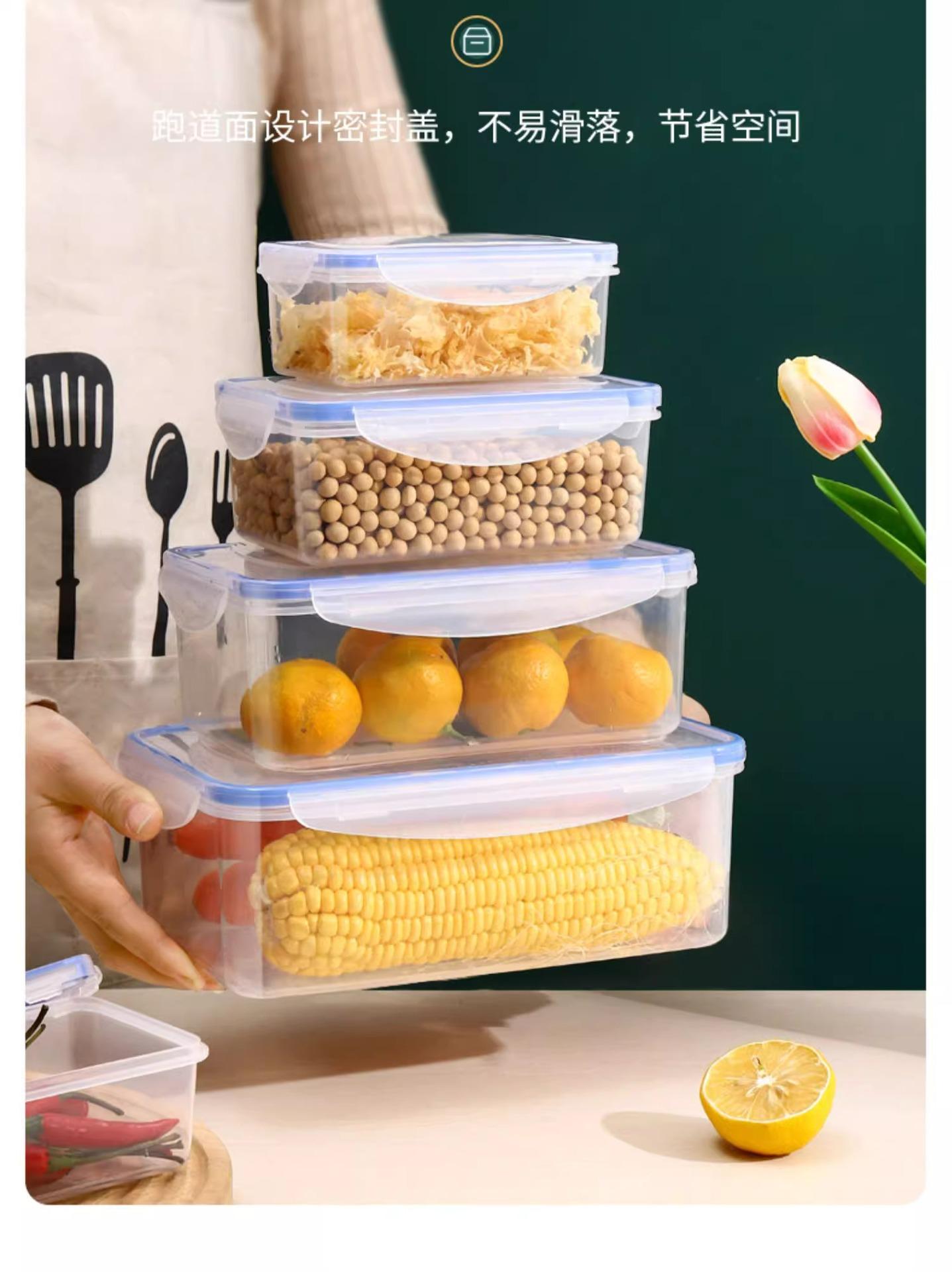 Caja de almacenamiento para refrigerador, rectangular, de plástico, resistente al calor, para microondas, para comida, frutas, sellada