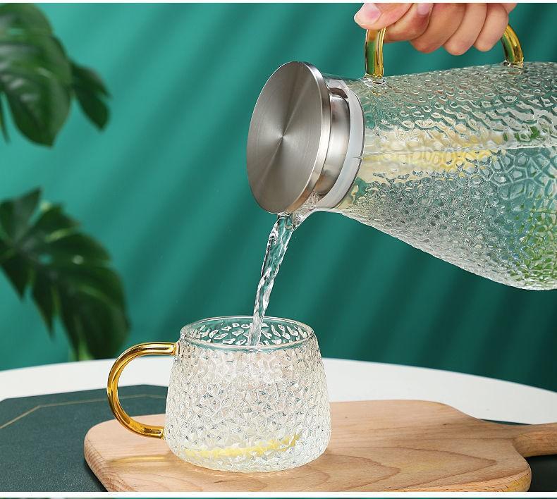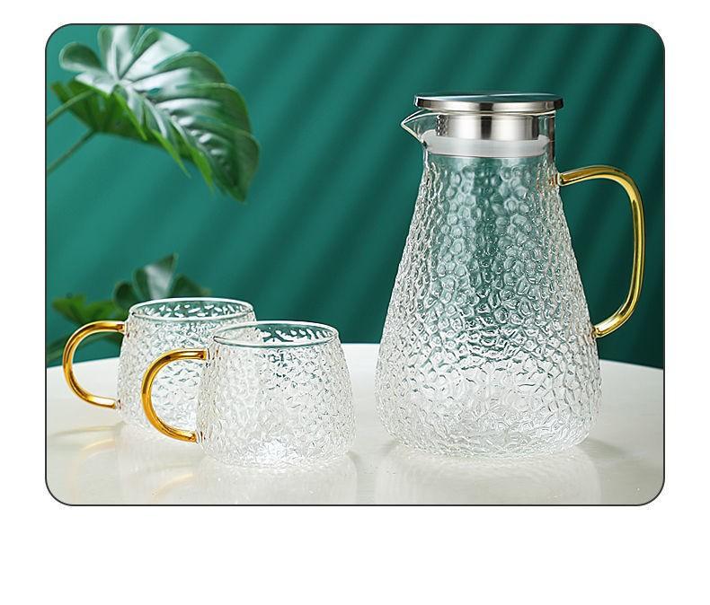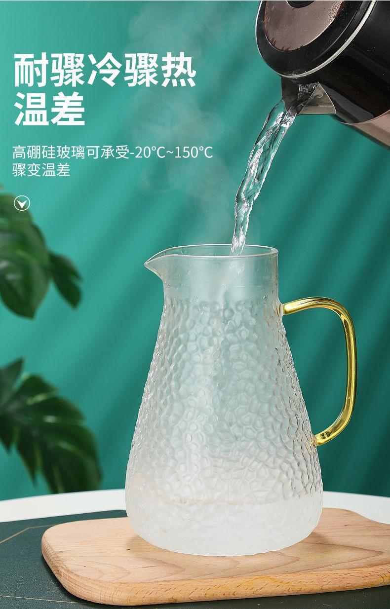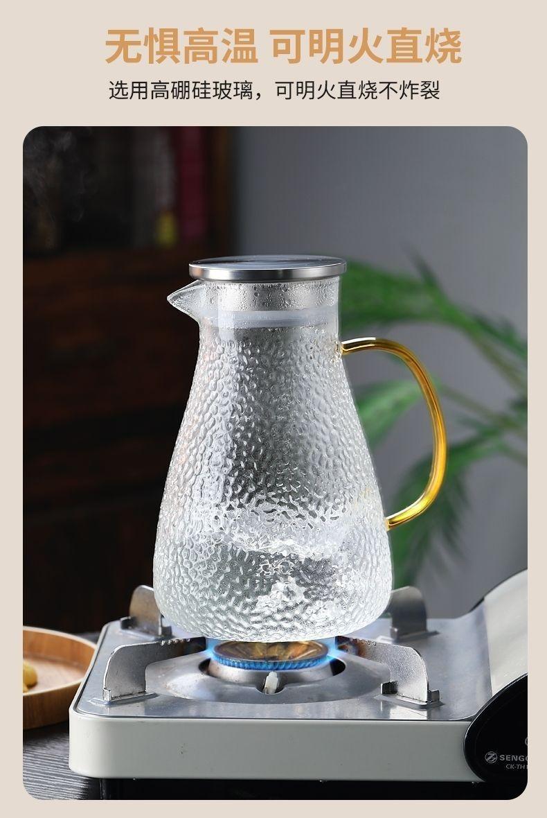 Hervidor de agua fría y caliente de vidrio de borosilicato de alta resistencia al calor con patrón de martillo, de gran capacidad, resistente a altas temperaturas, para uso doméstico.
